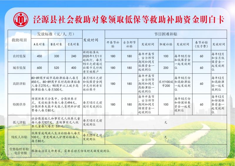 原文链接:泾源县人民政府办公室关于提高泾源县城乡居民最低生活保障标准的通知