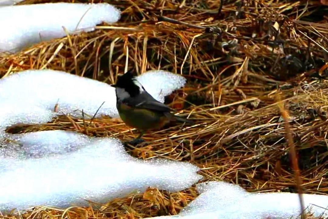 煤山雀(学名:Periparus ater):共有21个亚种。是一种栖息于针叶林的小型鸣禽。体长11厘。头顶、颈侧、喉及上胸黑色。翼上具两道白色翼斑以及颈背部的大块白斑使之有别于褐头山雀及沼泽山雀。背灰色或橄榄灰色,白色的腹部或有或无皮黄色。多数亚种具尖状的黑色冠羽。与大山雀及绿背山雀的区别在胸中部无黑色纵纹。虹膜褐色;嘴黑色,边缘灰色;脚青灰色。
