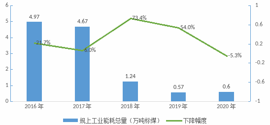 图1 泾源县规上工业能耗总量及下降幅度