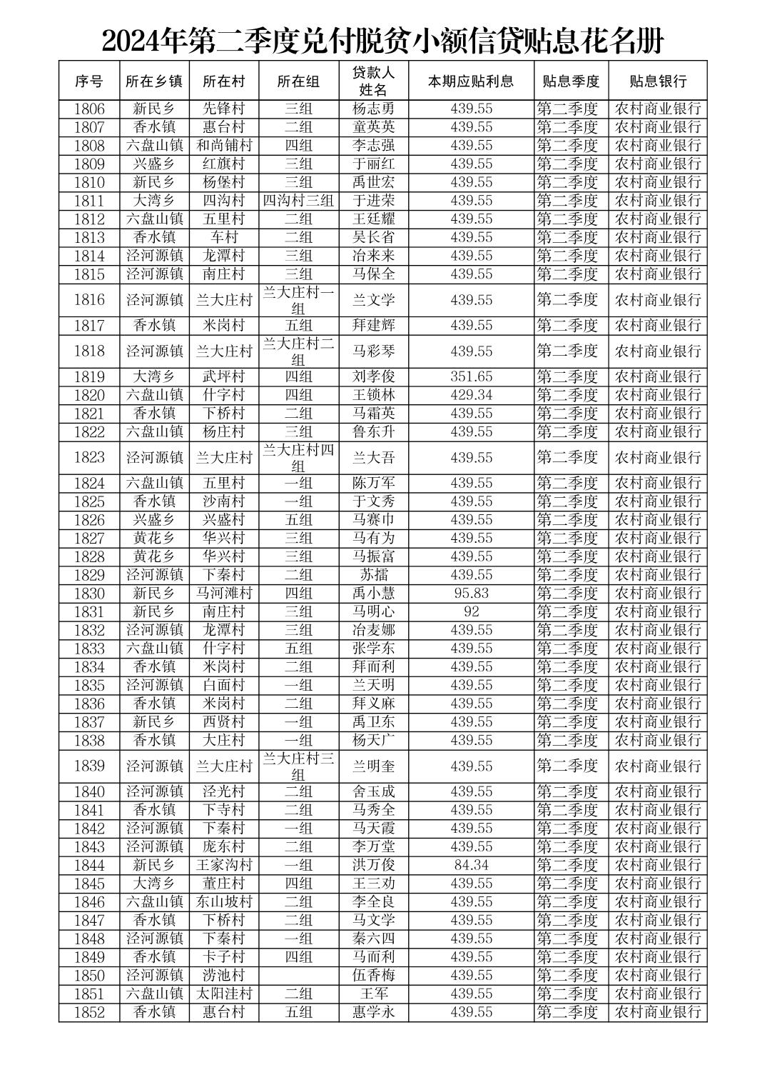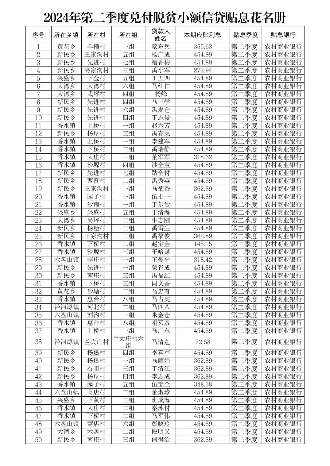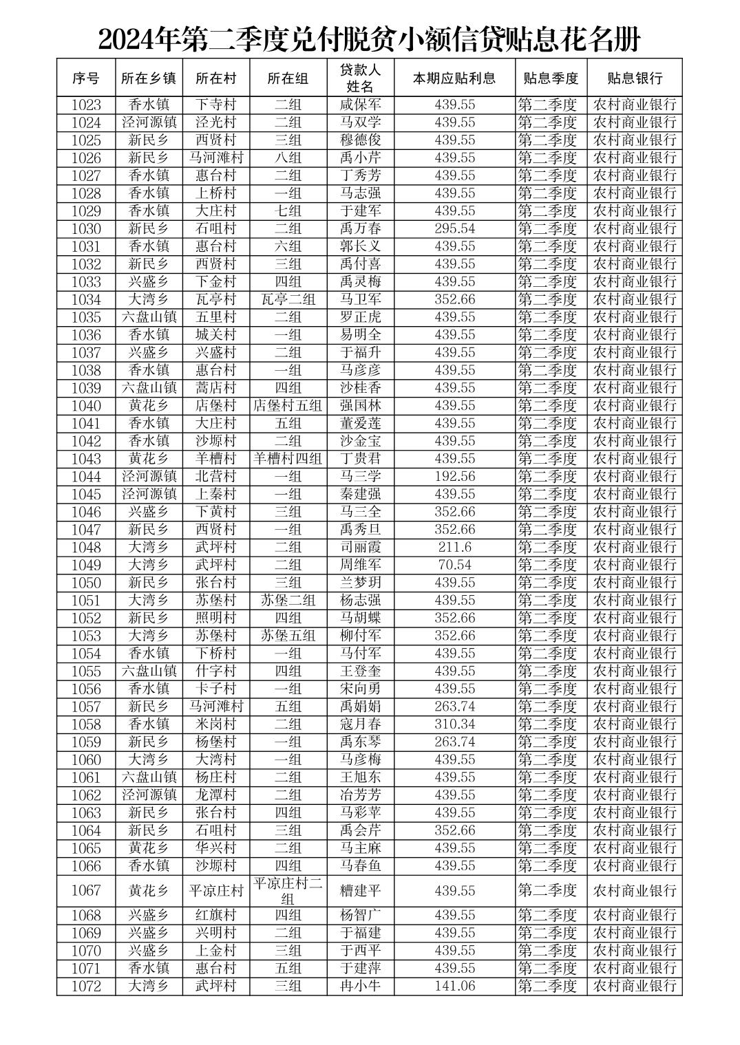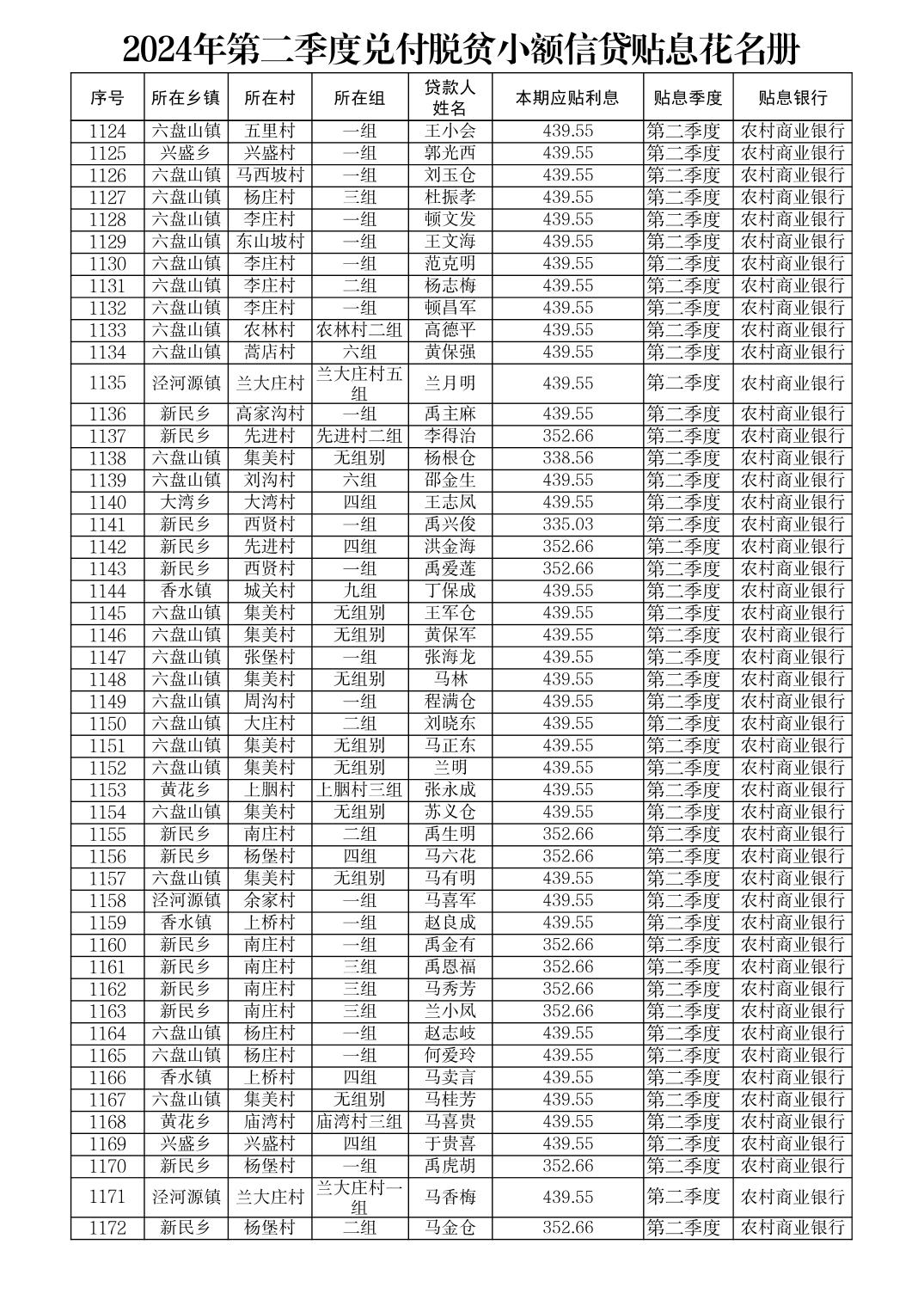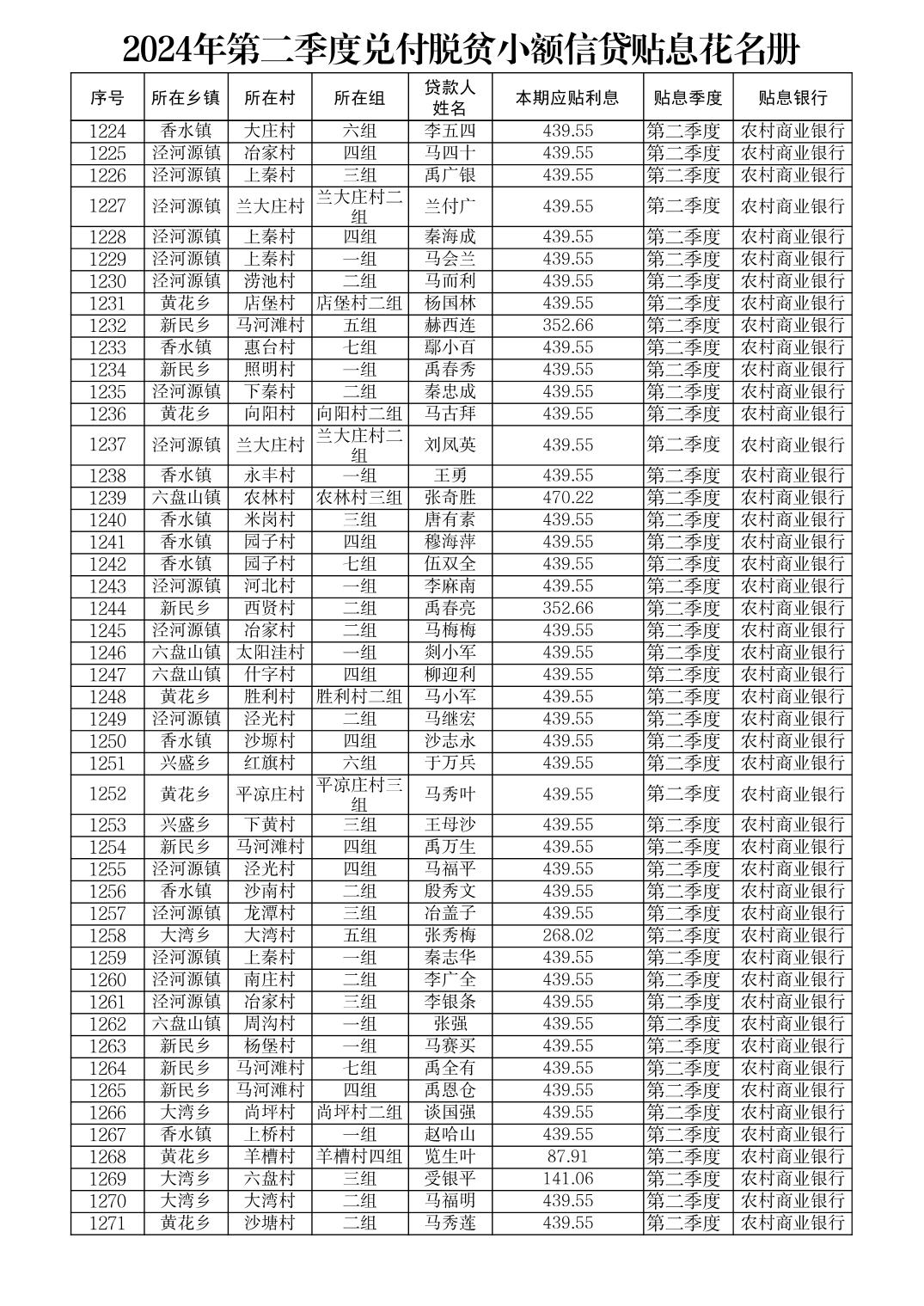 附件:2024年第二季度兑付脱贫小额信贷贴息花名册