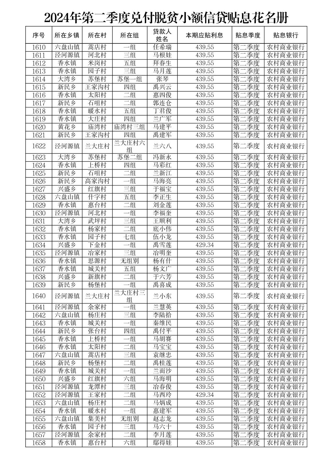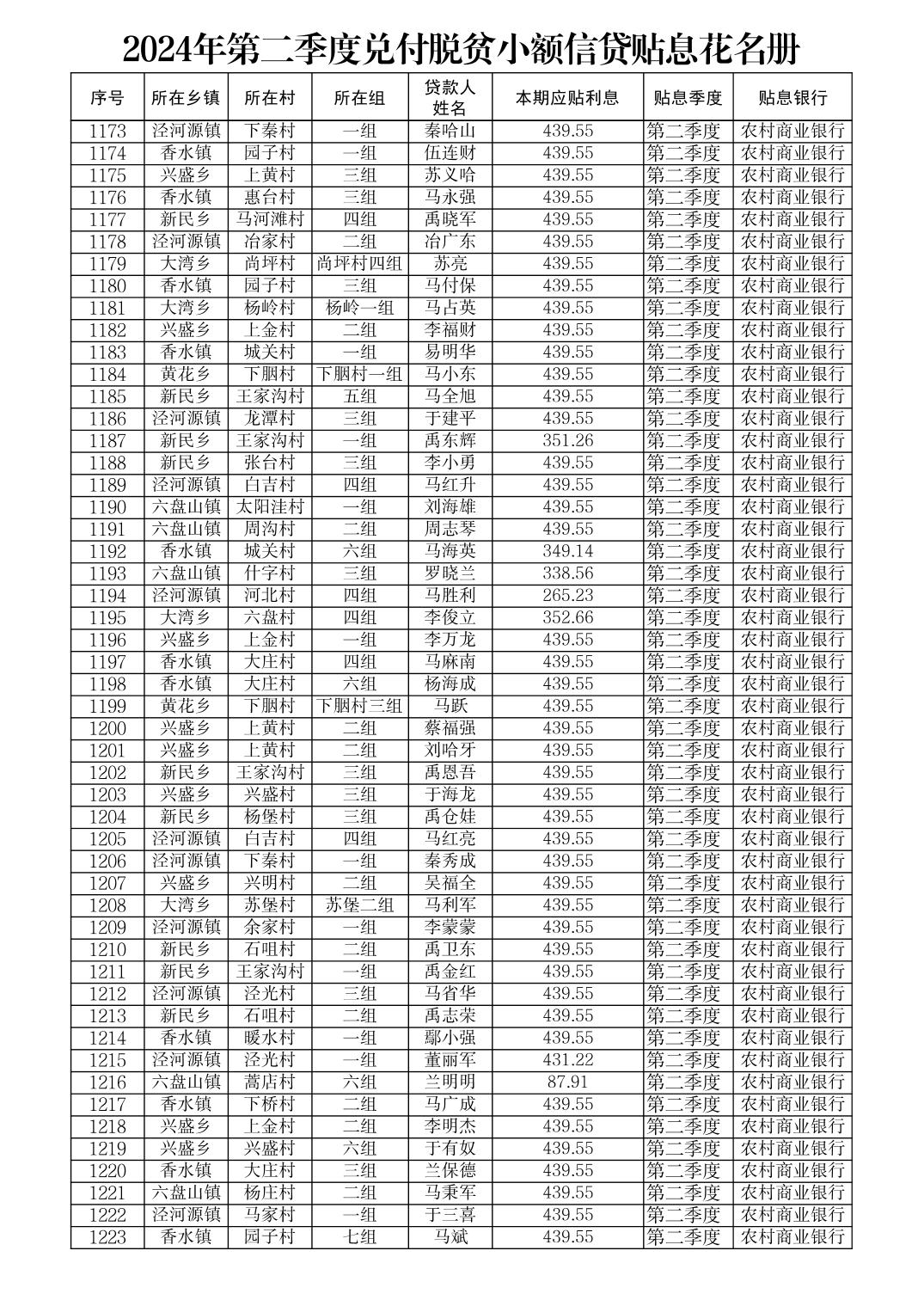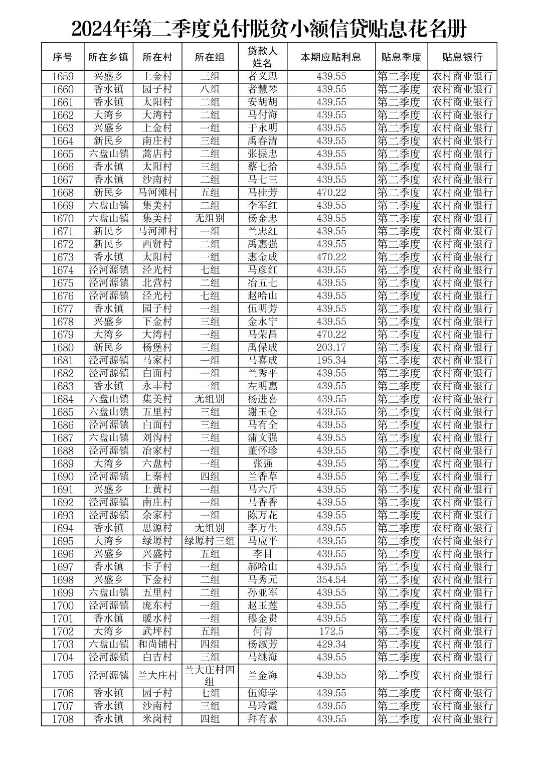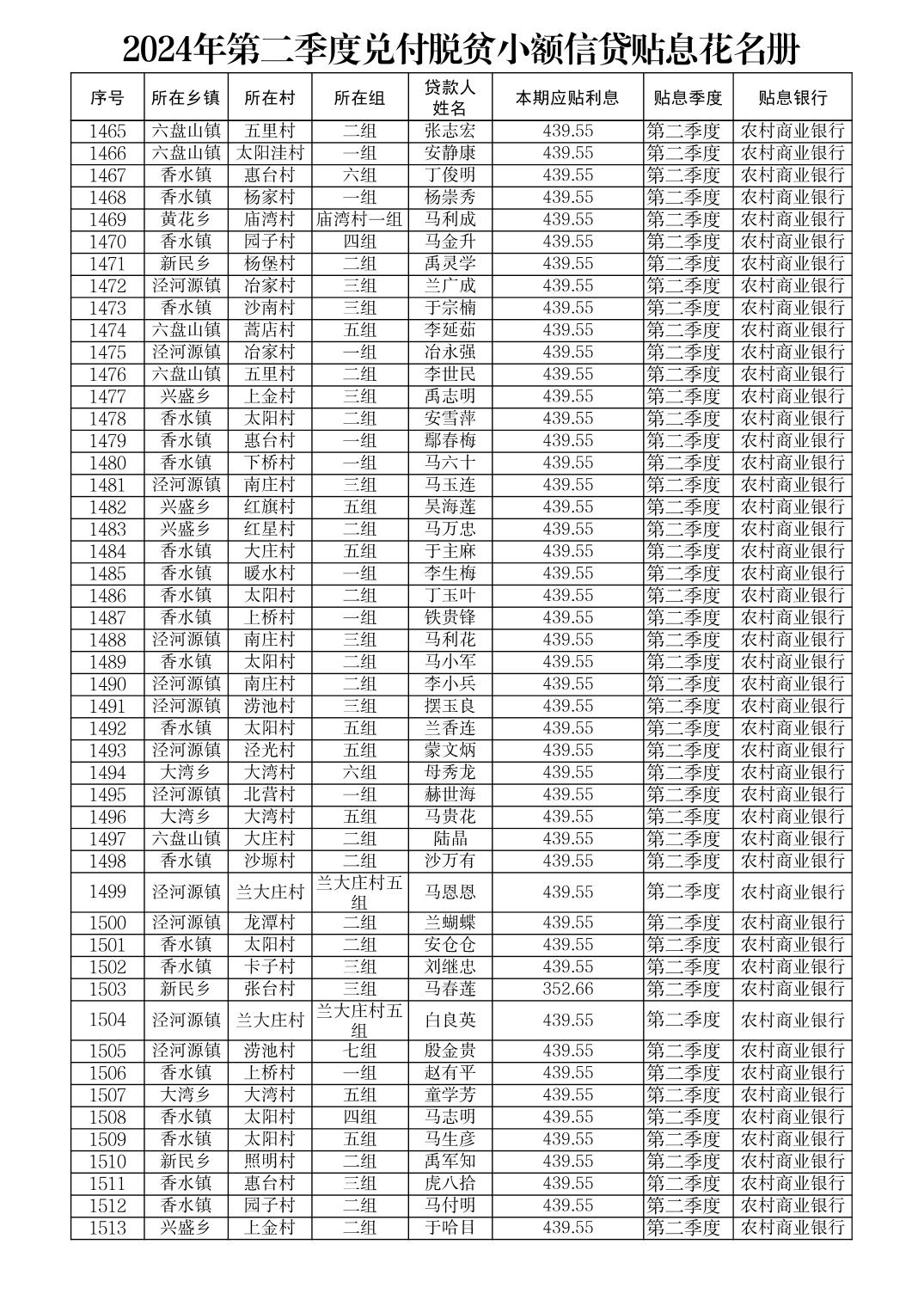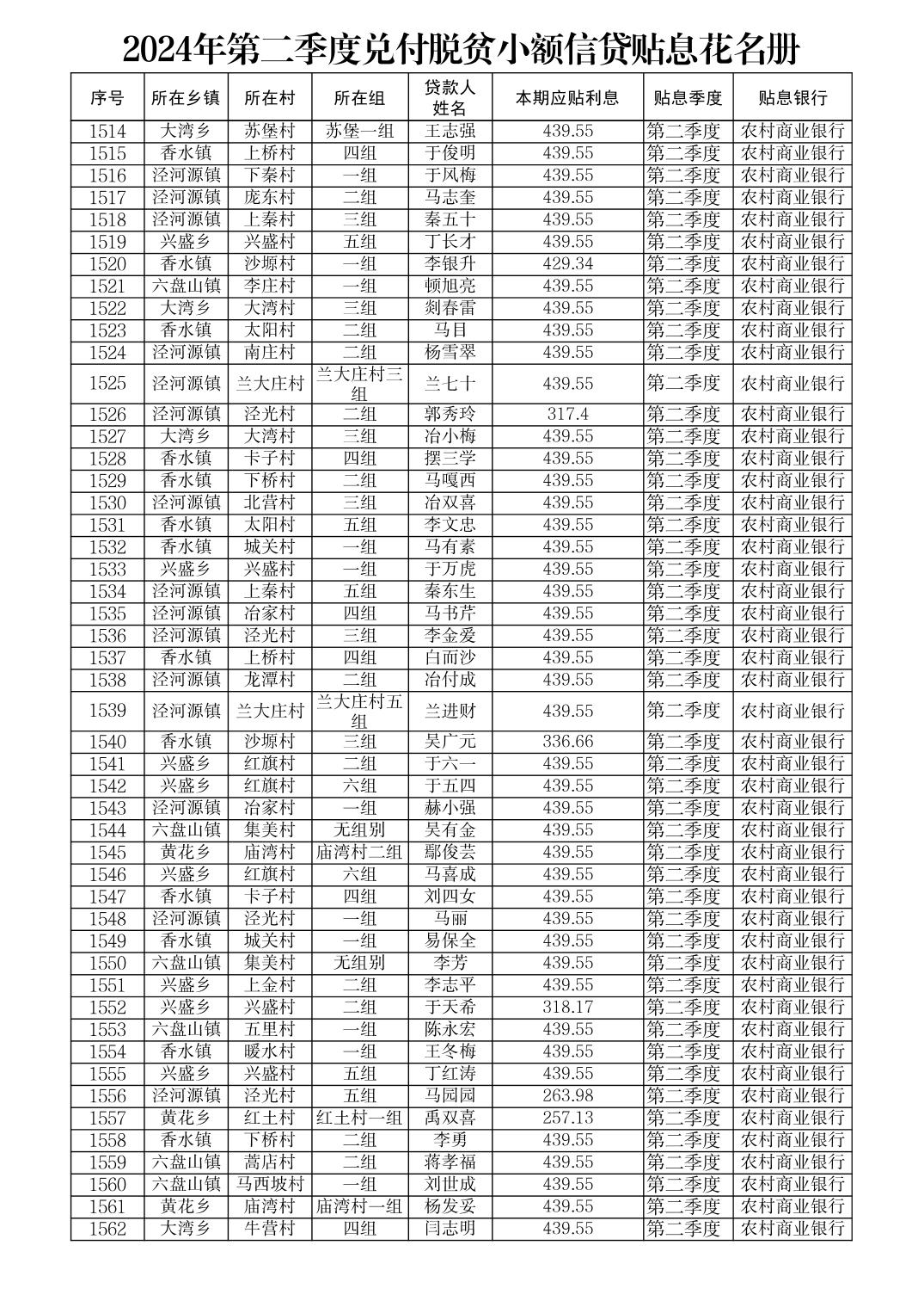 附件:2024年第二季度兑付脱贫小额信贷贴息花名册