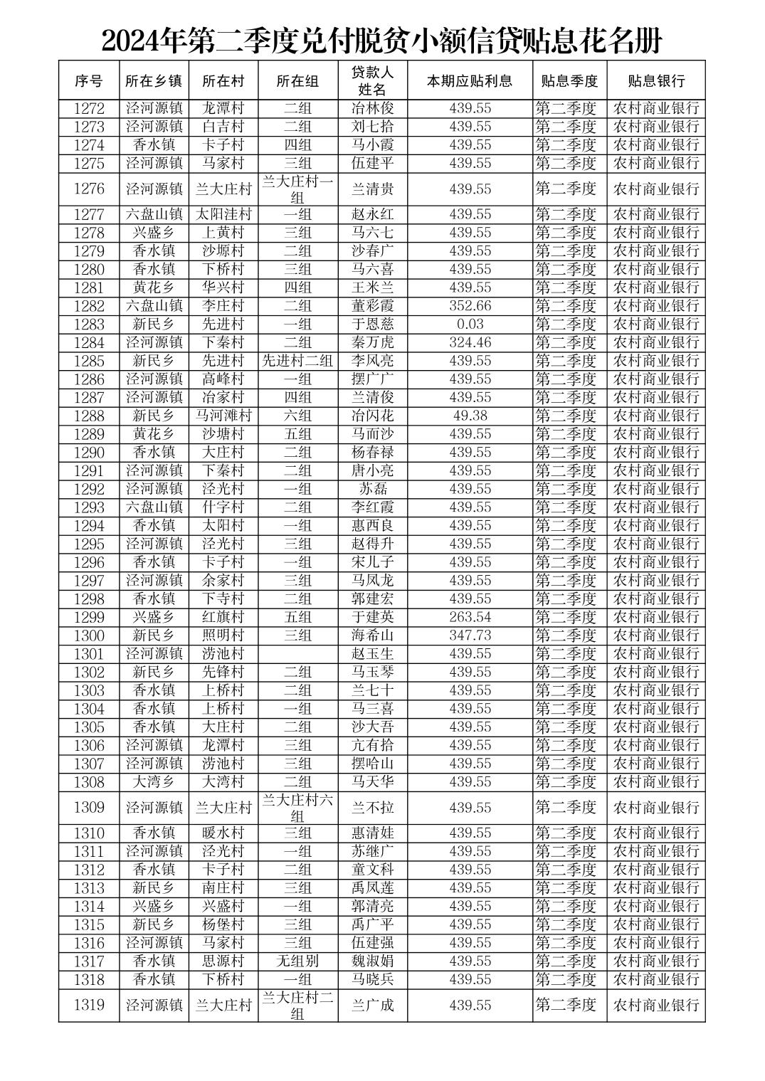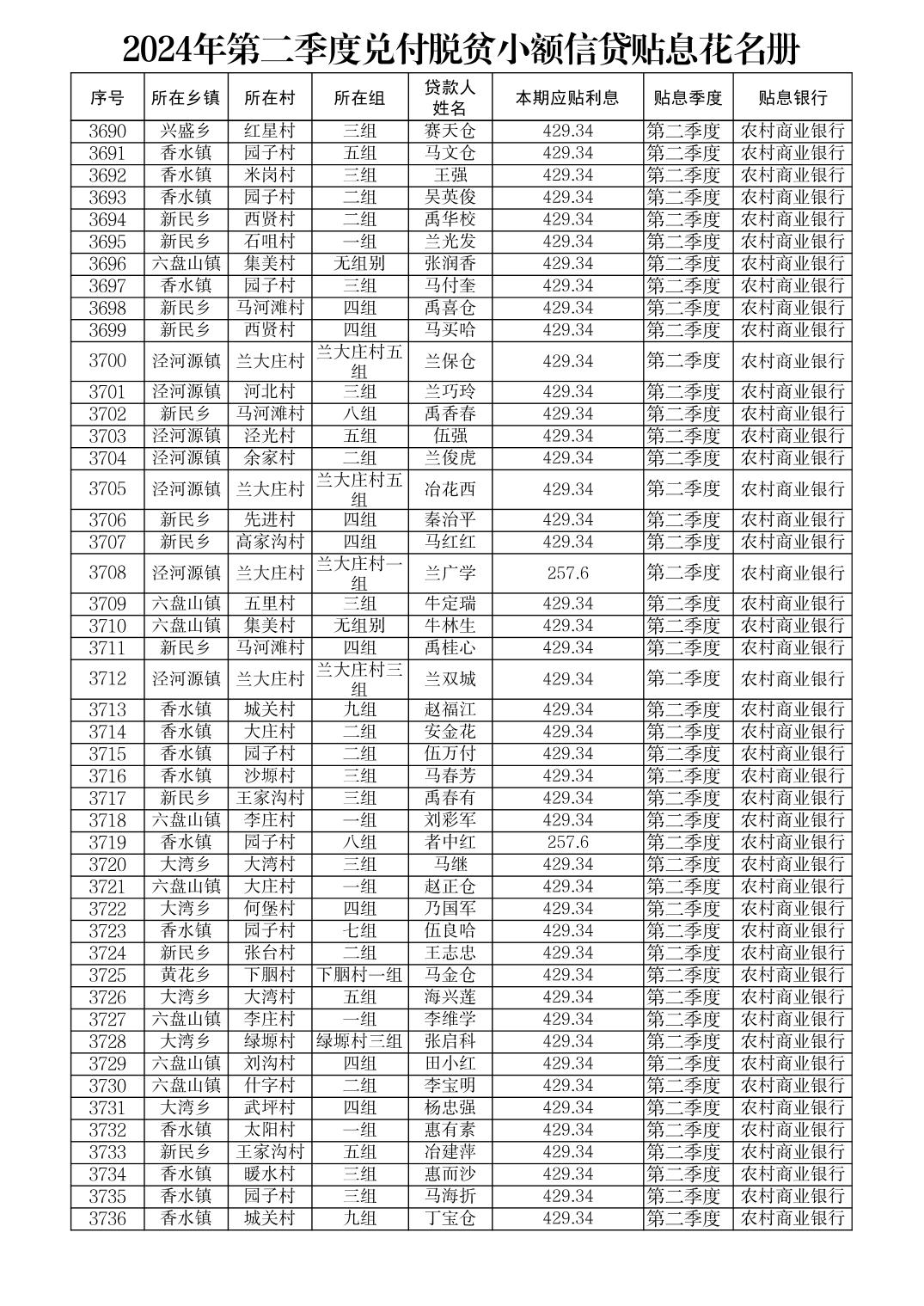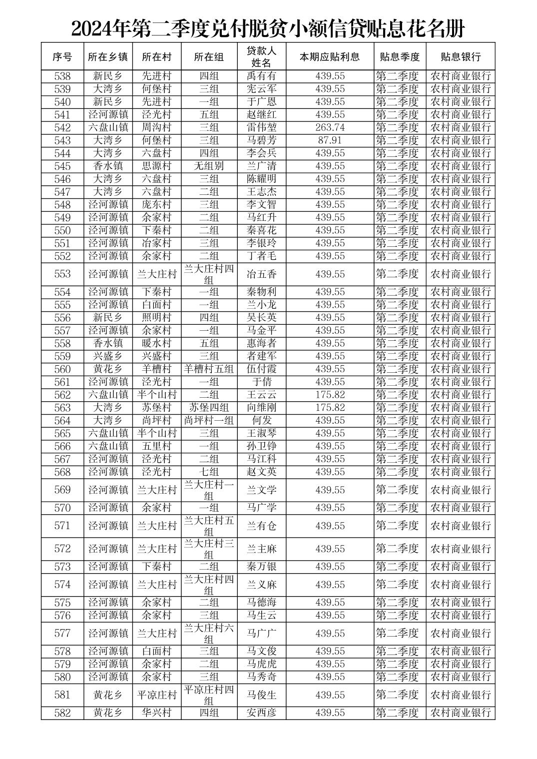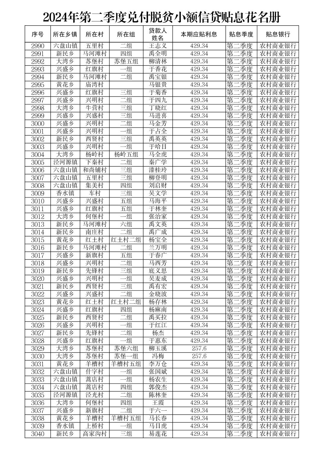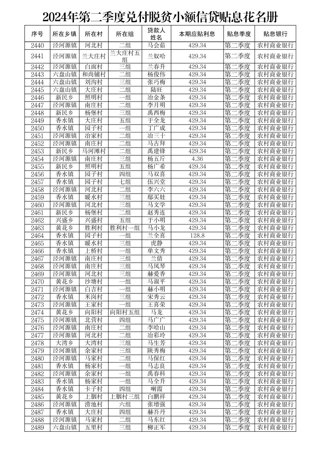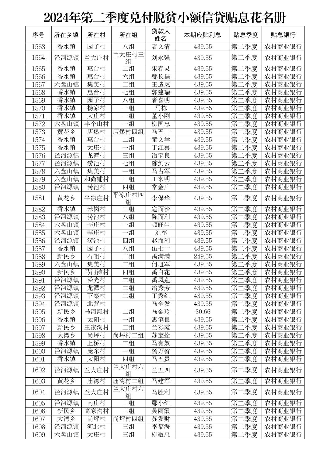 附件:2024年第二季度兑付脱贫小额信贷贴息花名册