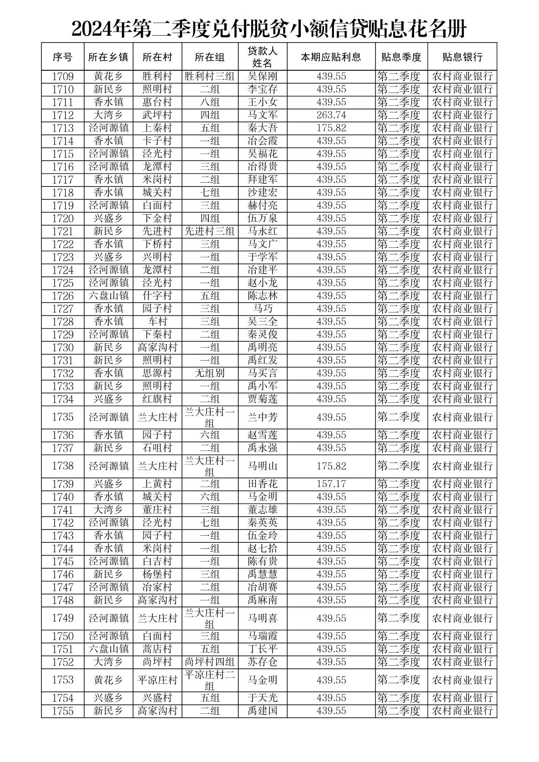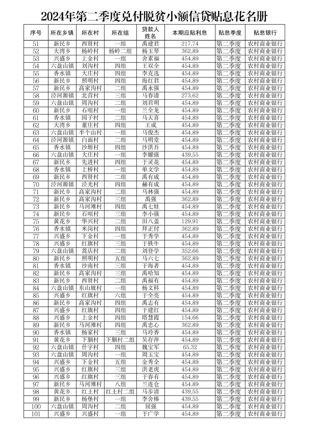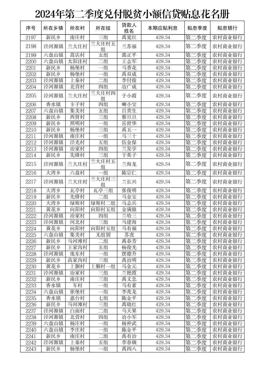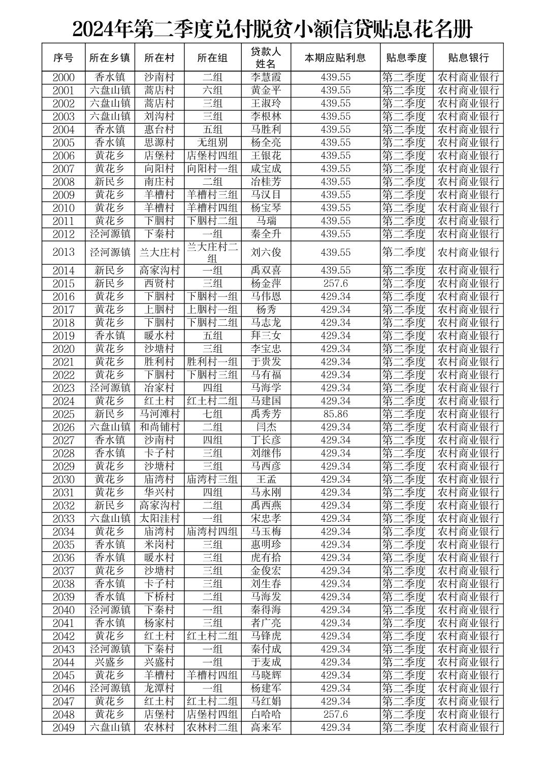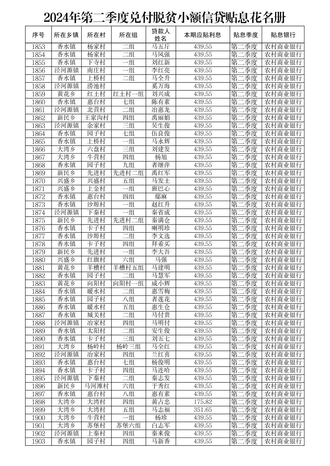附件:2024年第二季度兑付脱贫小额信贷贴息花名册