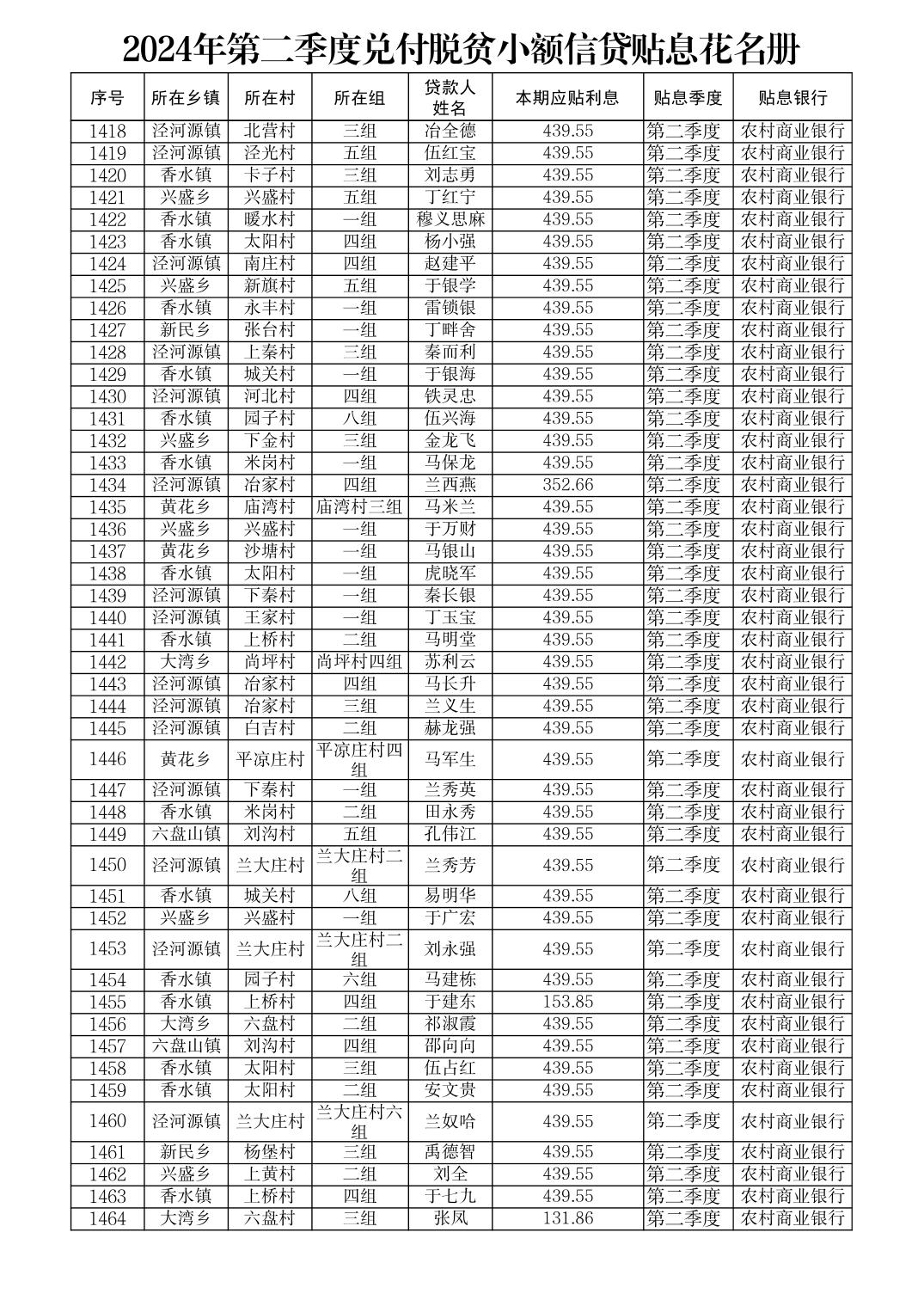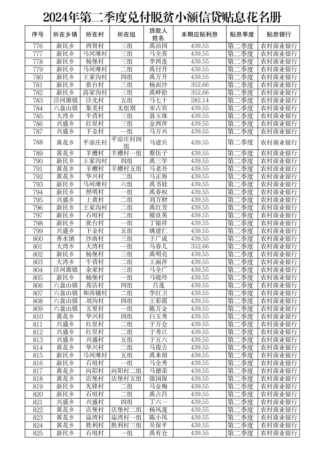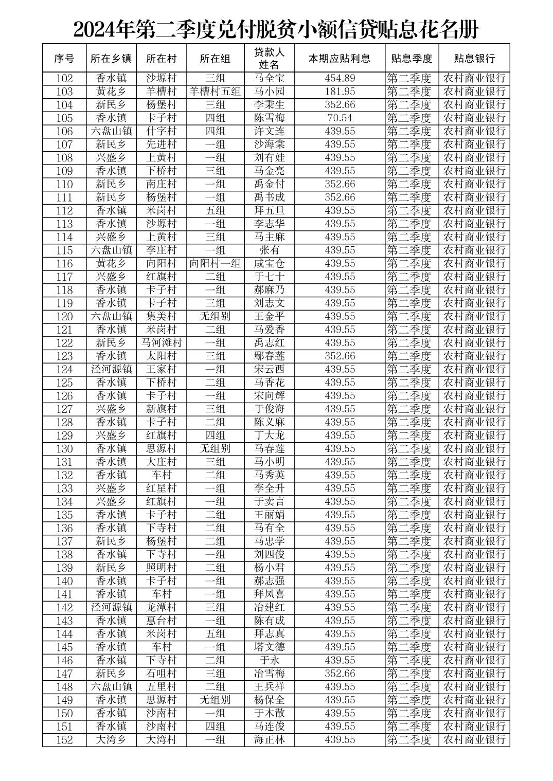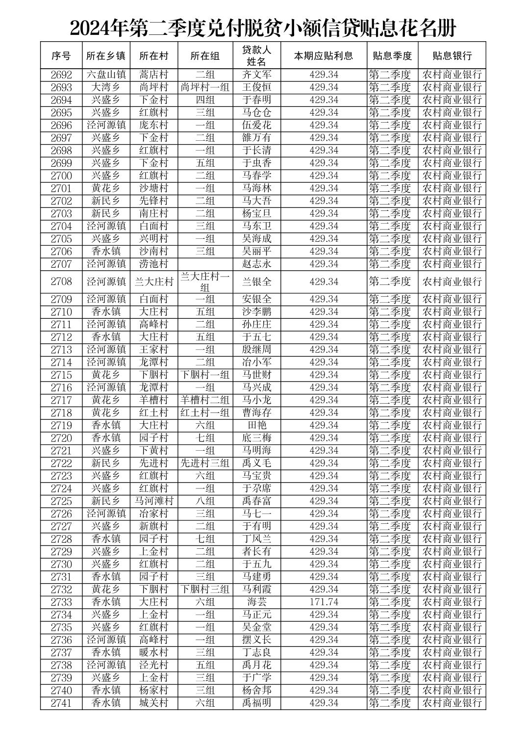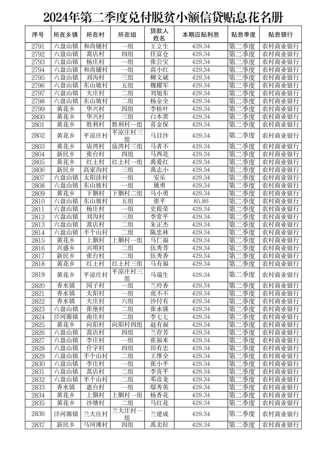 附件:2024年第二季度兑付脱贫小额信贷贴息花名册