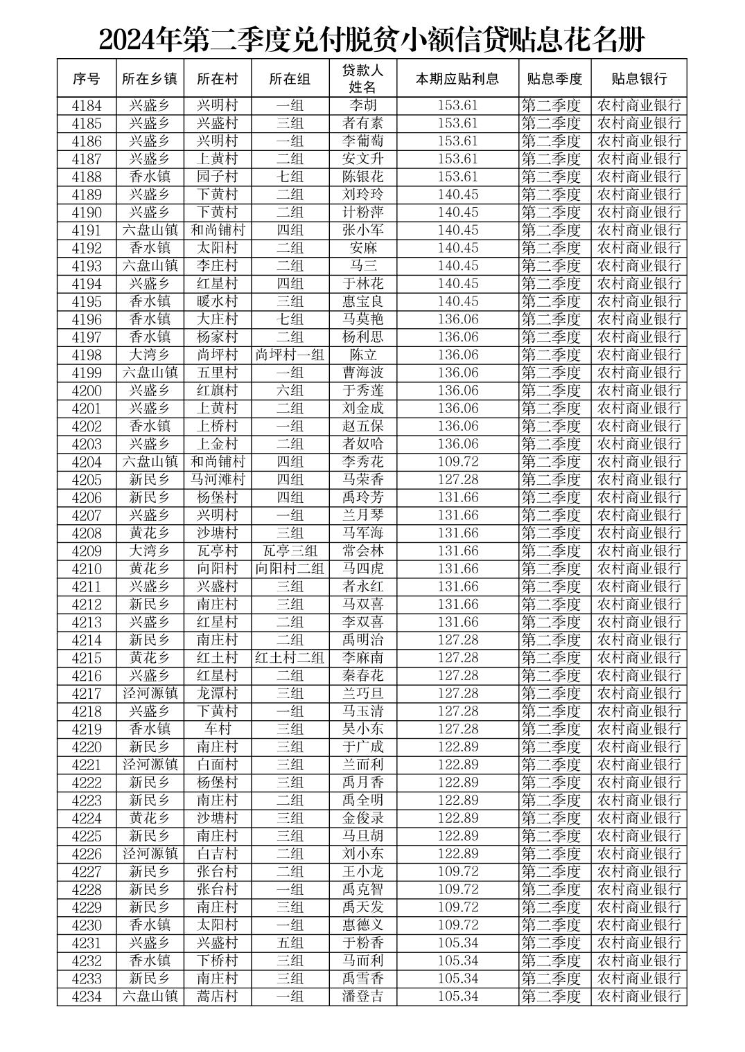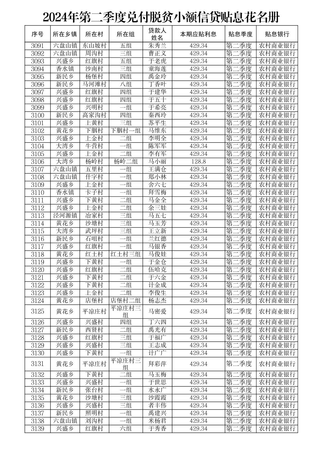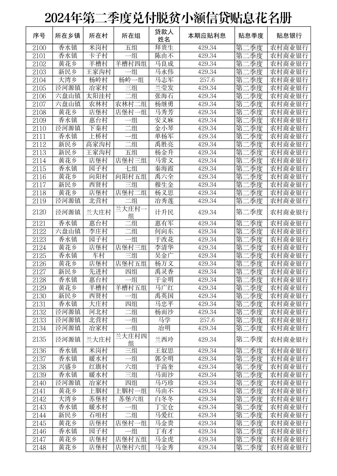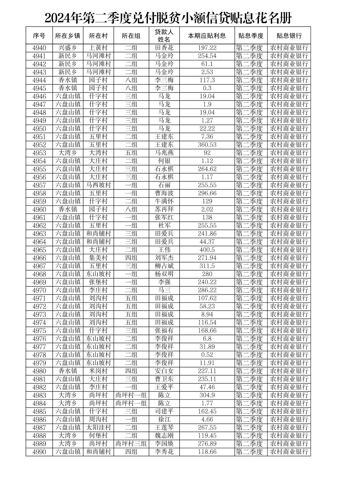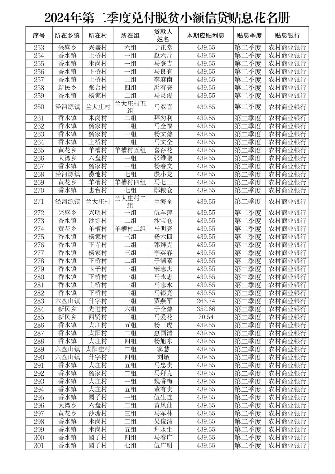 附件:2024年第二季度兑付脱贫小额信贷贴息花名册