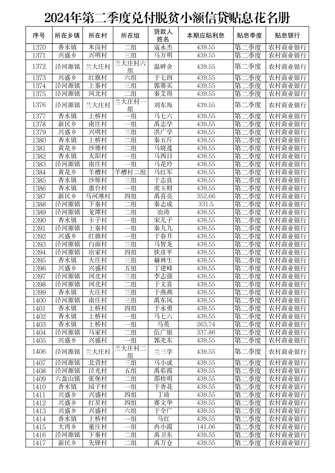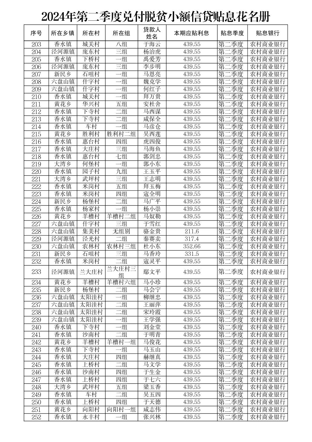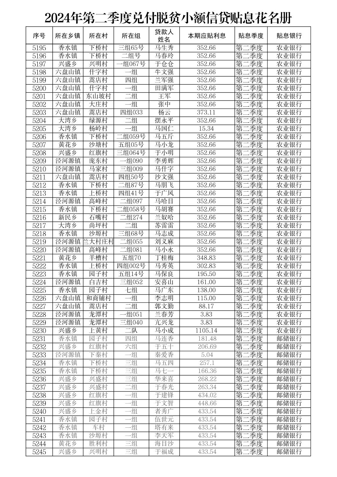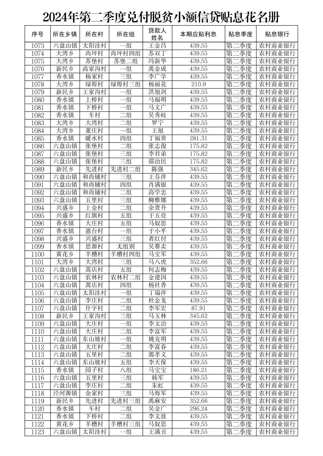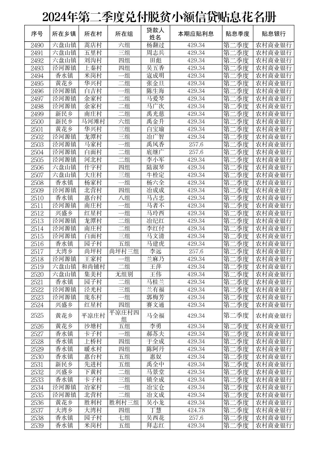 附件:2024年第二季度兑付脱贫小额信贷贴息花名册