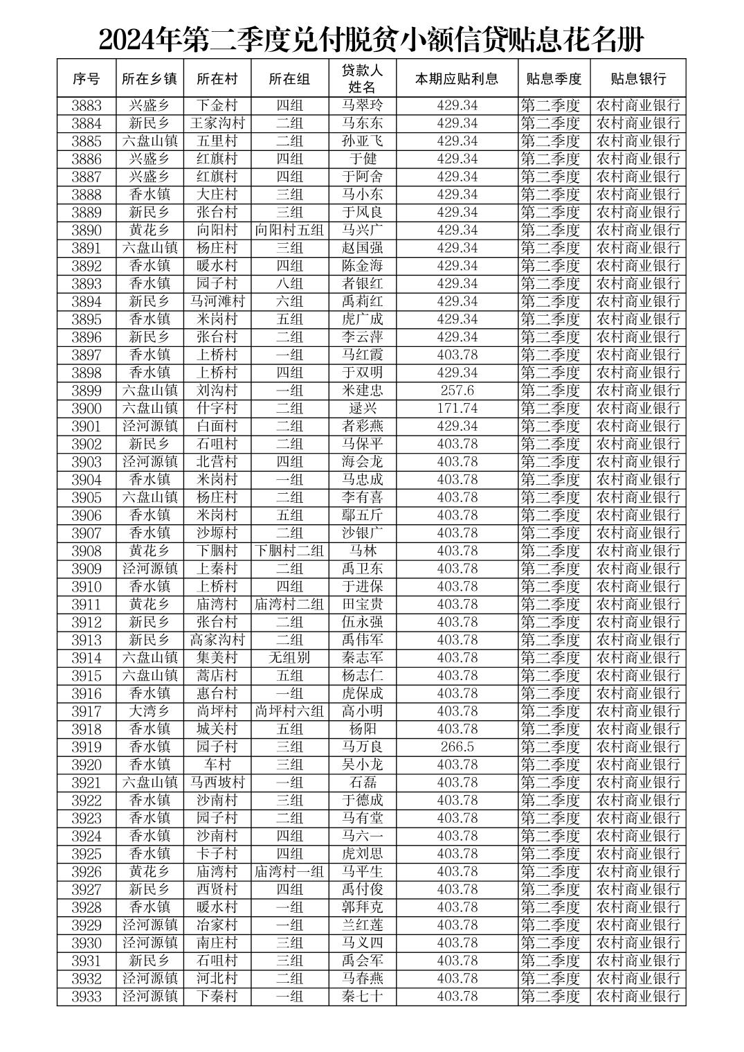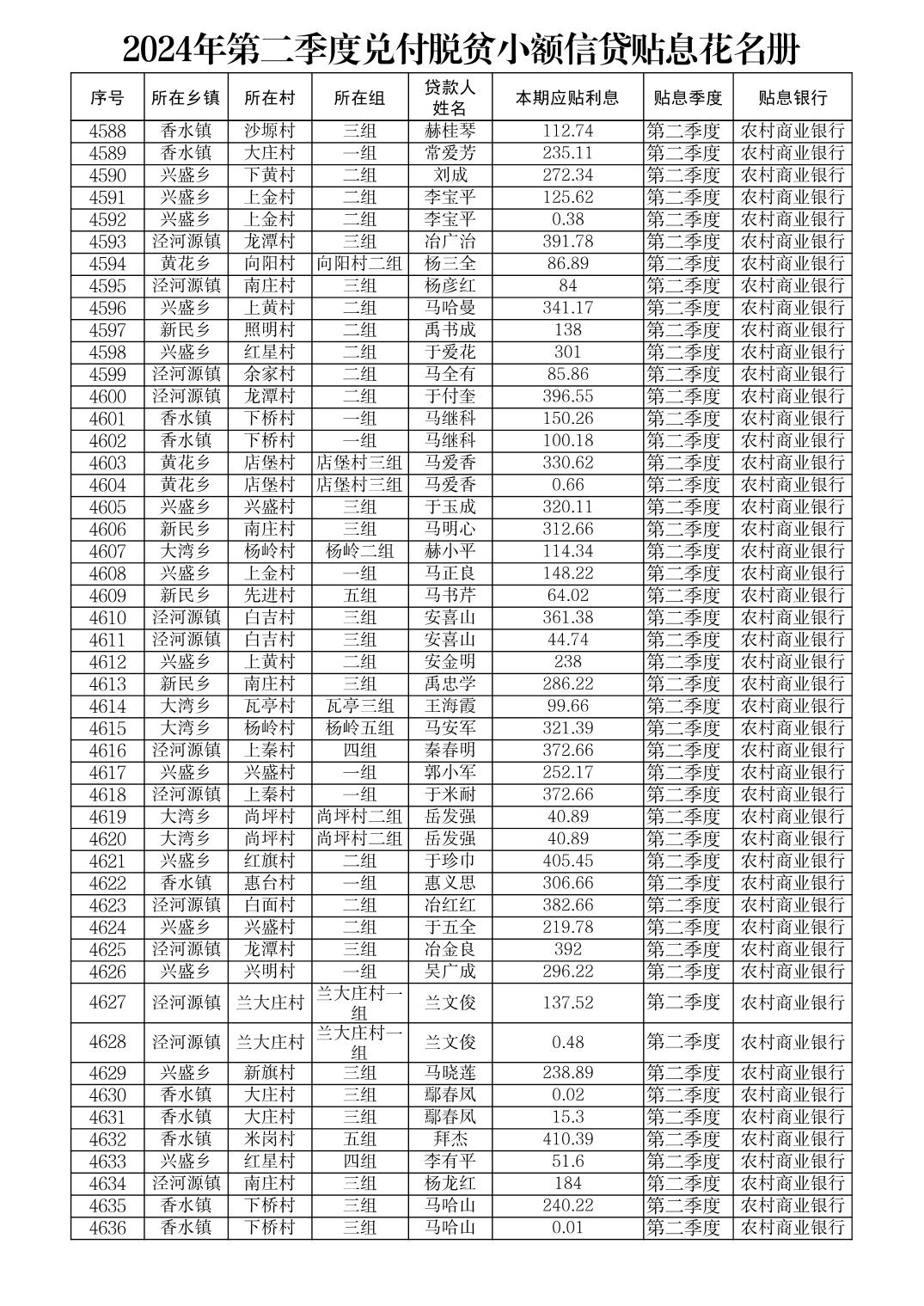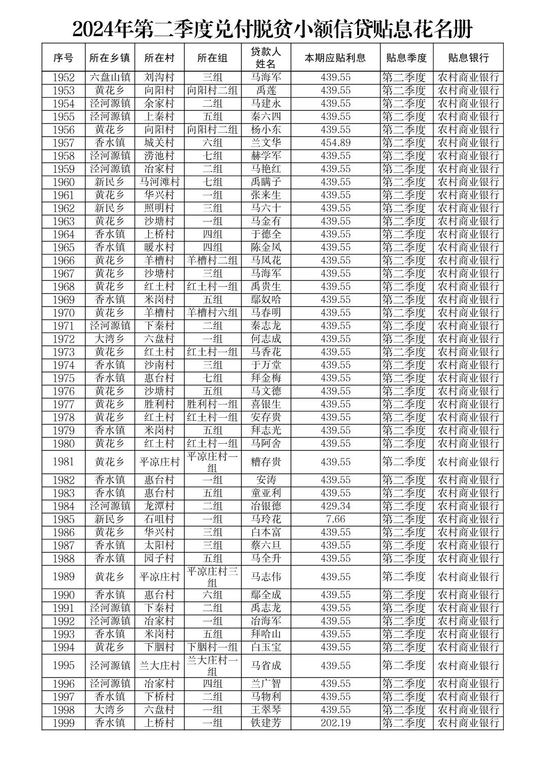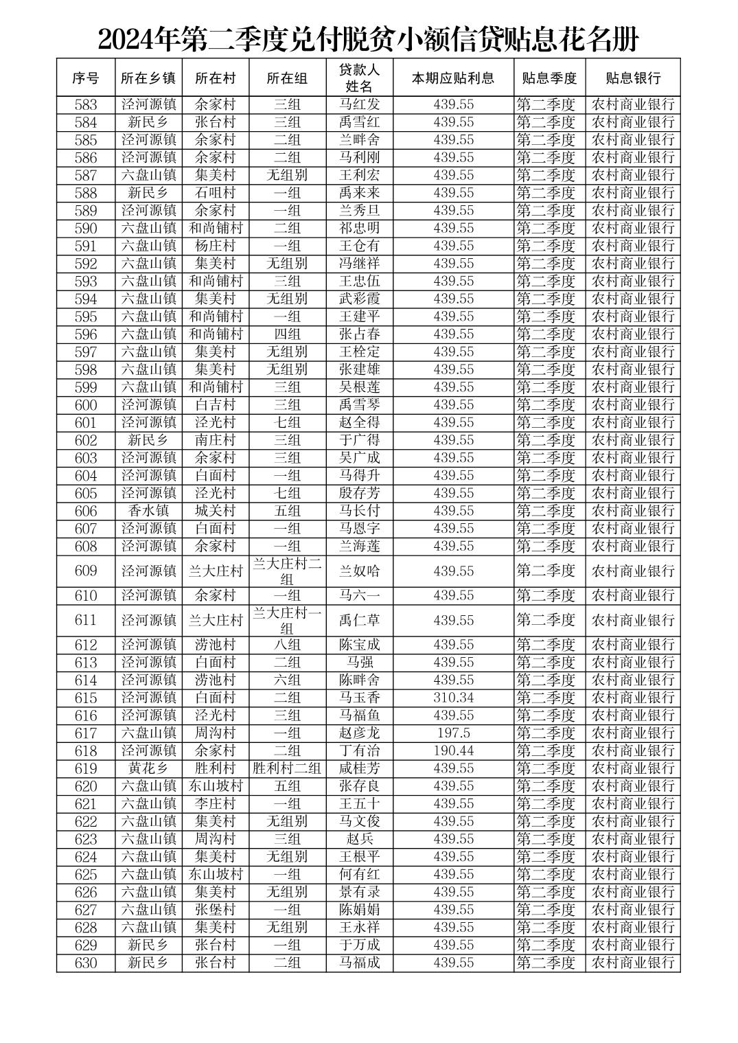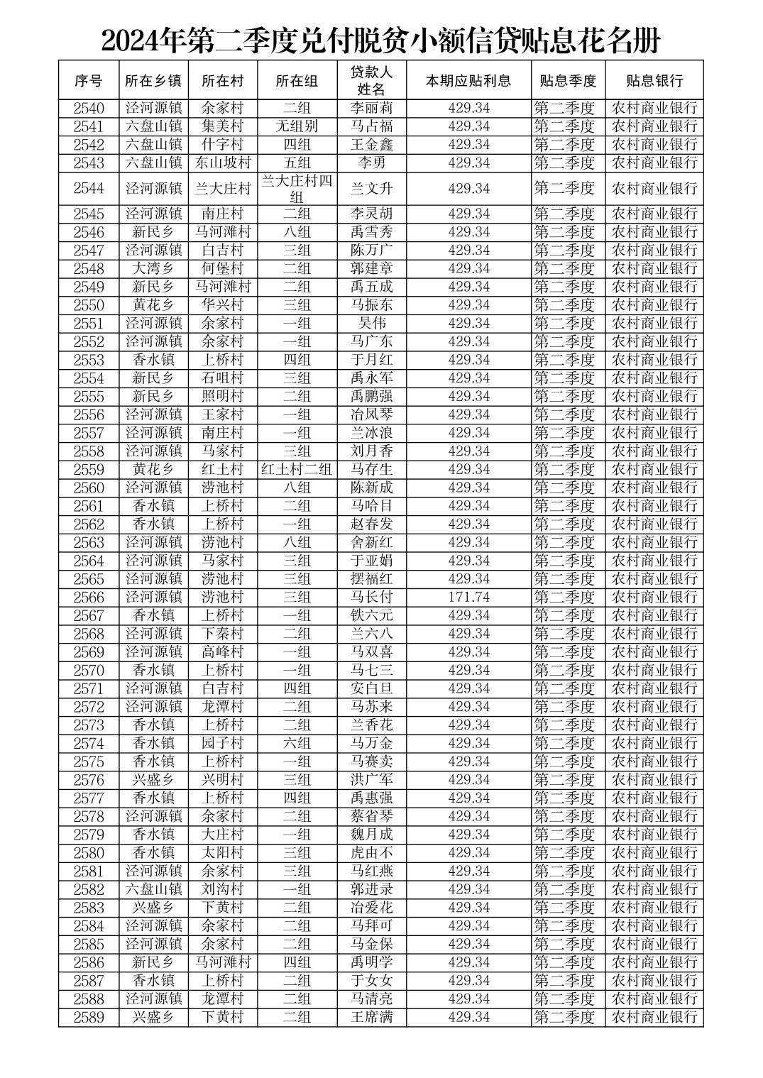 附件:2024年第二季度兑付脱贫小额信贷贴息花名册