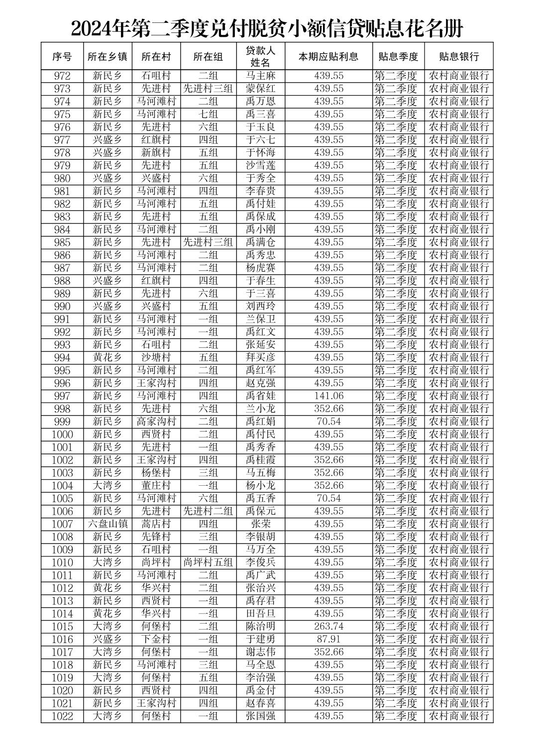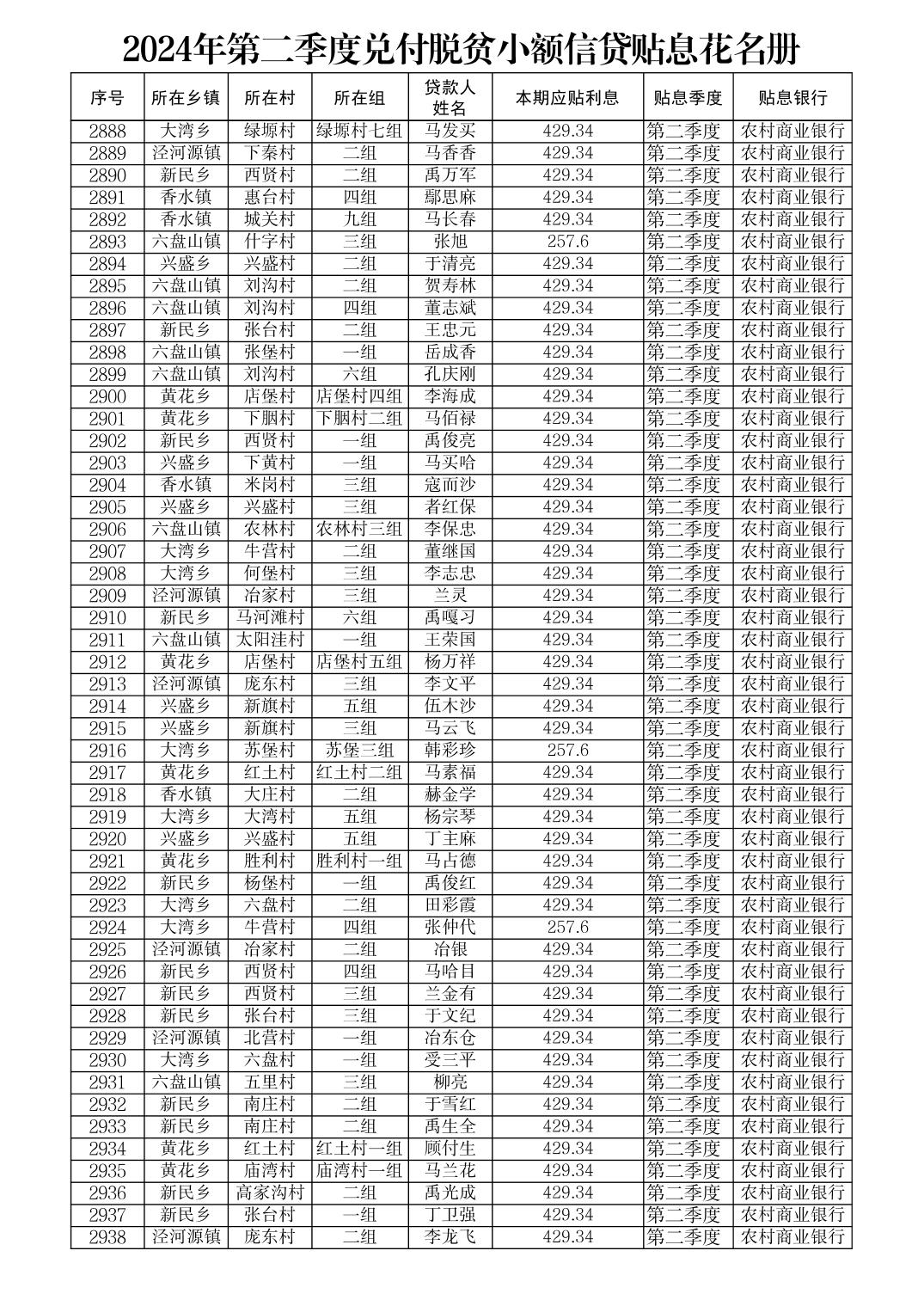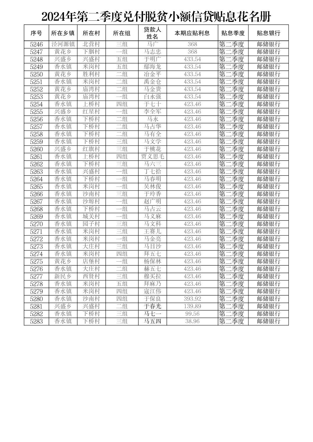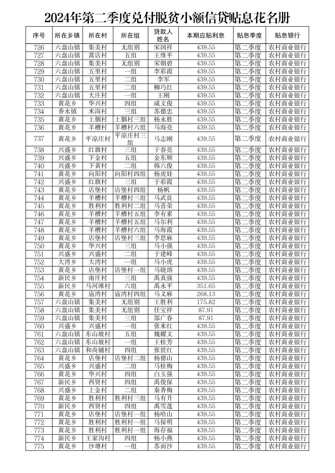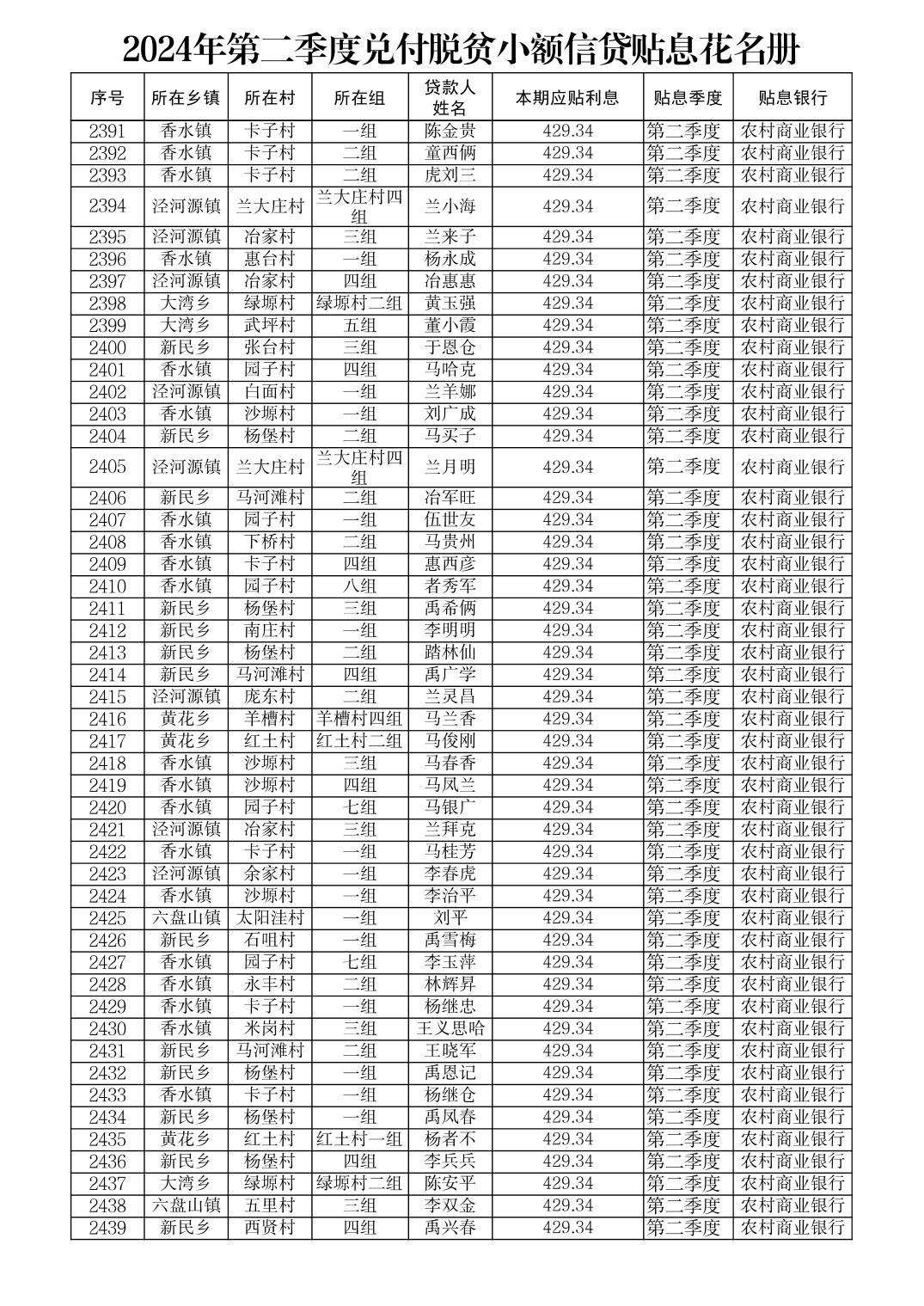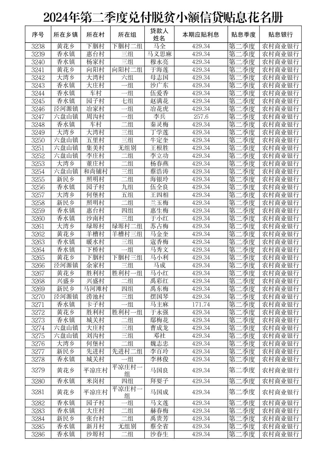 附件:2024年第二季度兑付脱贫小额信贷贴息花名册