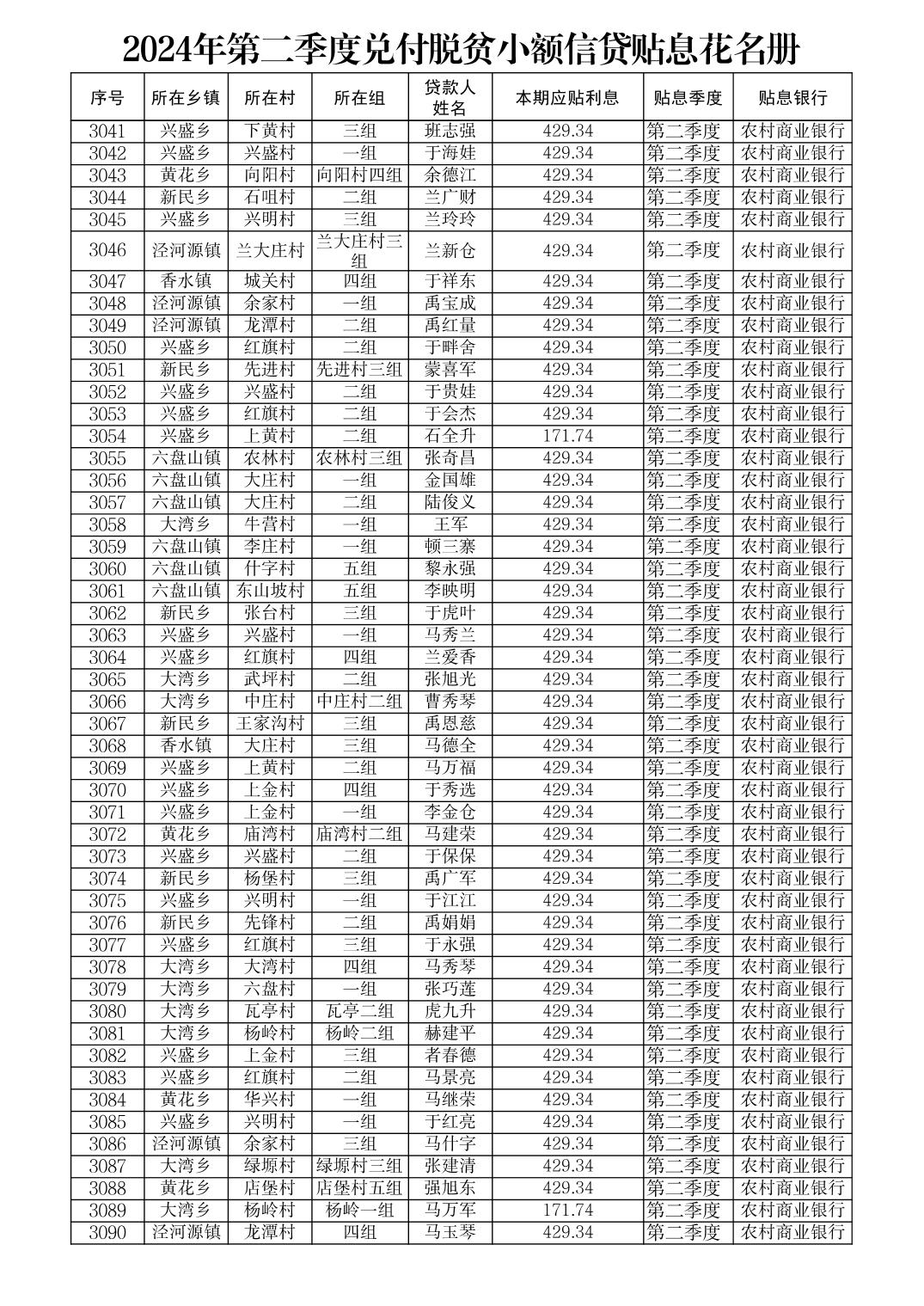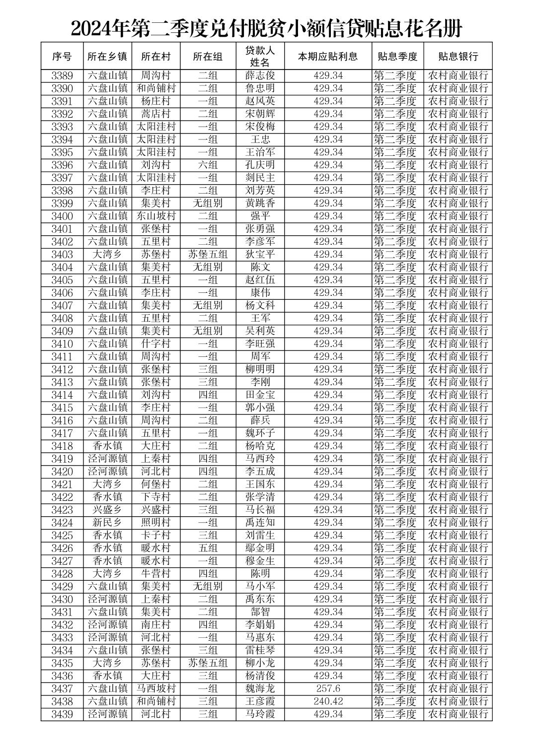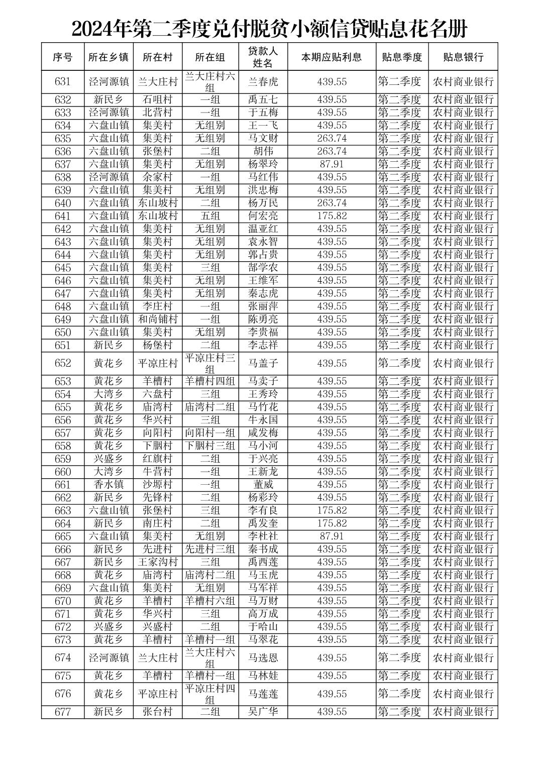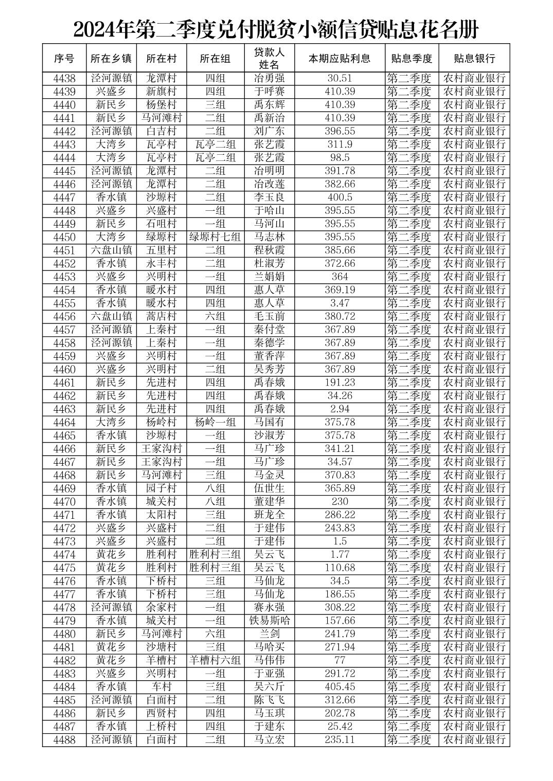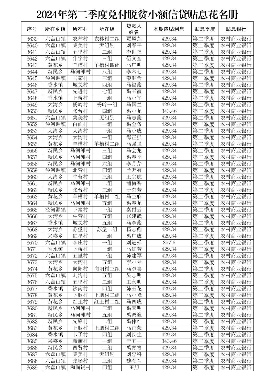 附件:2024年第二季度兑付脱贫小额信贷贴息花名册