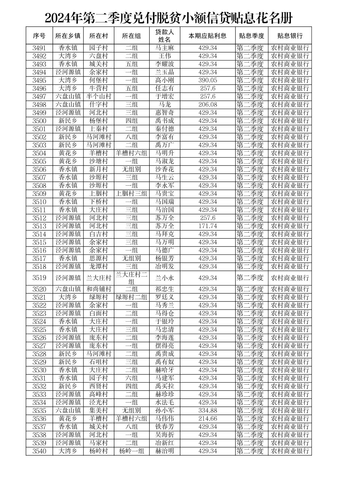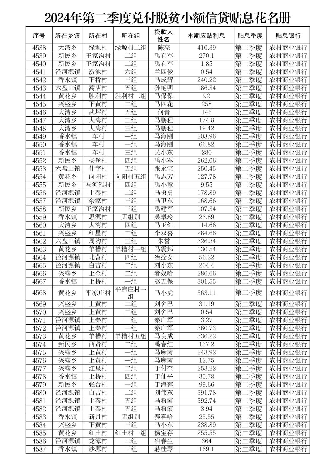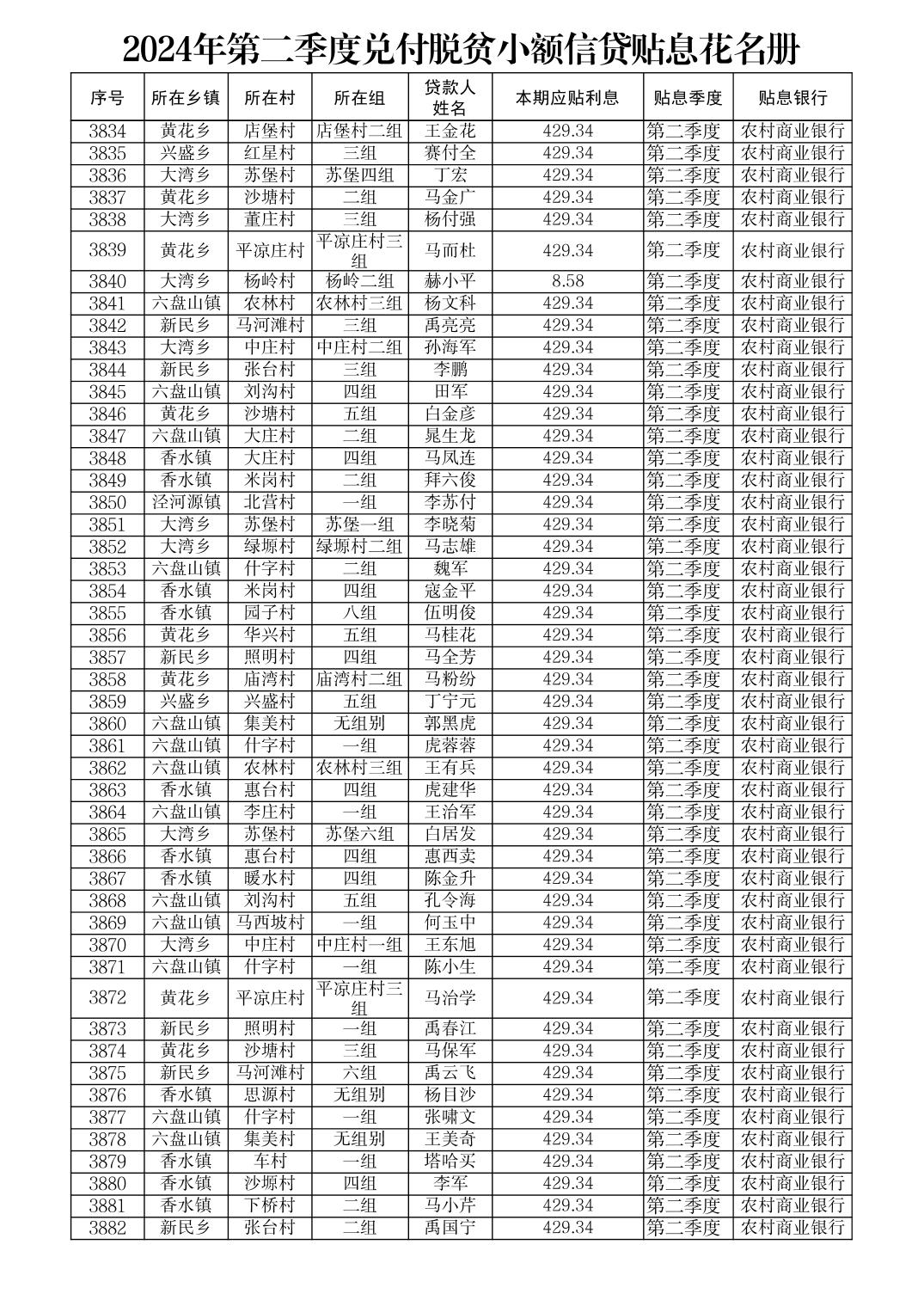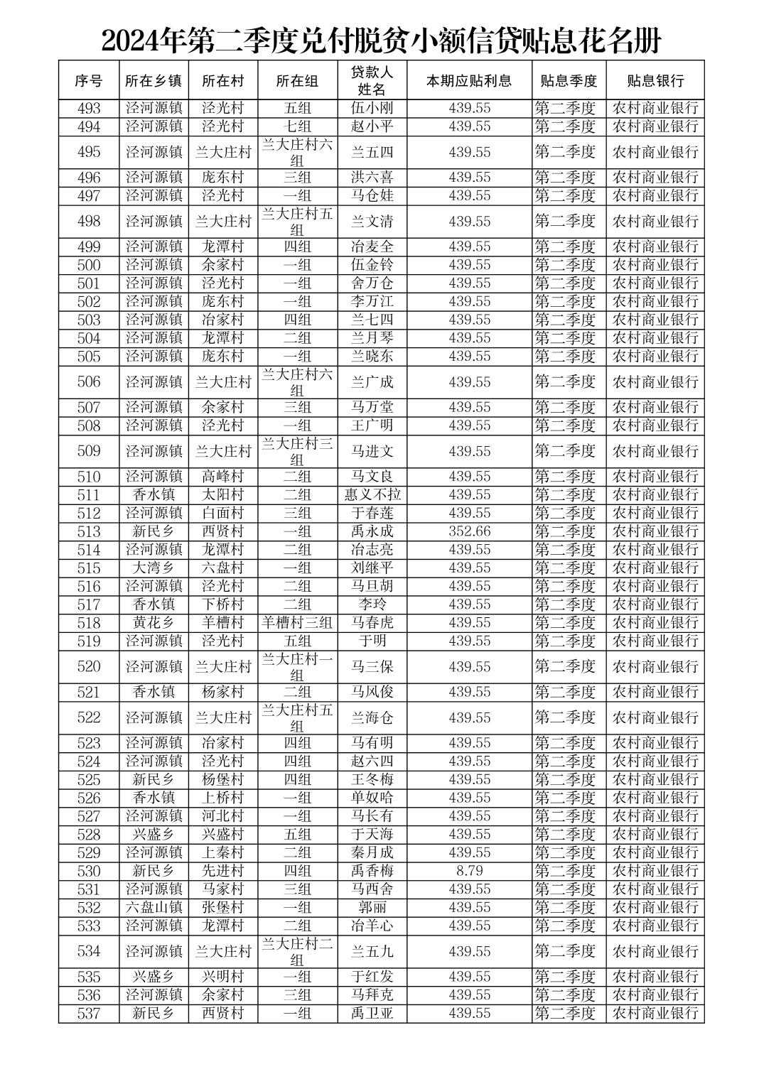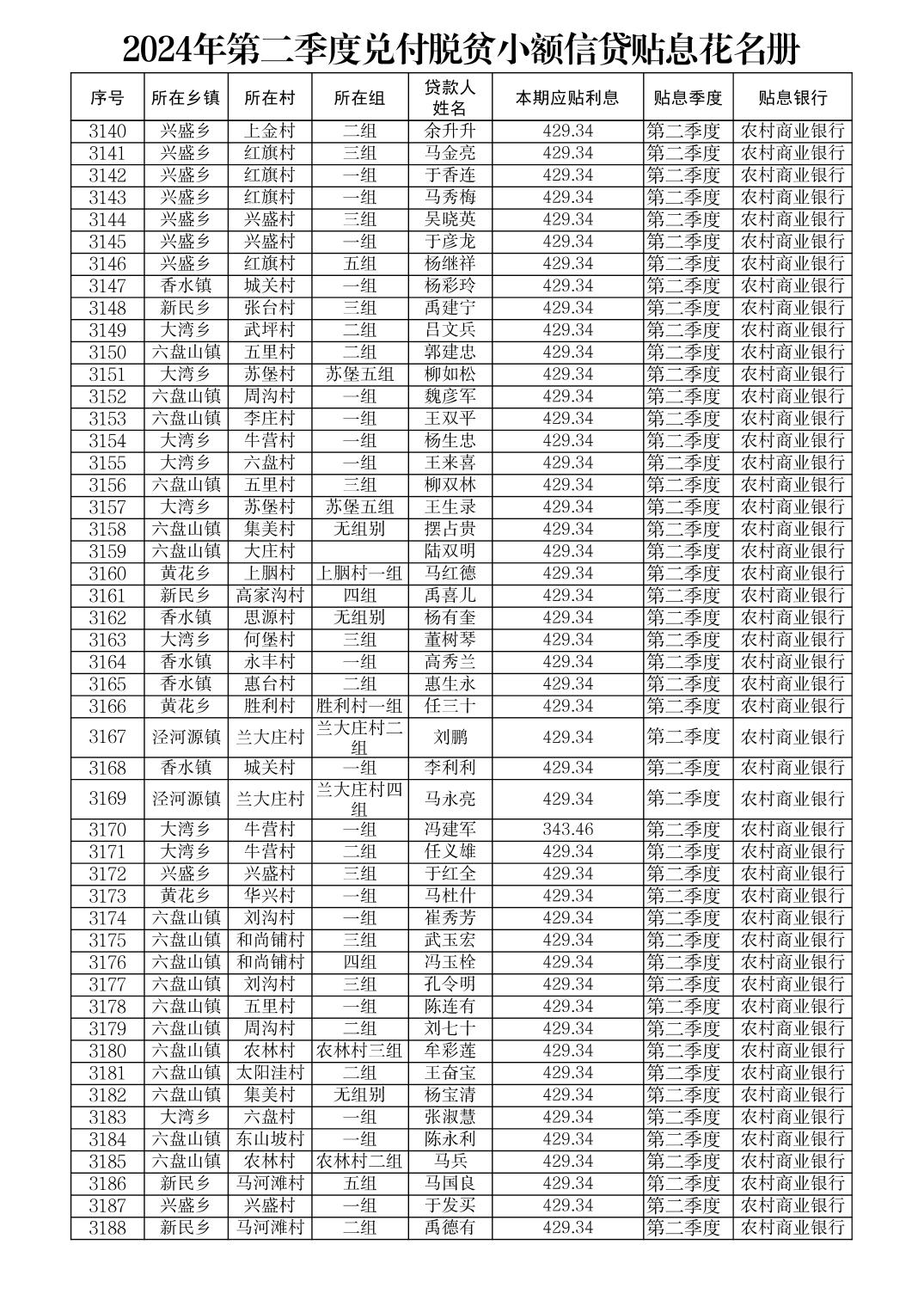 附件:2024年第二季度兑付脱贫小额信贷贴息花名册