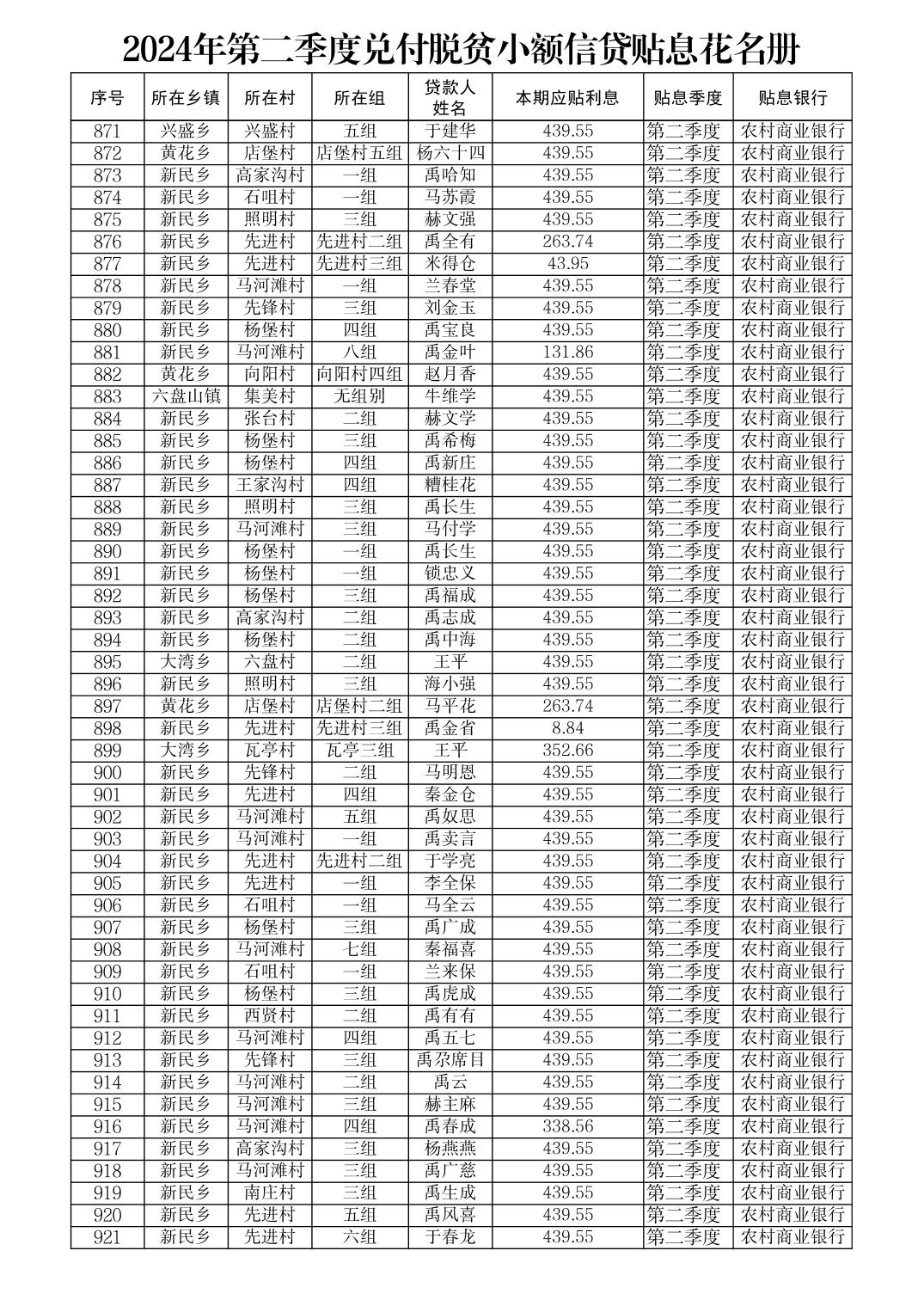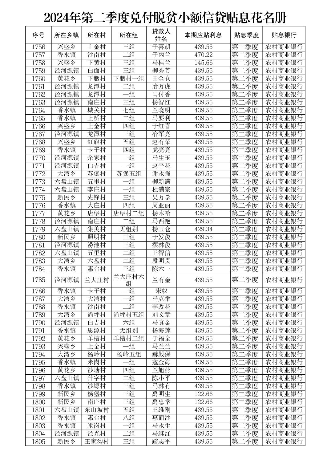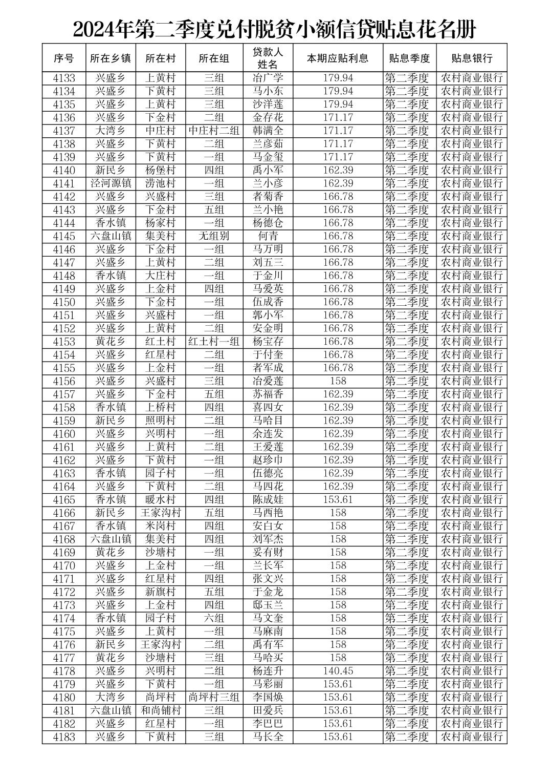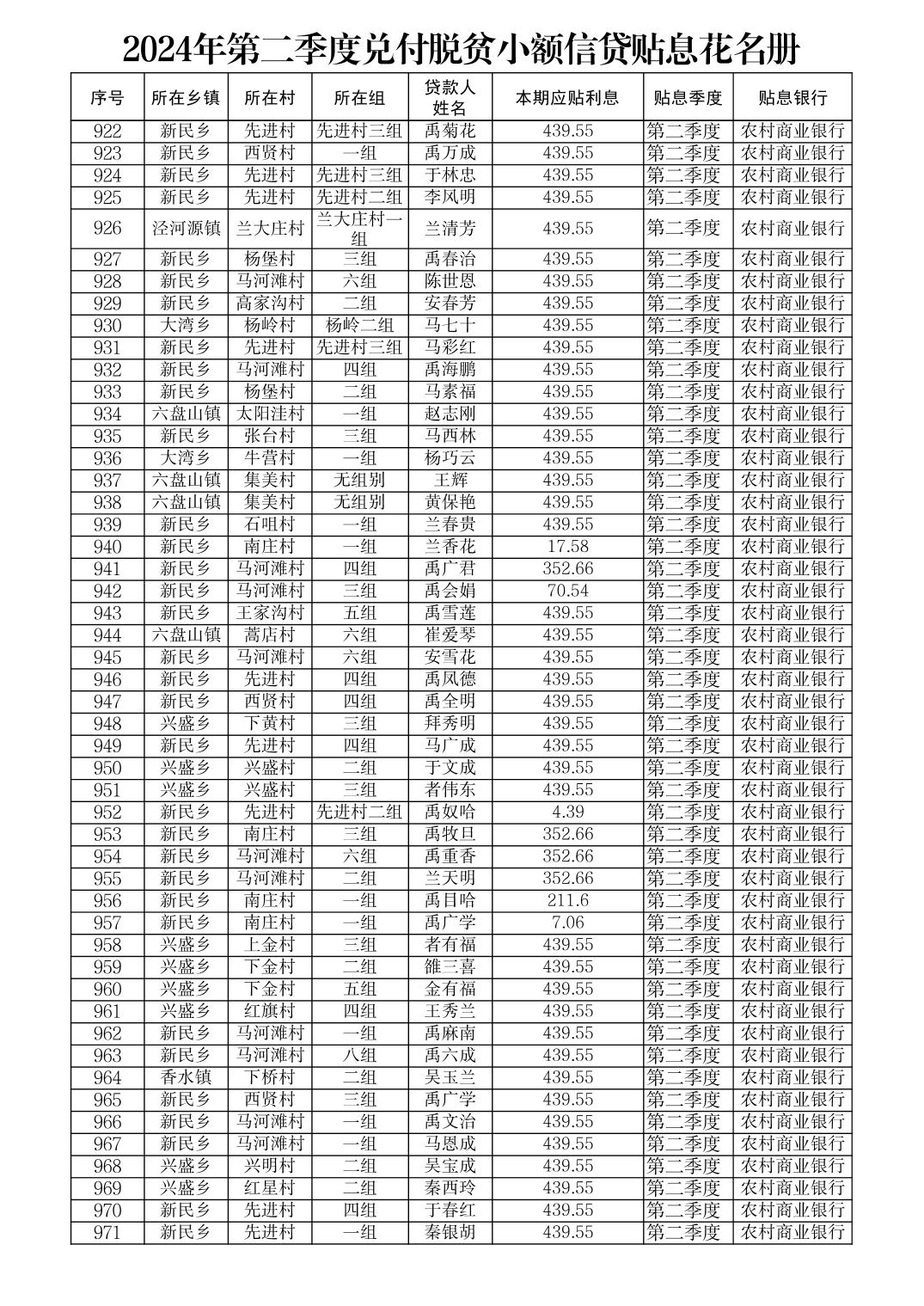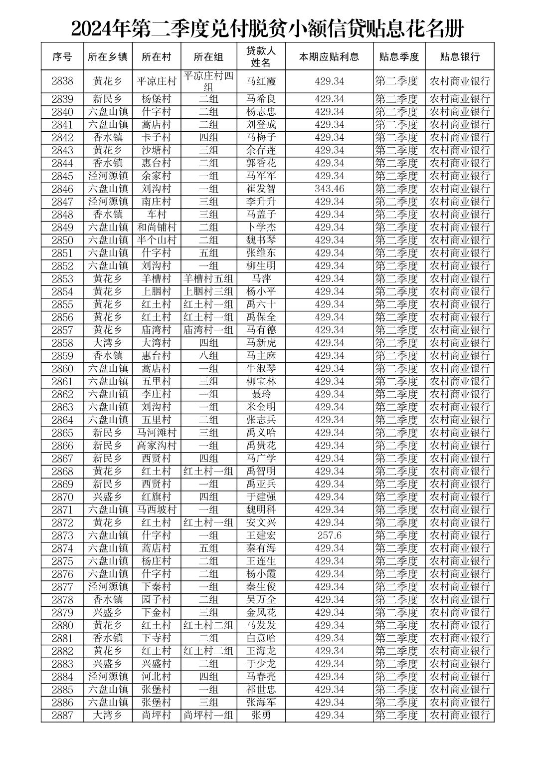附件:2024年第二季度兑付脱贫小额信贷贴息花名册