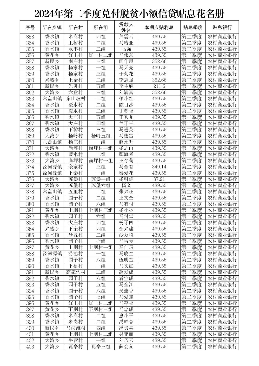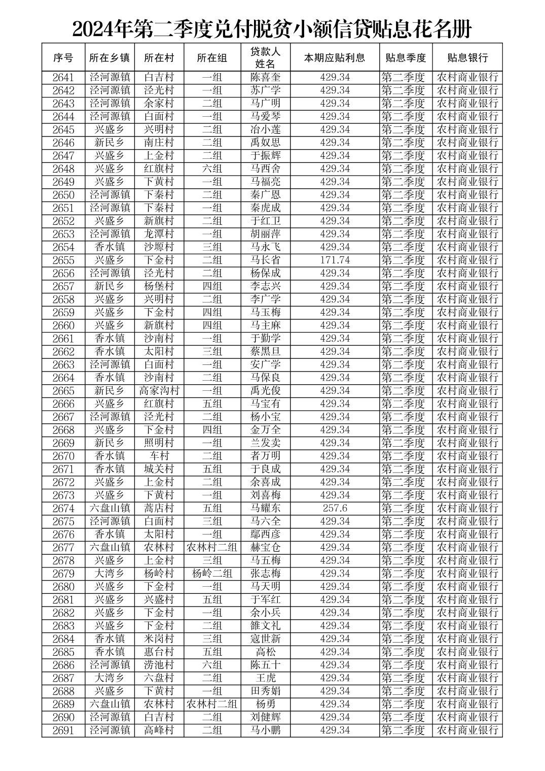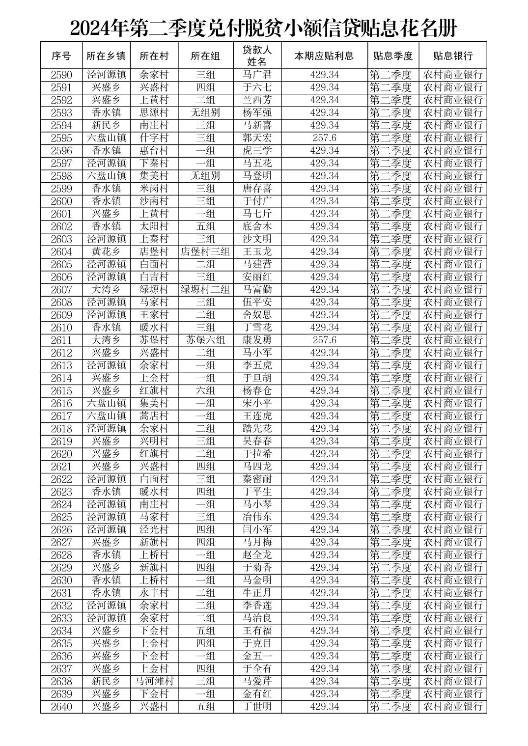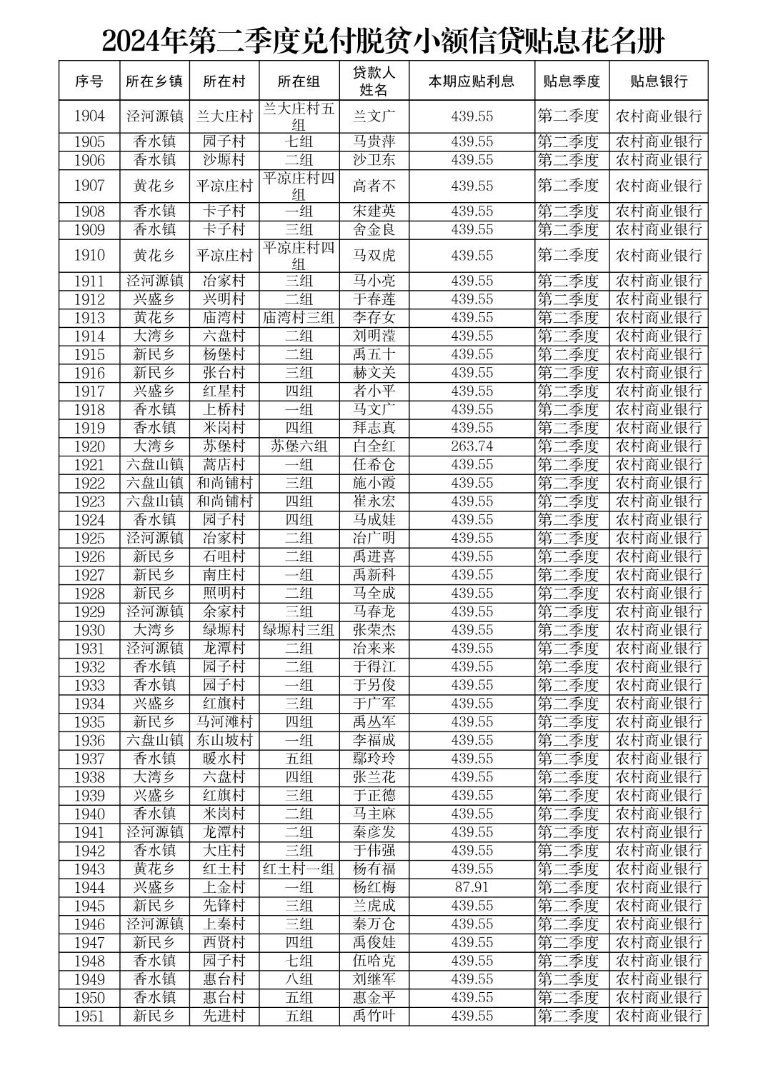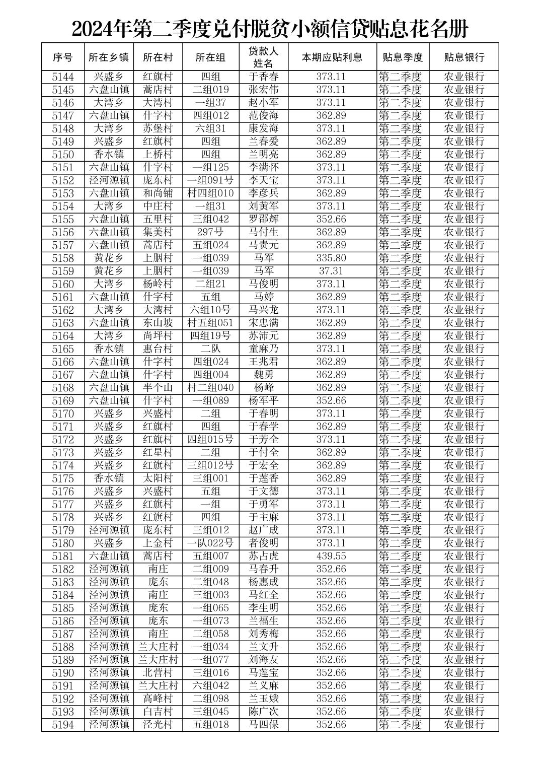 附件:2024年第二季度兑付脱贫小额信贷贴息花名册