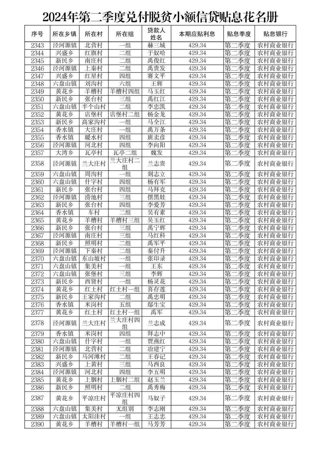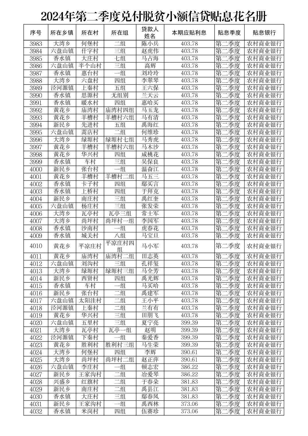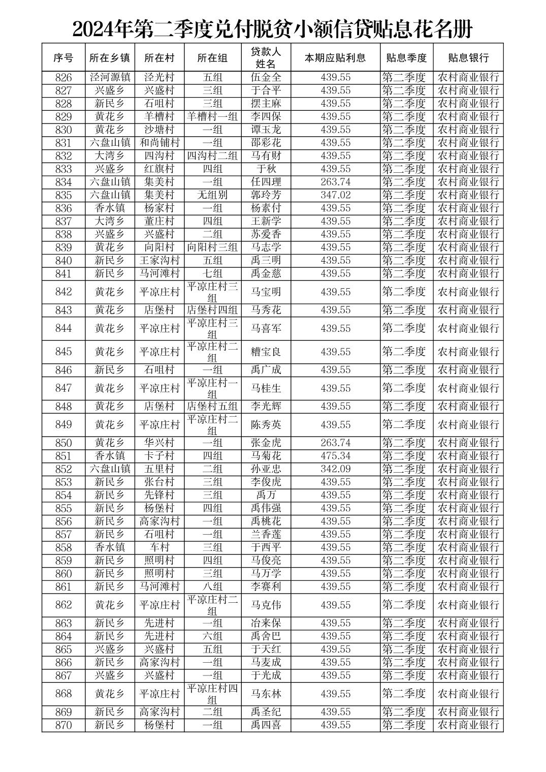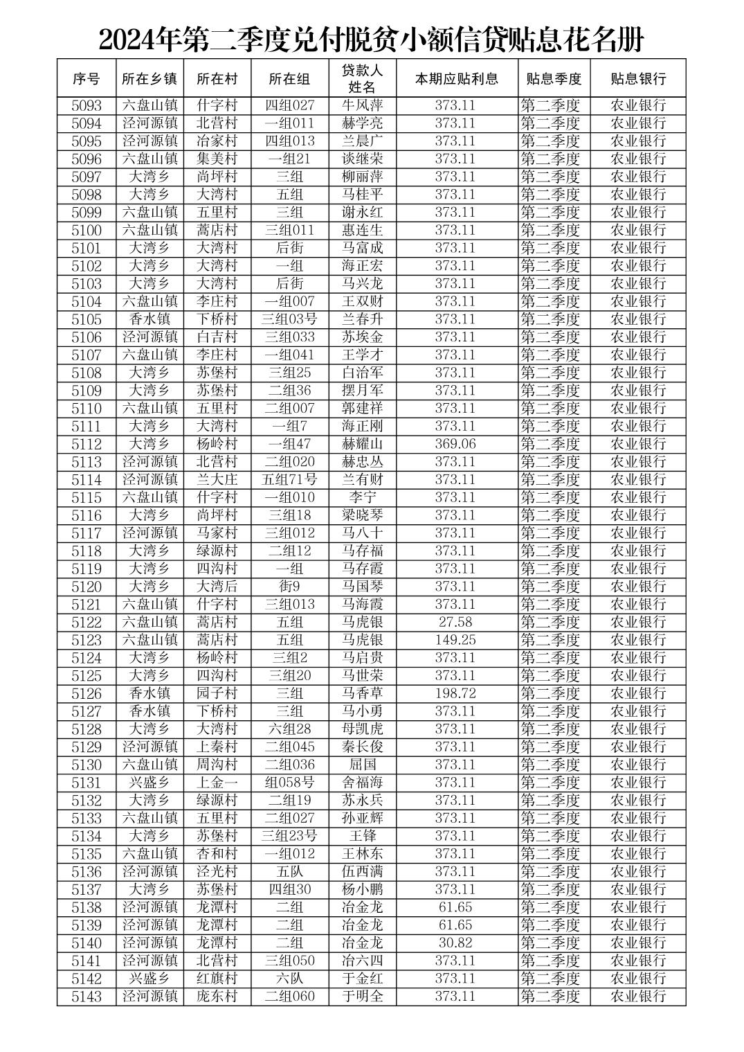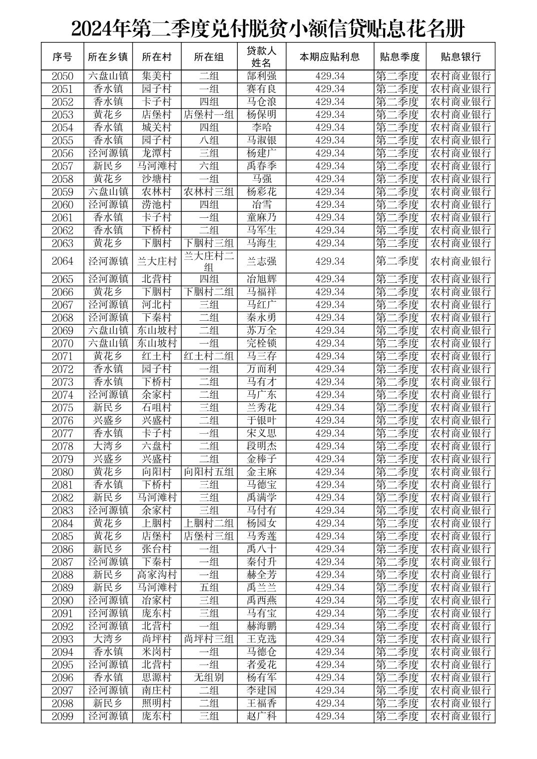 附件:2024年第二季度兑付脱贫小额信贷贴息花名册