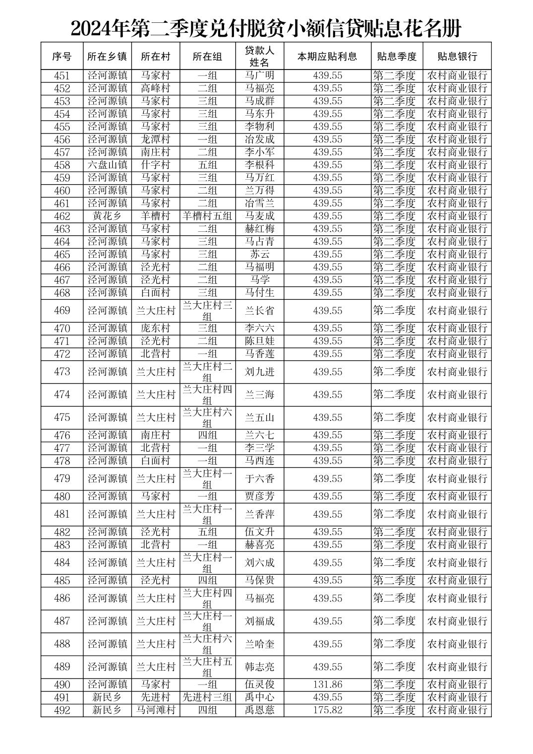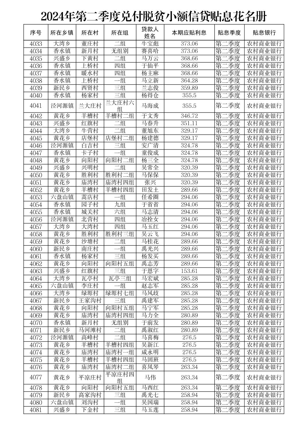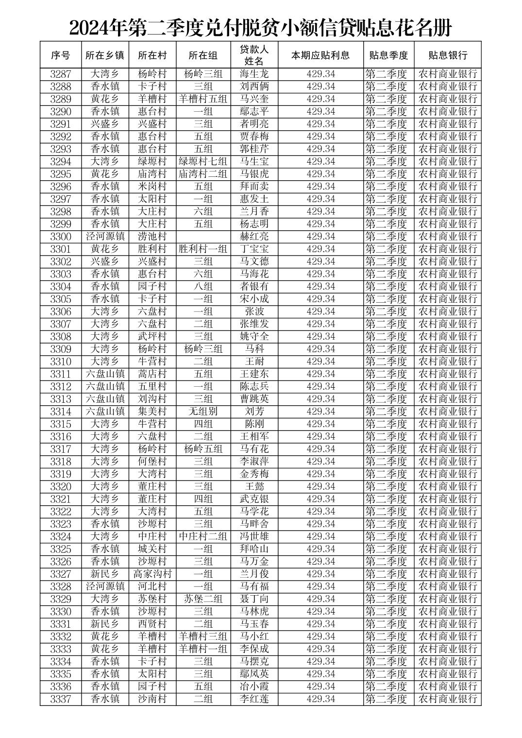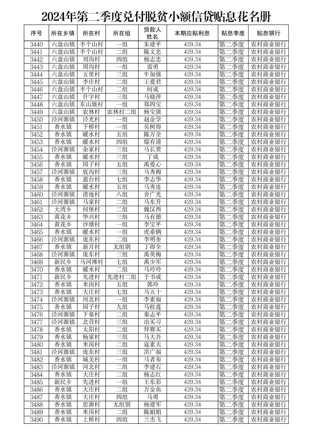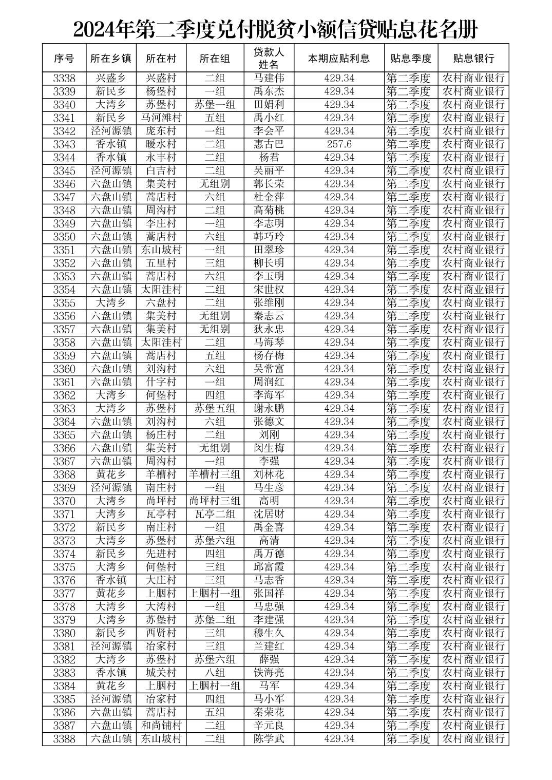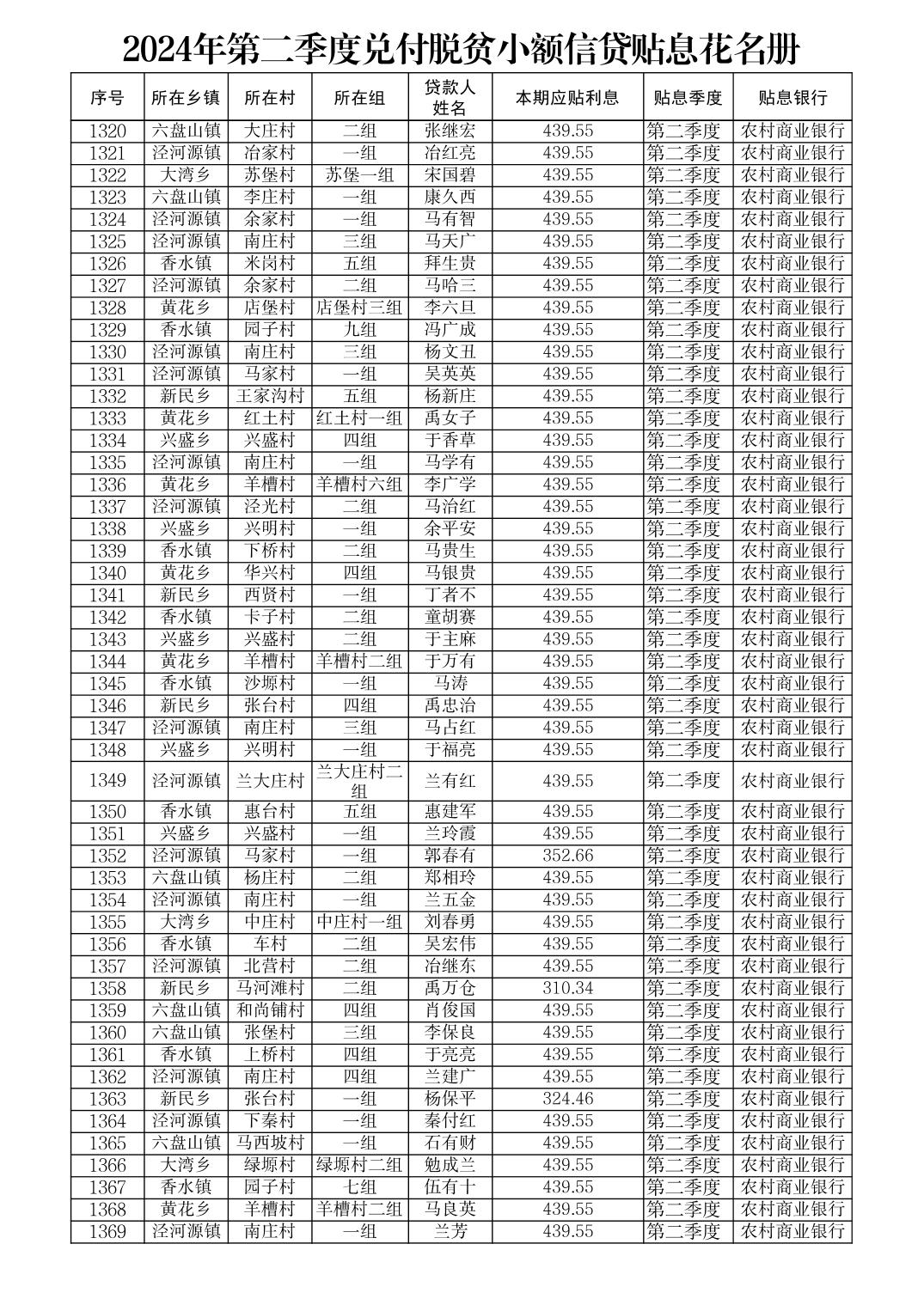 附件:2024年第二季度兑付脱贫小额信贷贴息花名册