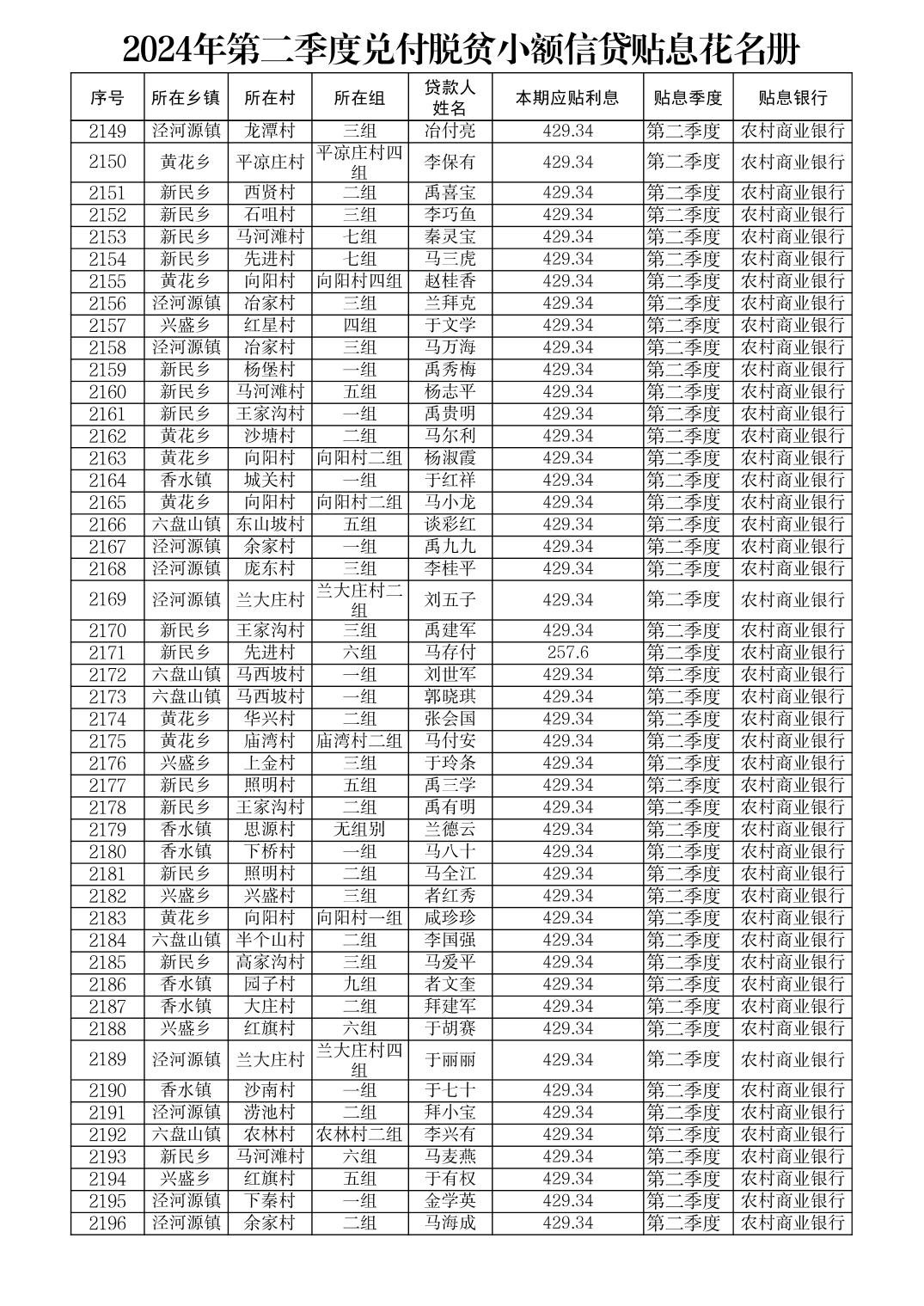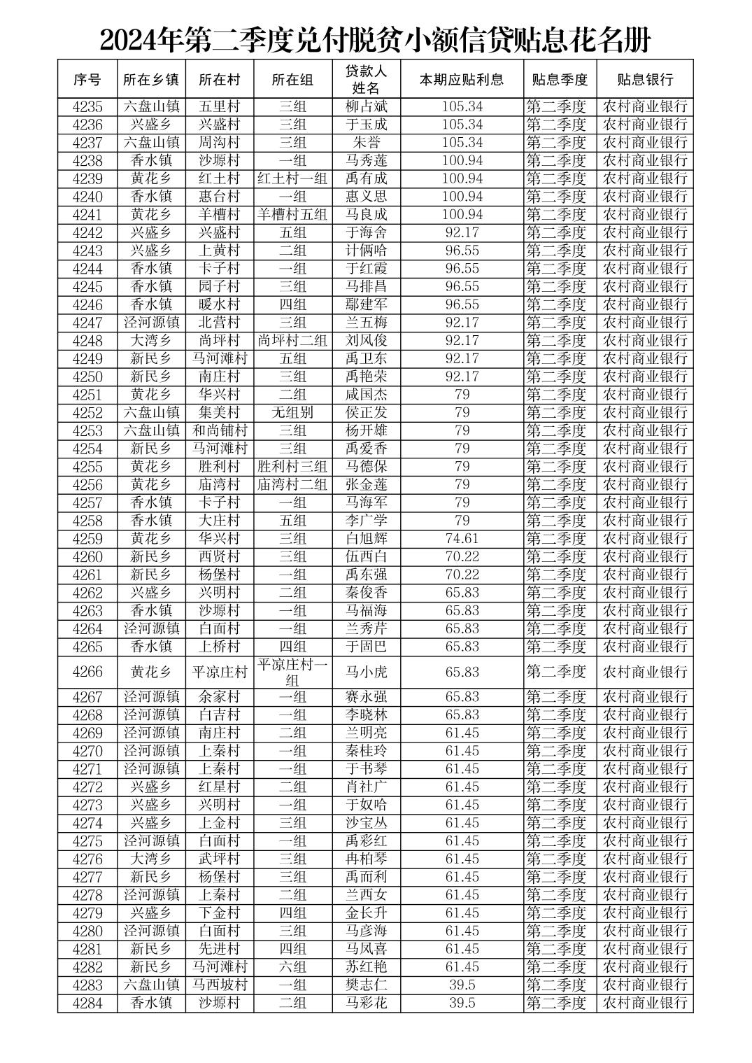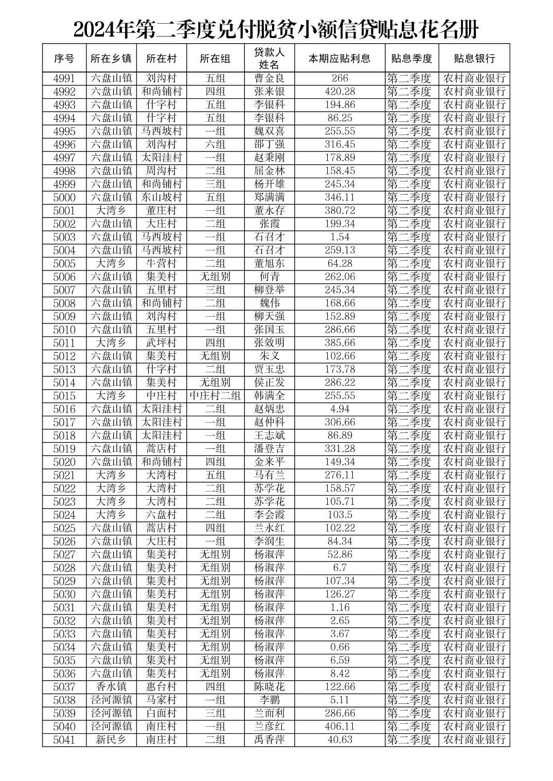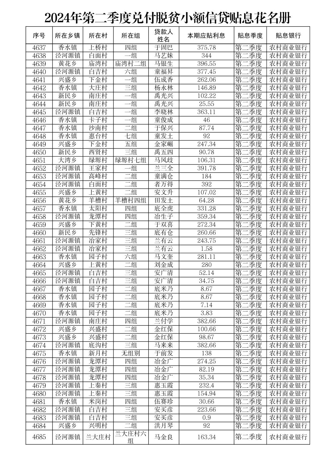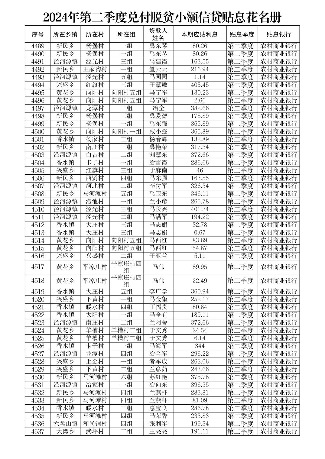 附件:2024年第二季度兑付脱贫小额信贷贴息花名册
