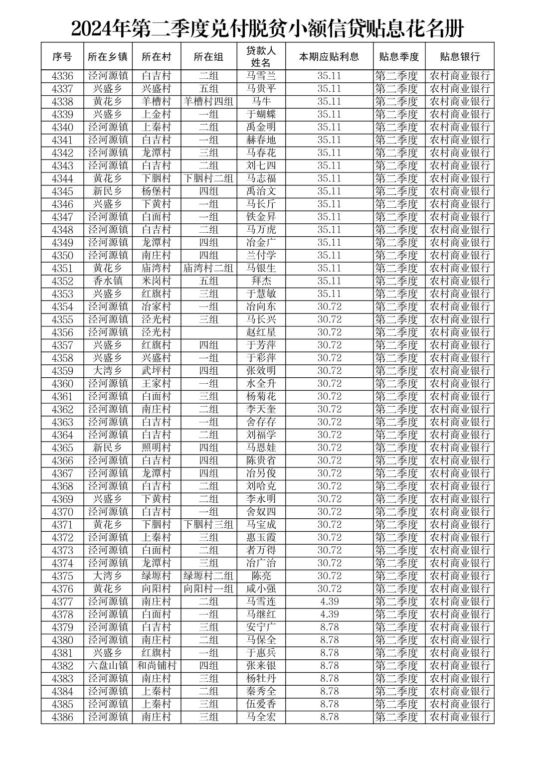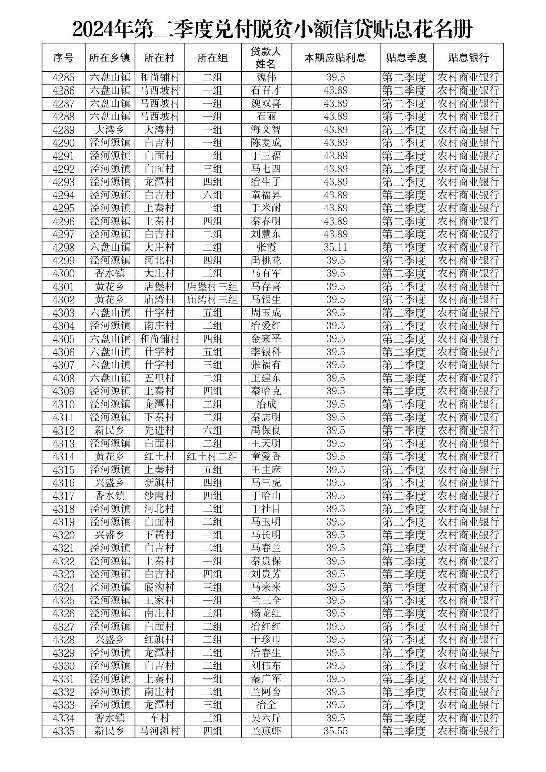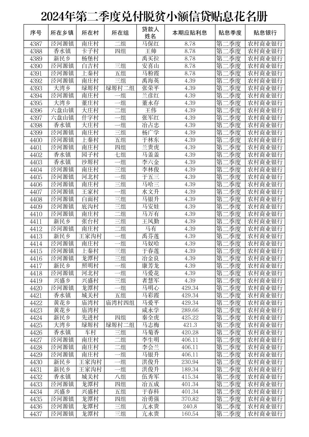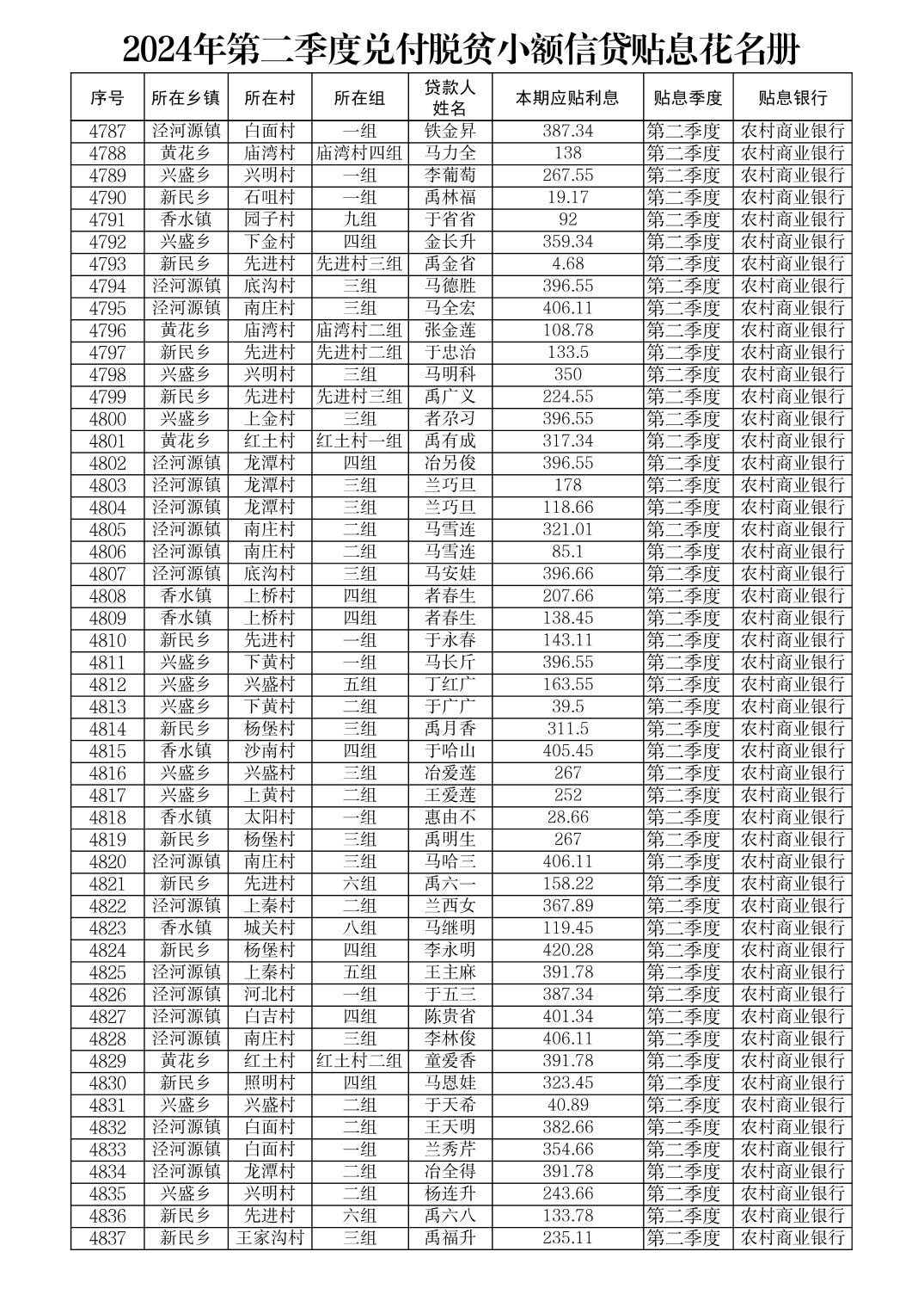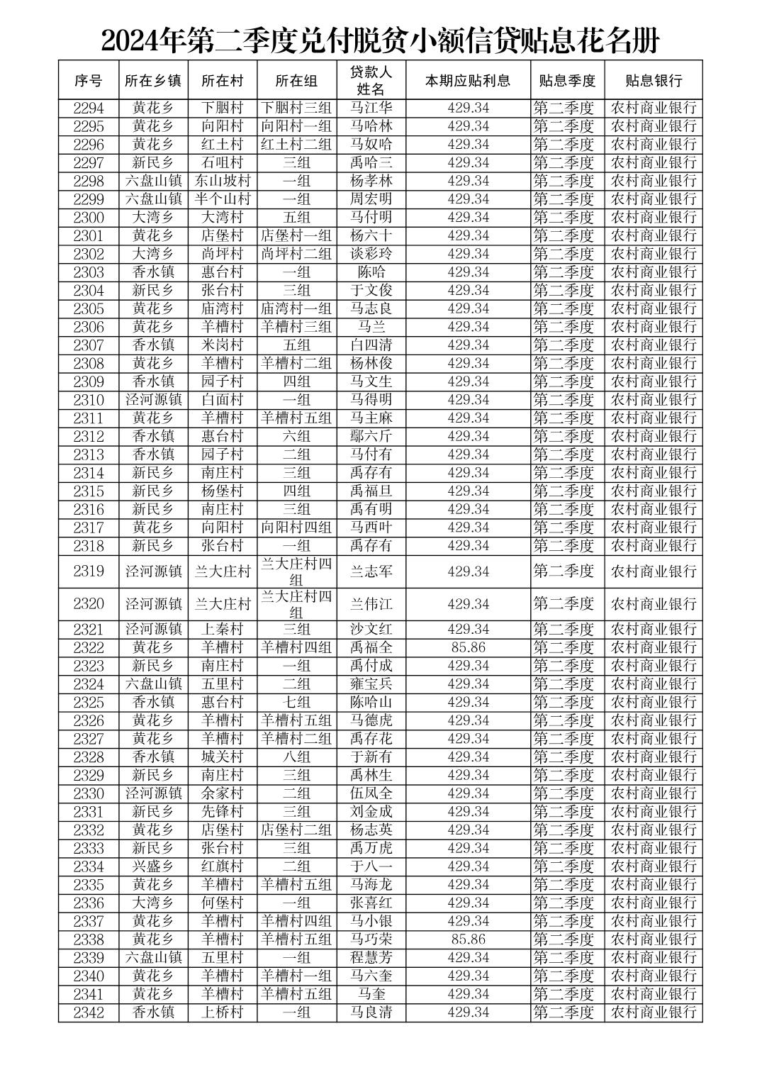 附件:2024年第二季度兑付脱贫小额信贷贴息花名册