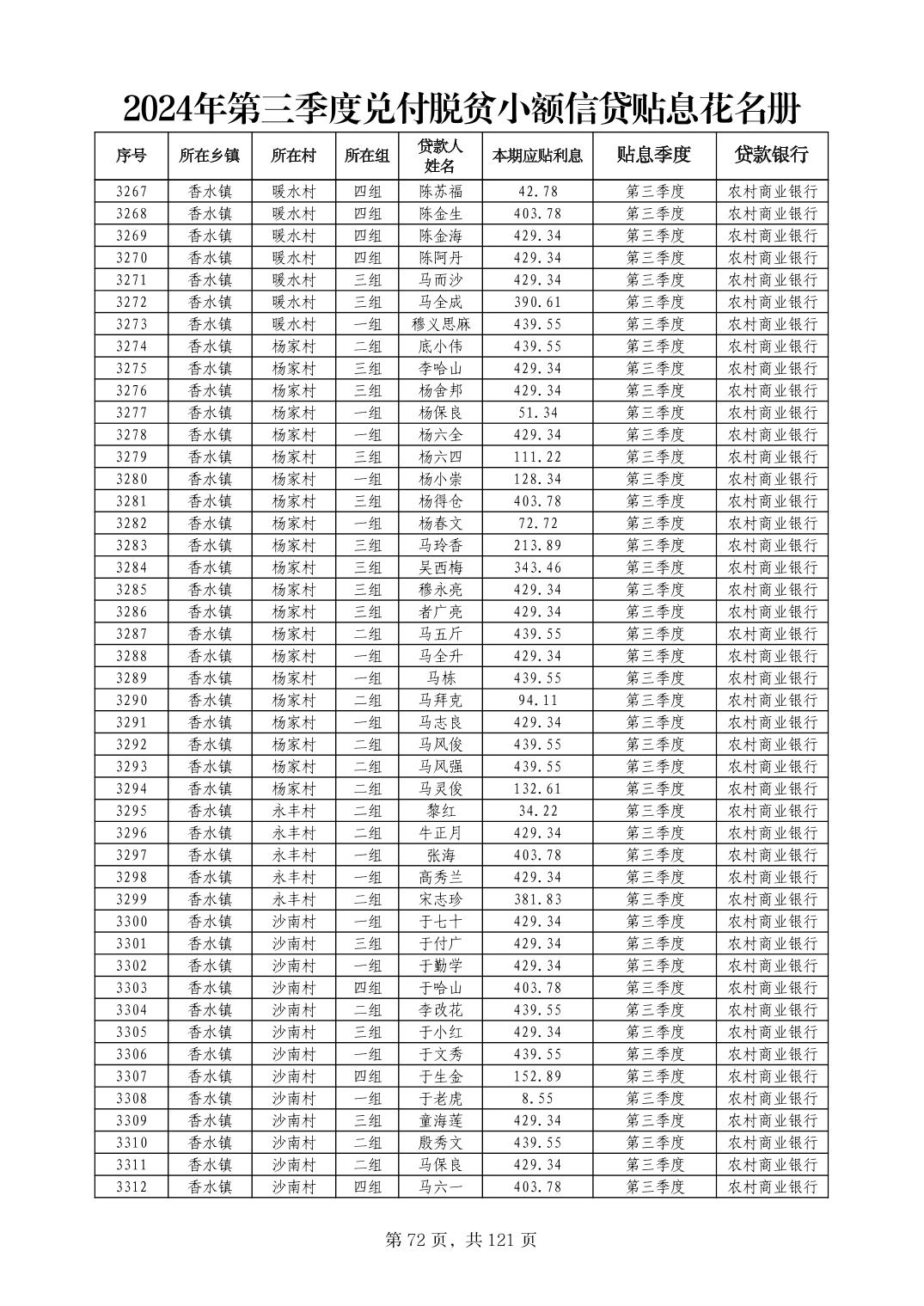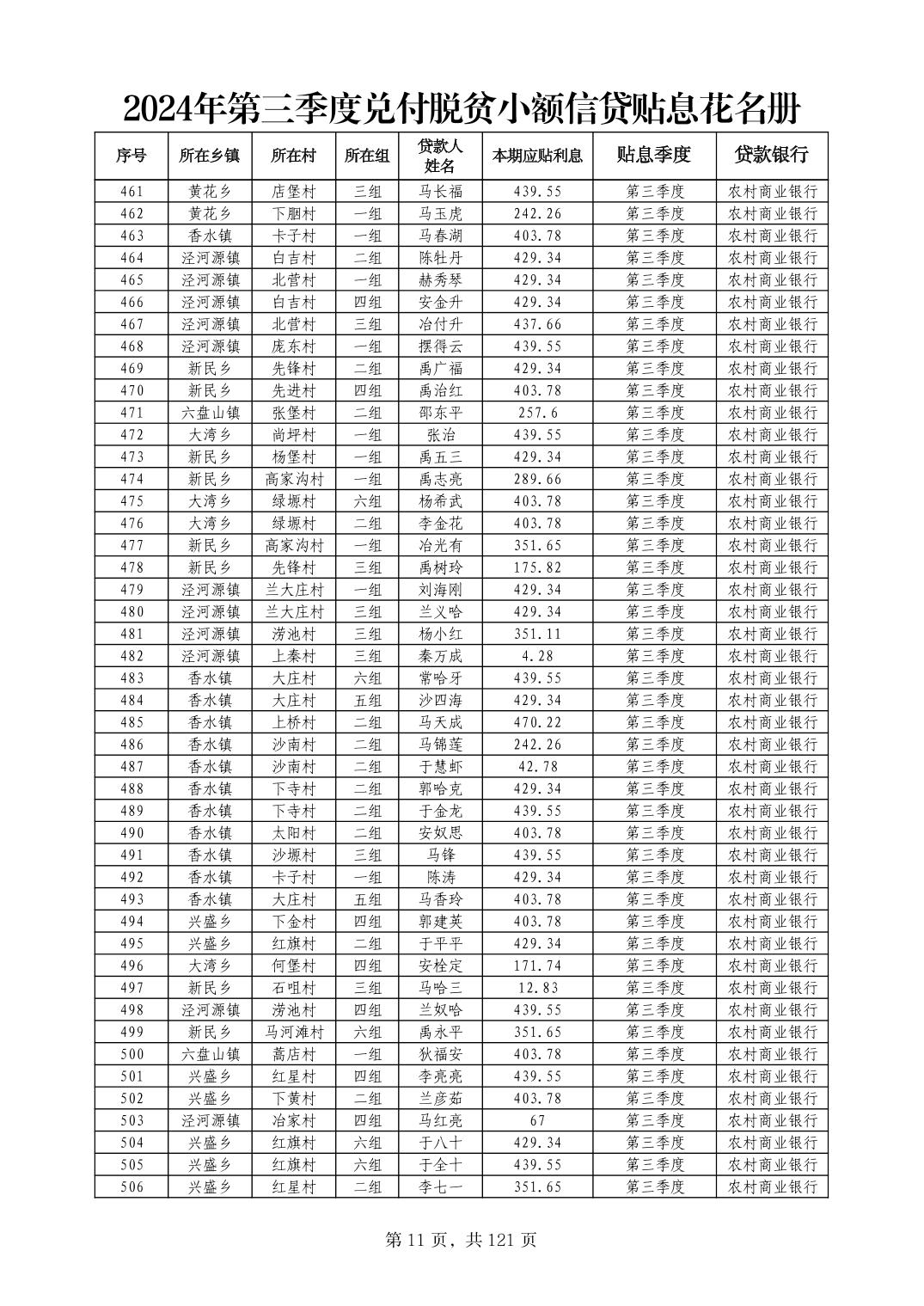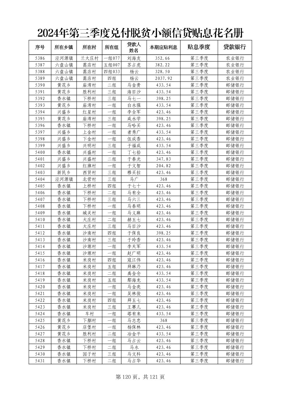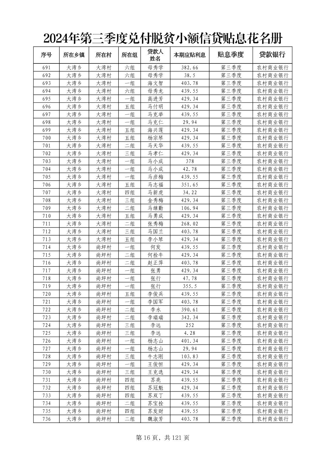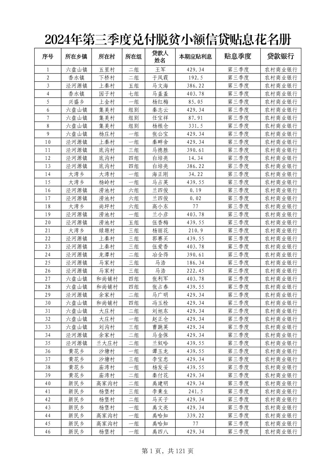 附件:2024年第三季度兑付脱贫小额信贷贴息花名册
