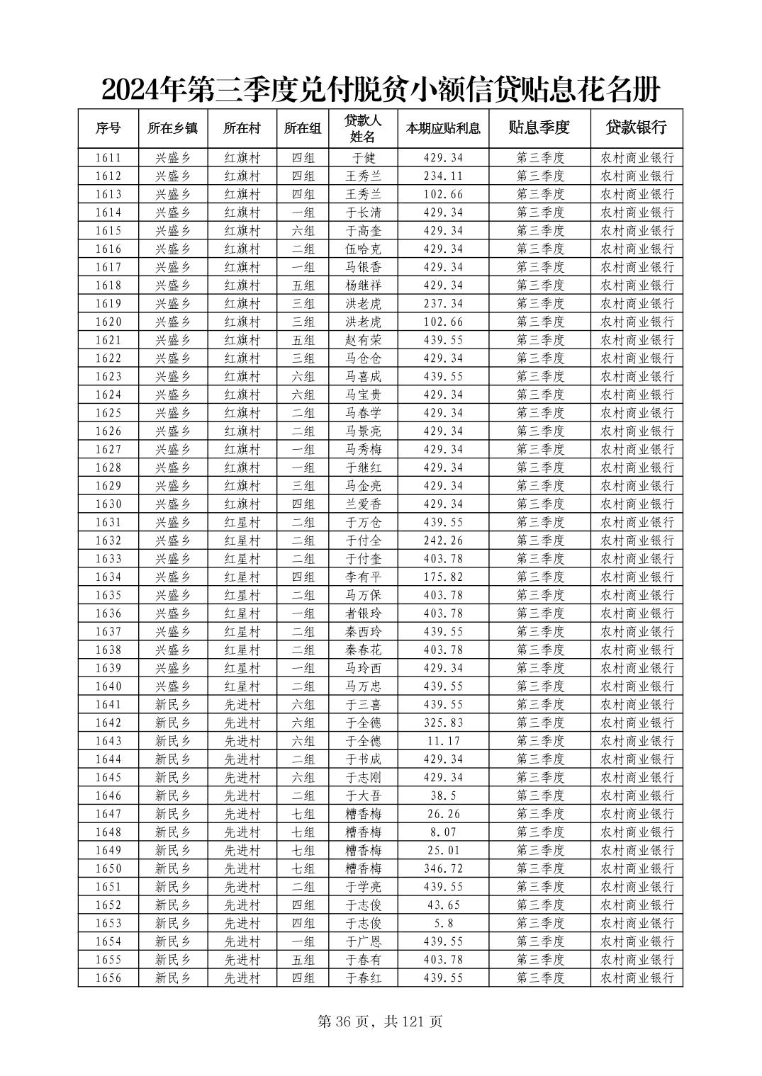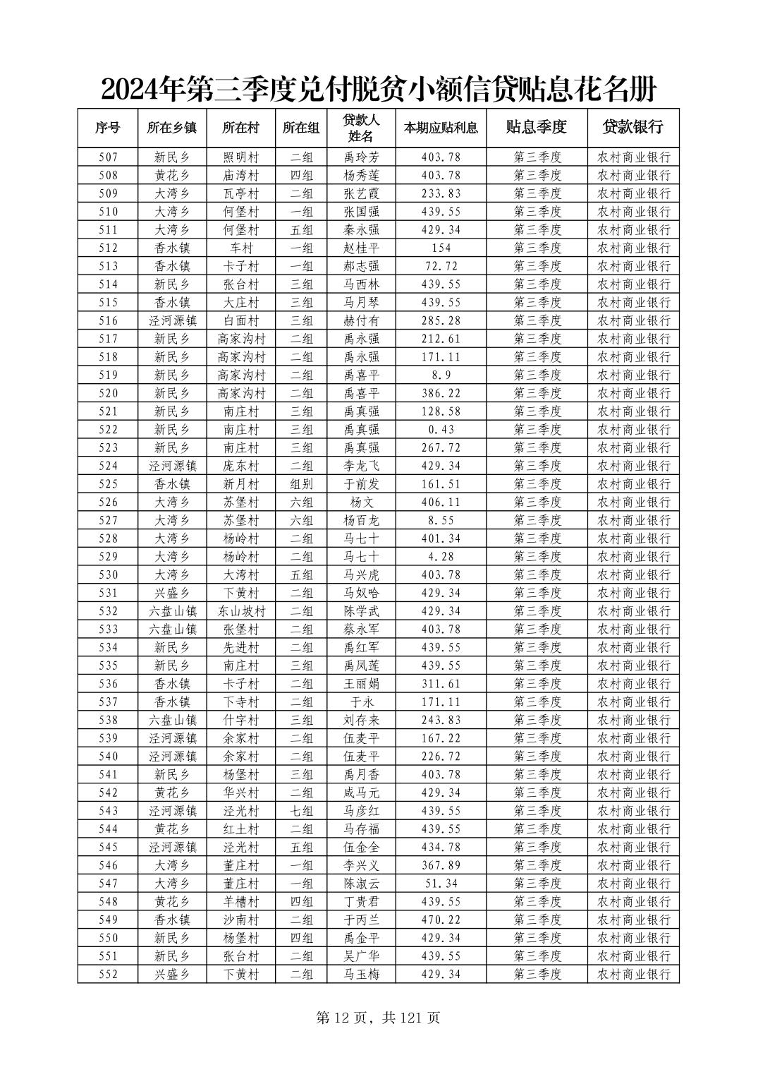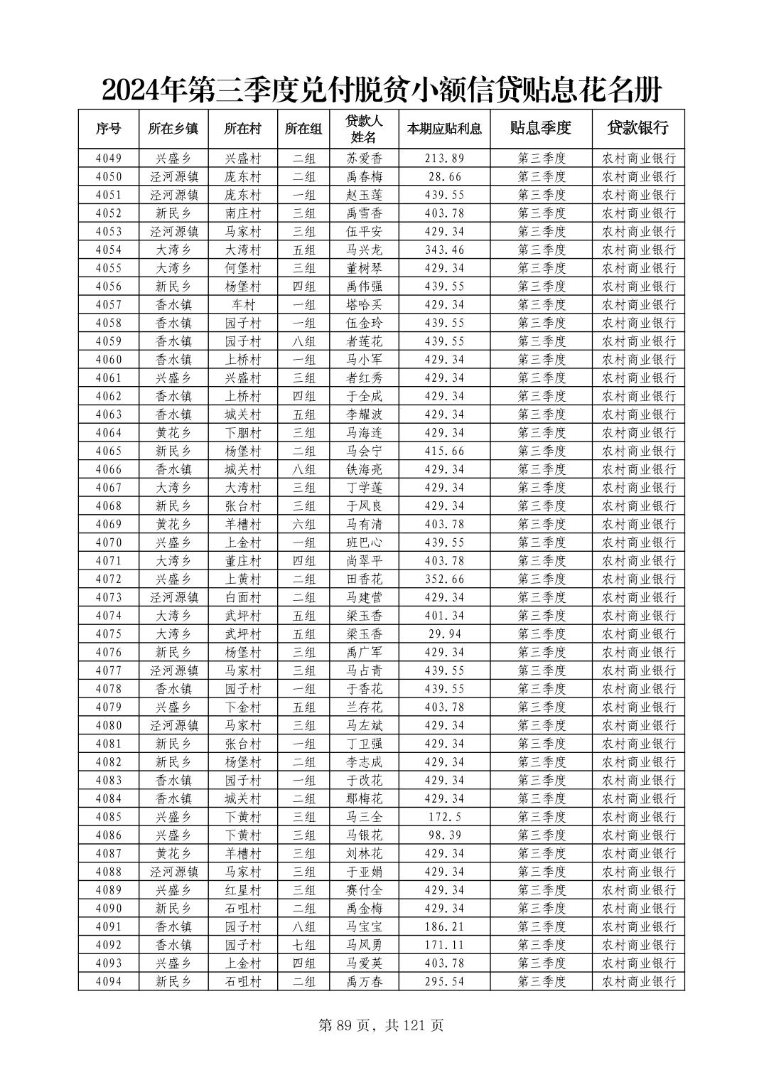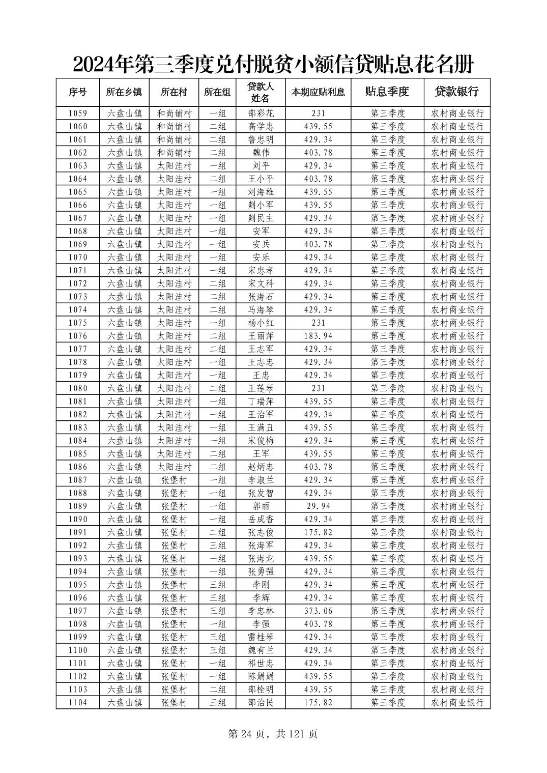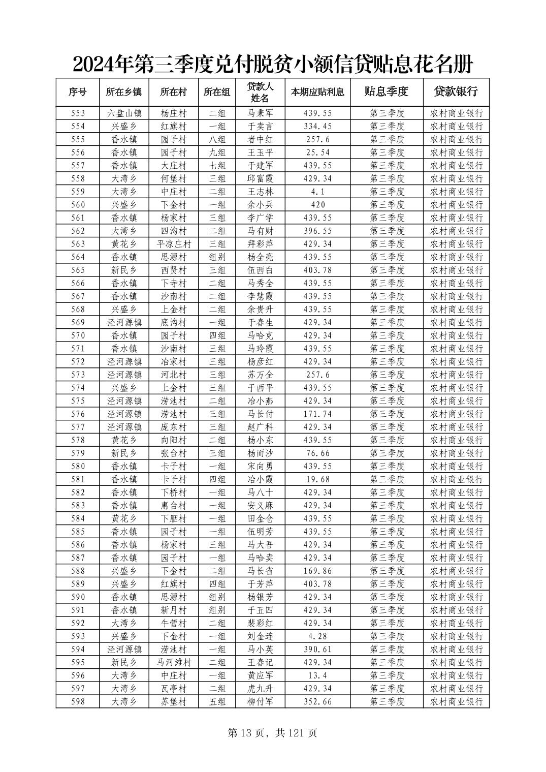 附件:2024年第三季度兑付脱贫小额信贷贴息花名册