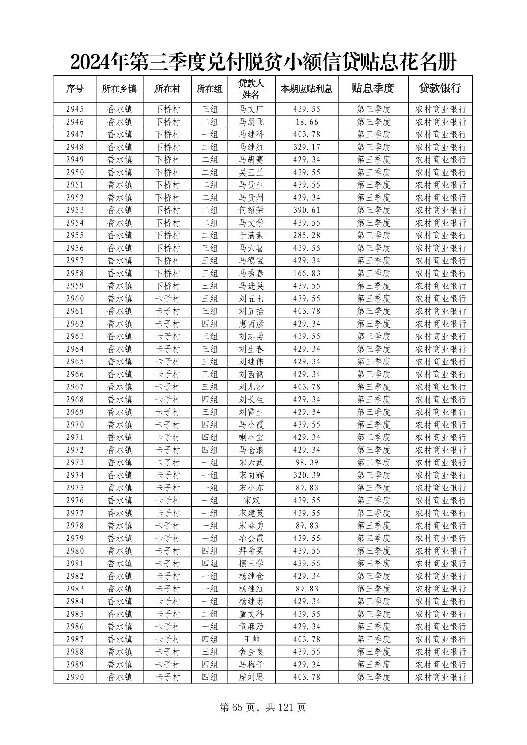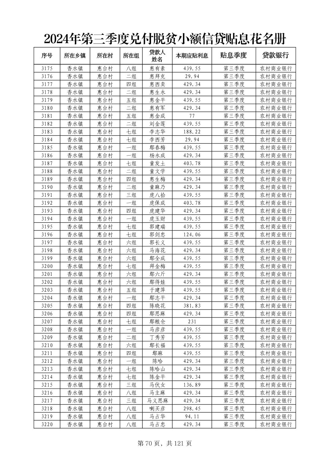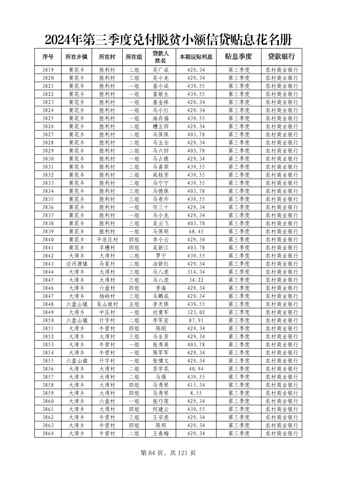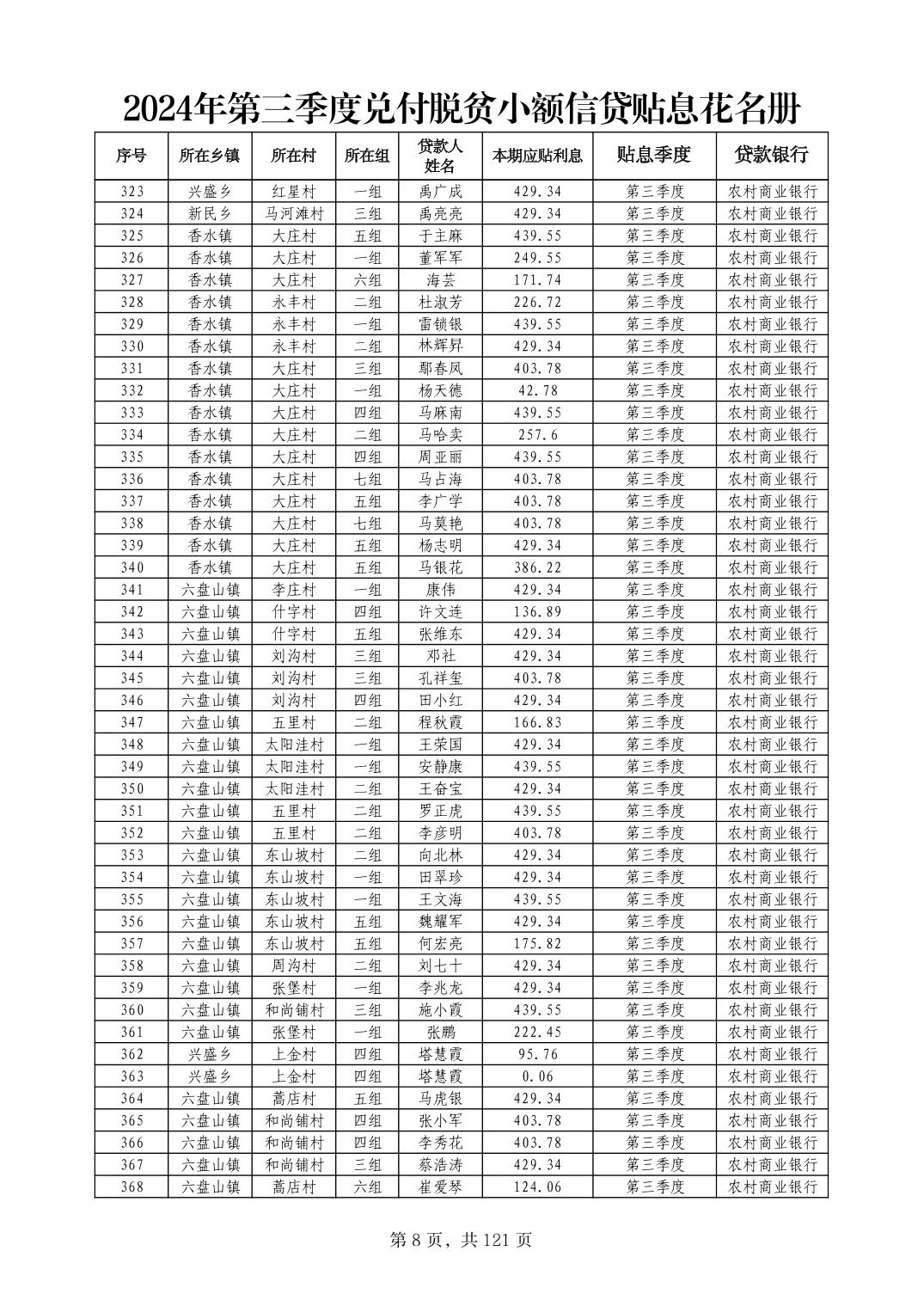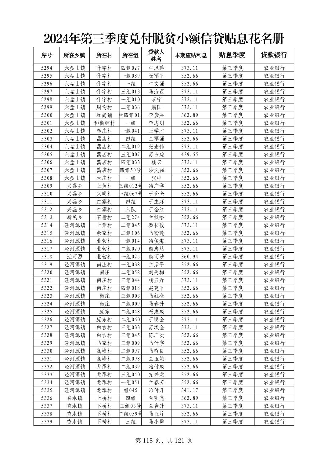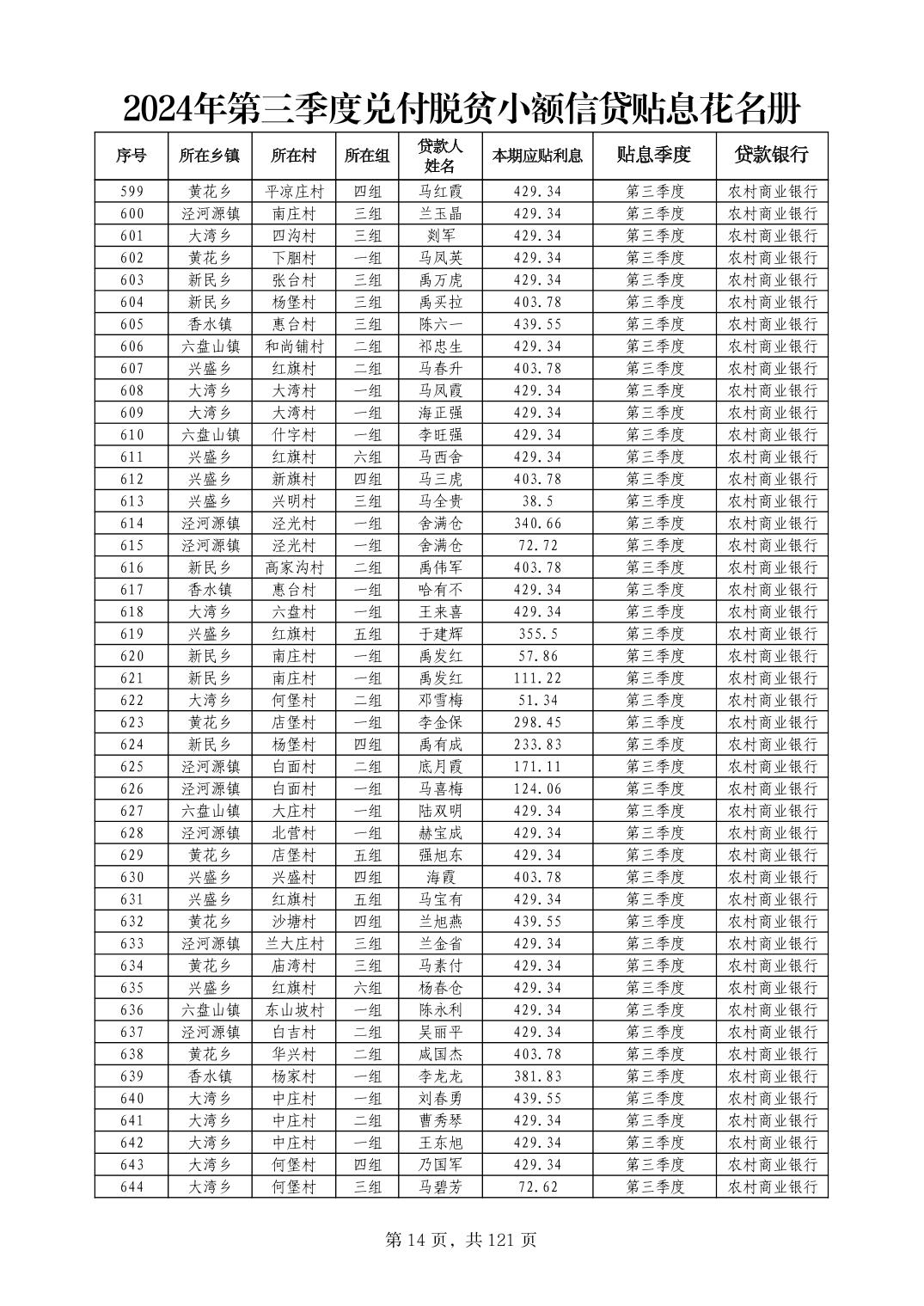 附件:2024年第三季度兑付脱贫小额信贷贴息花名册