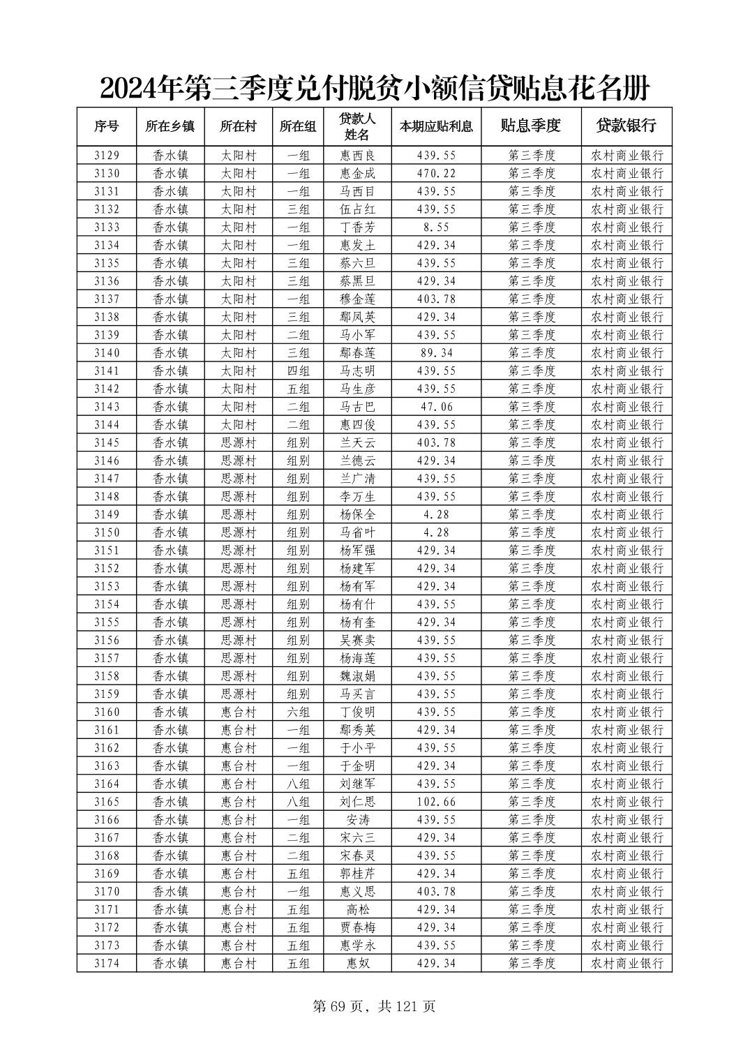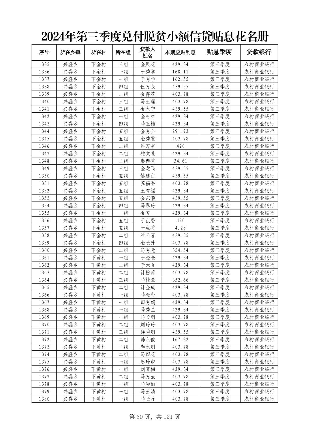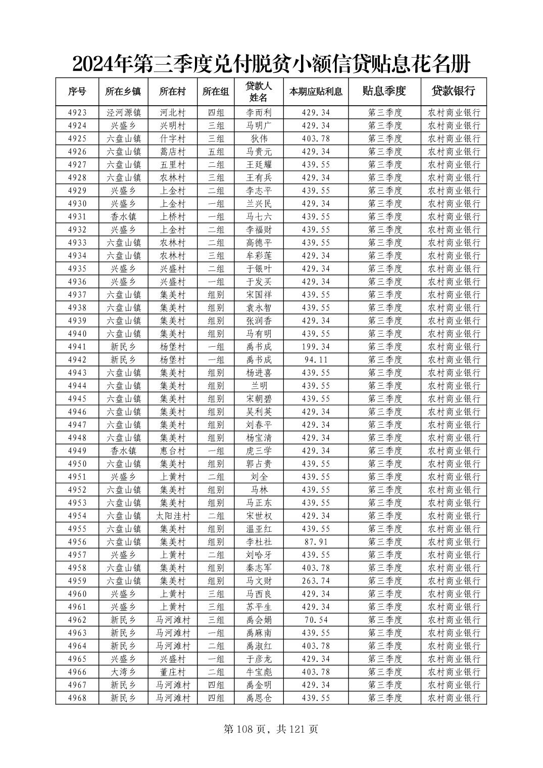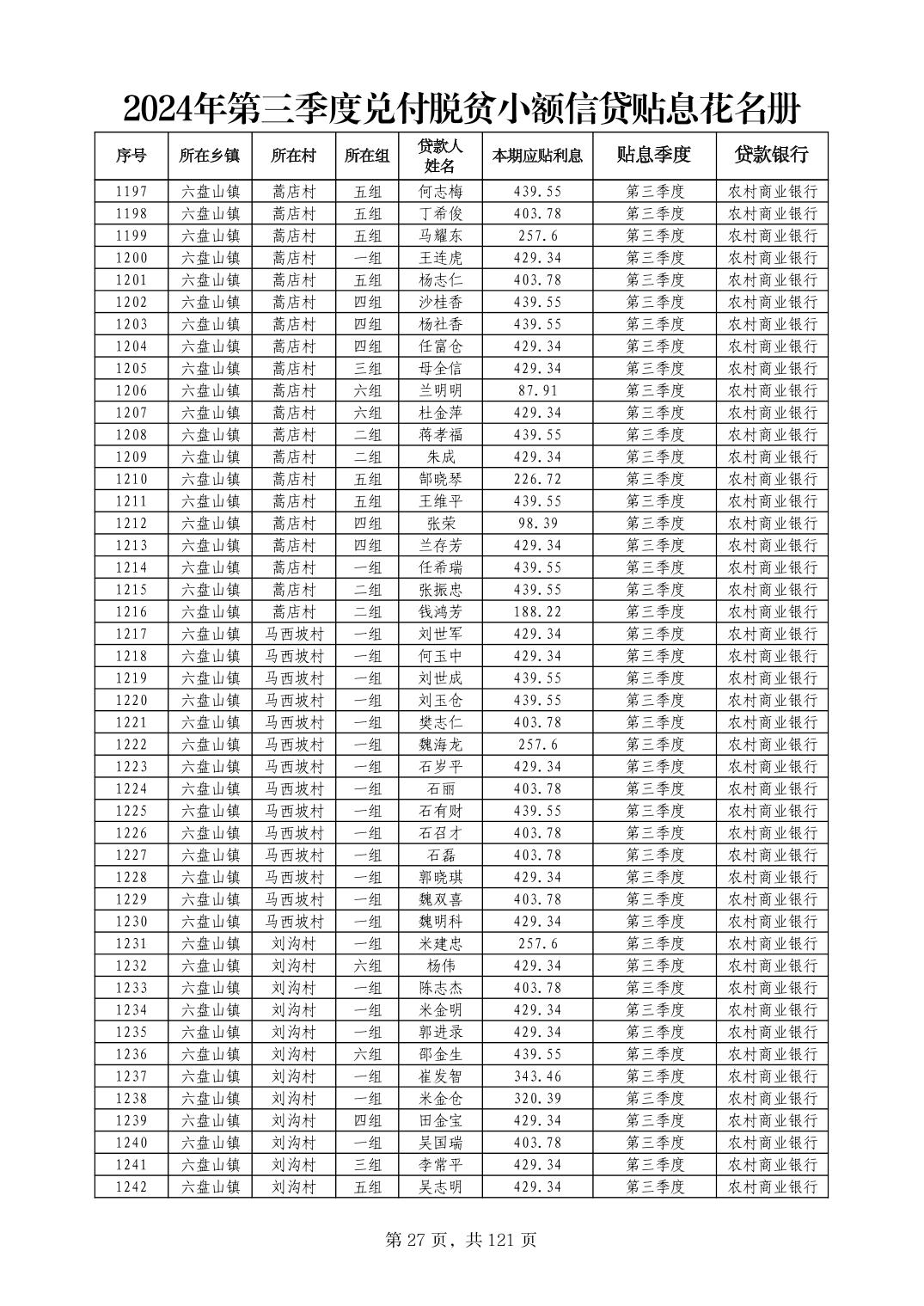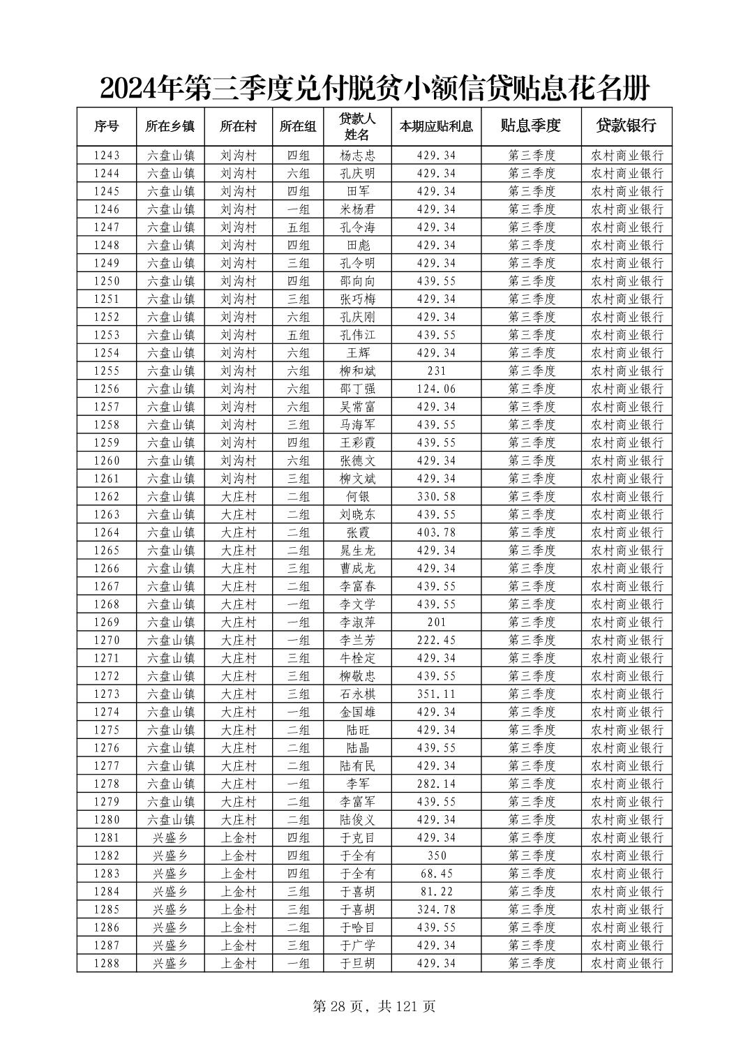 附件:2024年第三季度兑付脱贫小额信贷贴息花名册