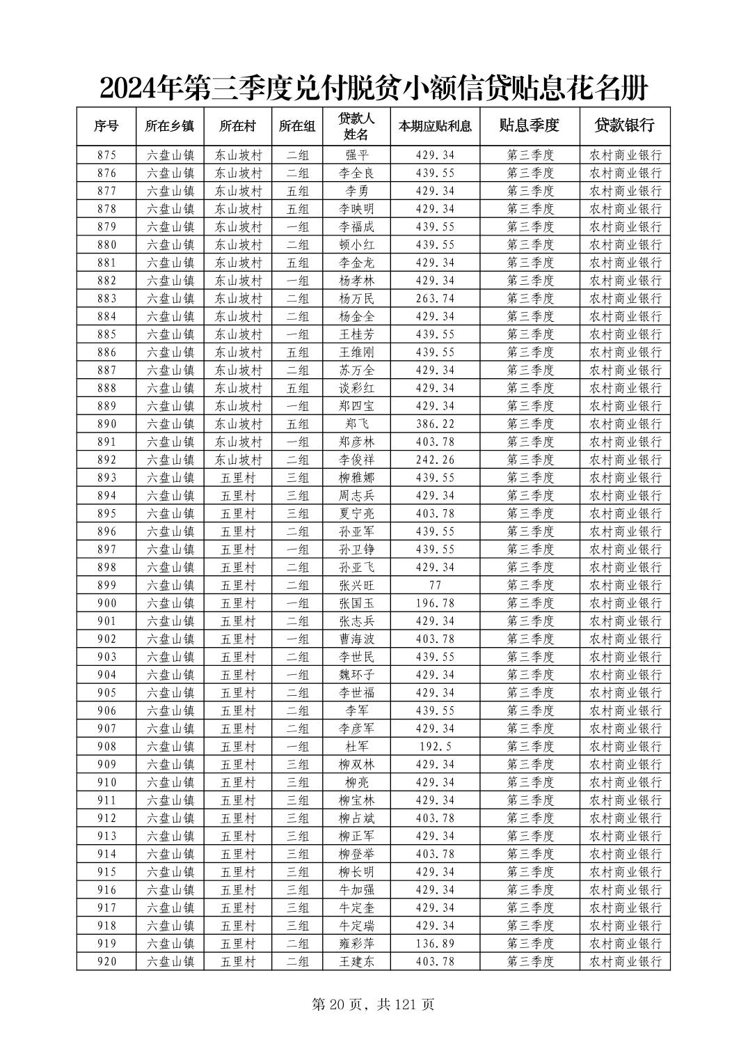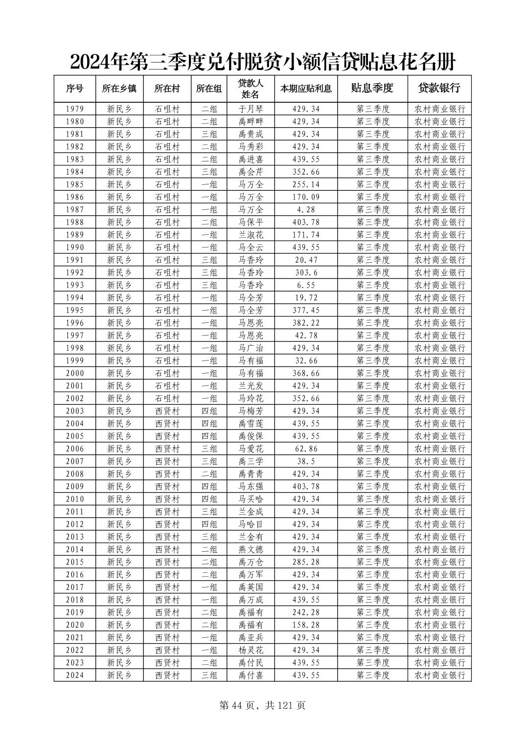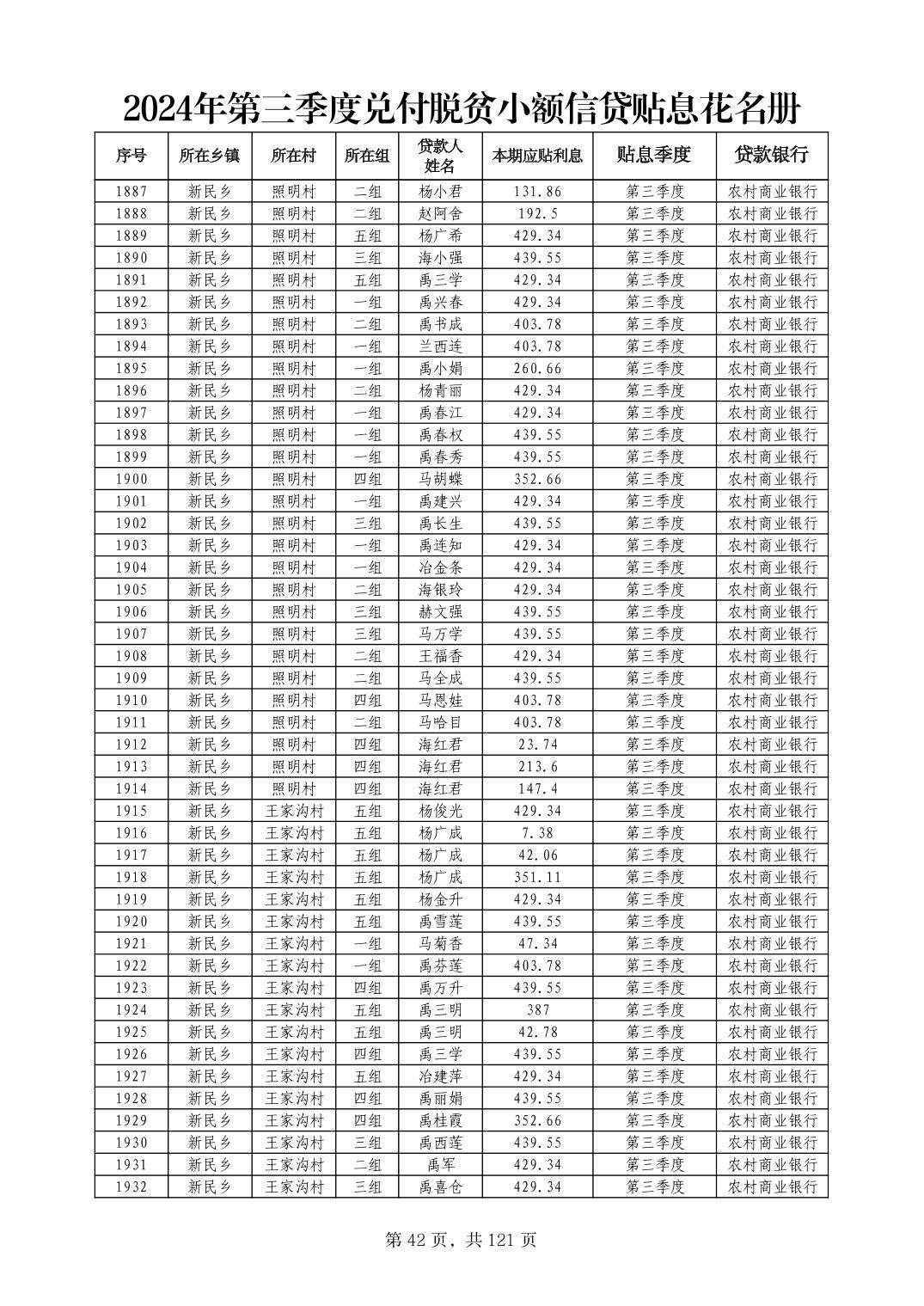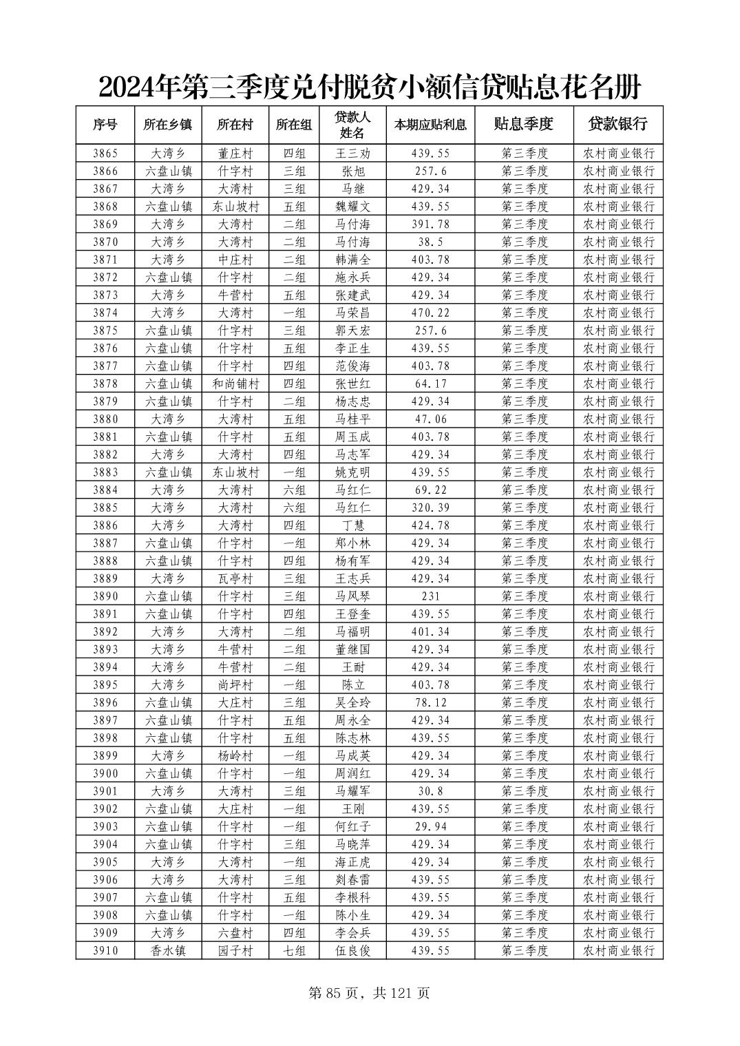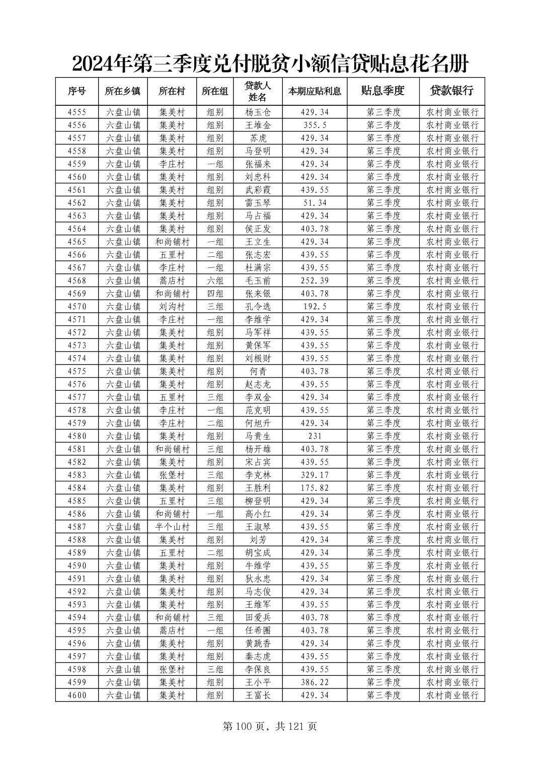 附件:2024年第三季度兑付脱贫小额信贷贴息花名册