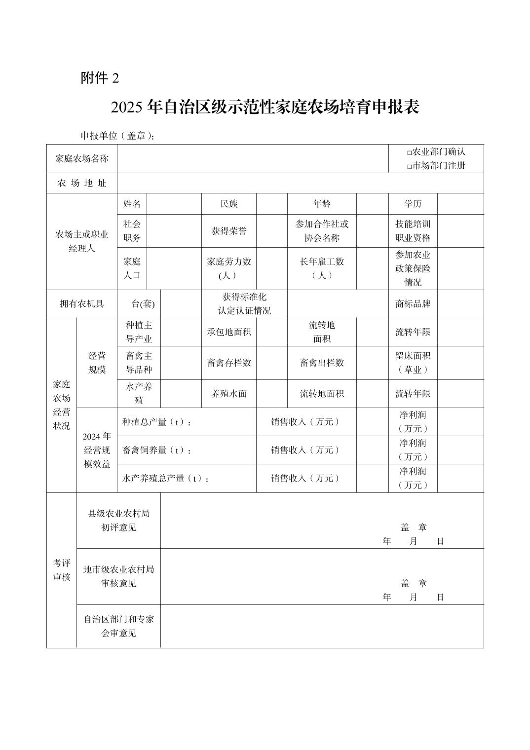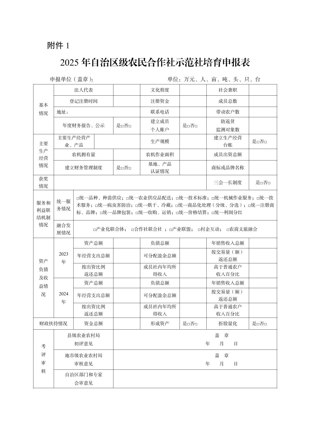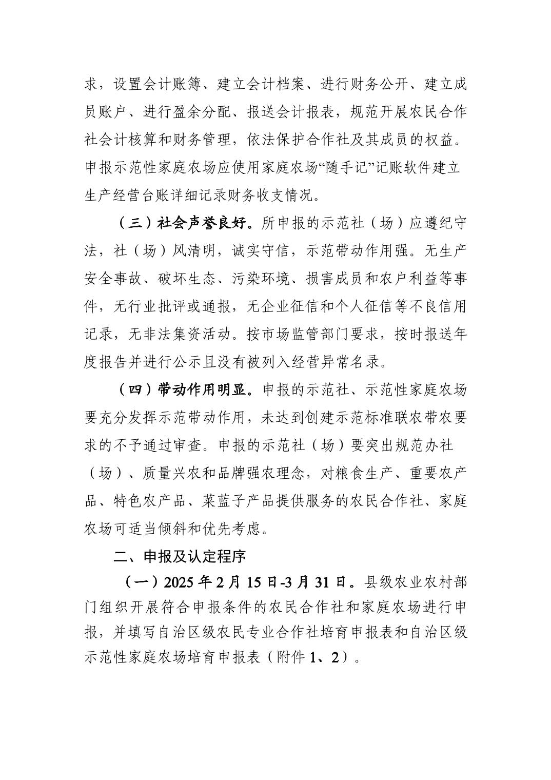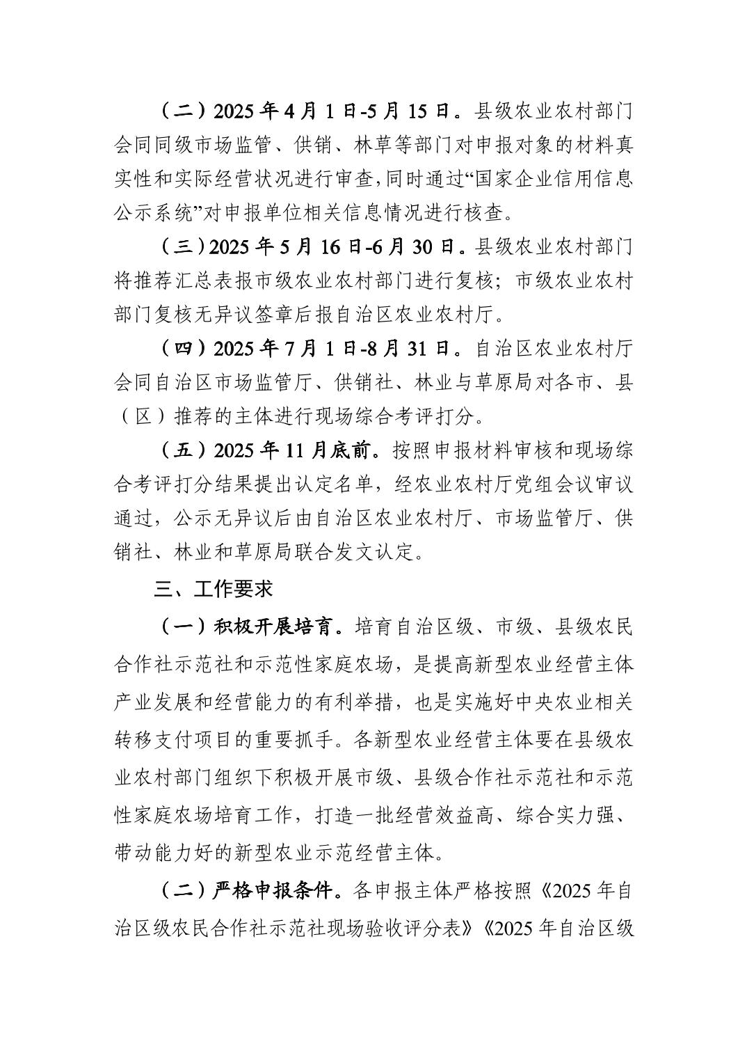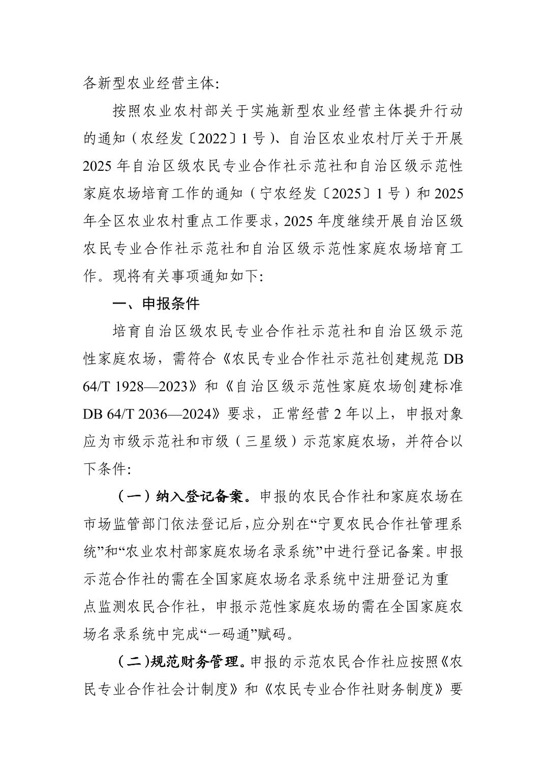 关于开展2025年自治区级农民专业合作社示范社和自治区级示范性家庭农场培育工作的通知