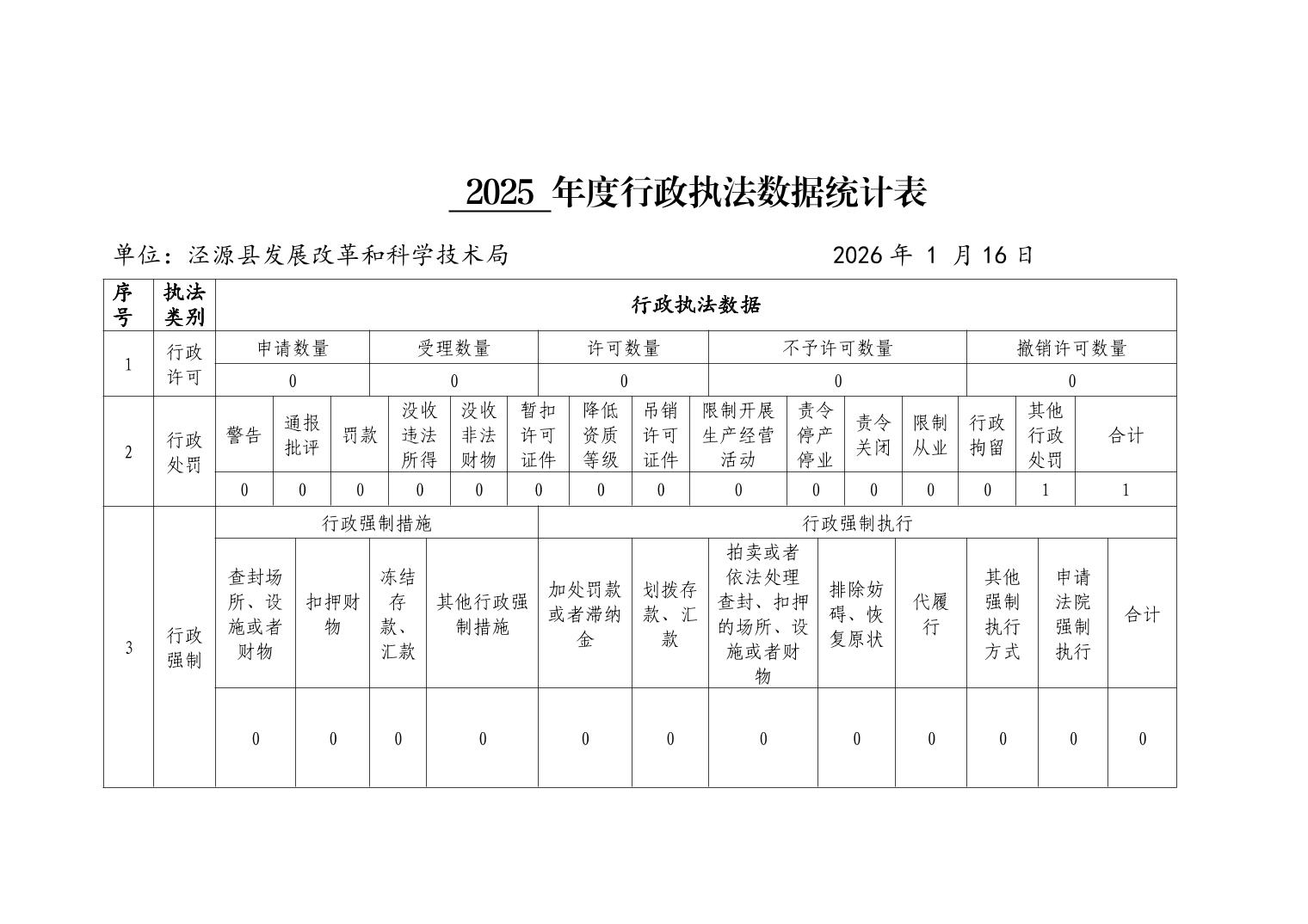 2025年度行政执法数据统计表