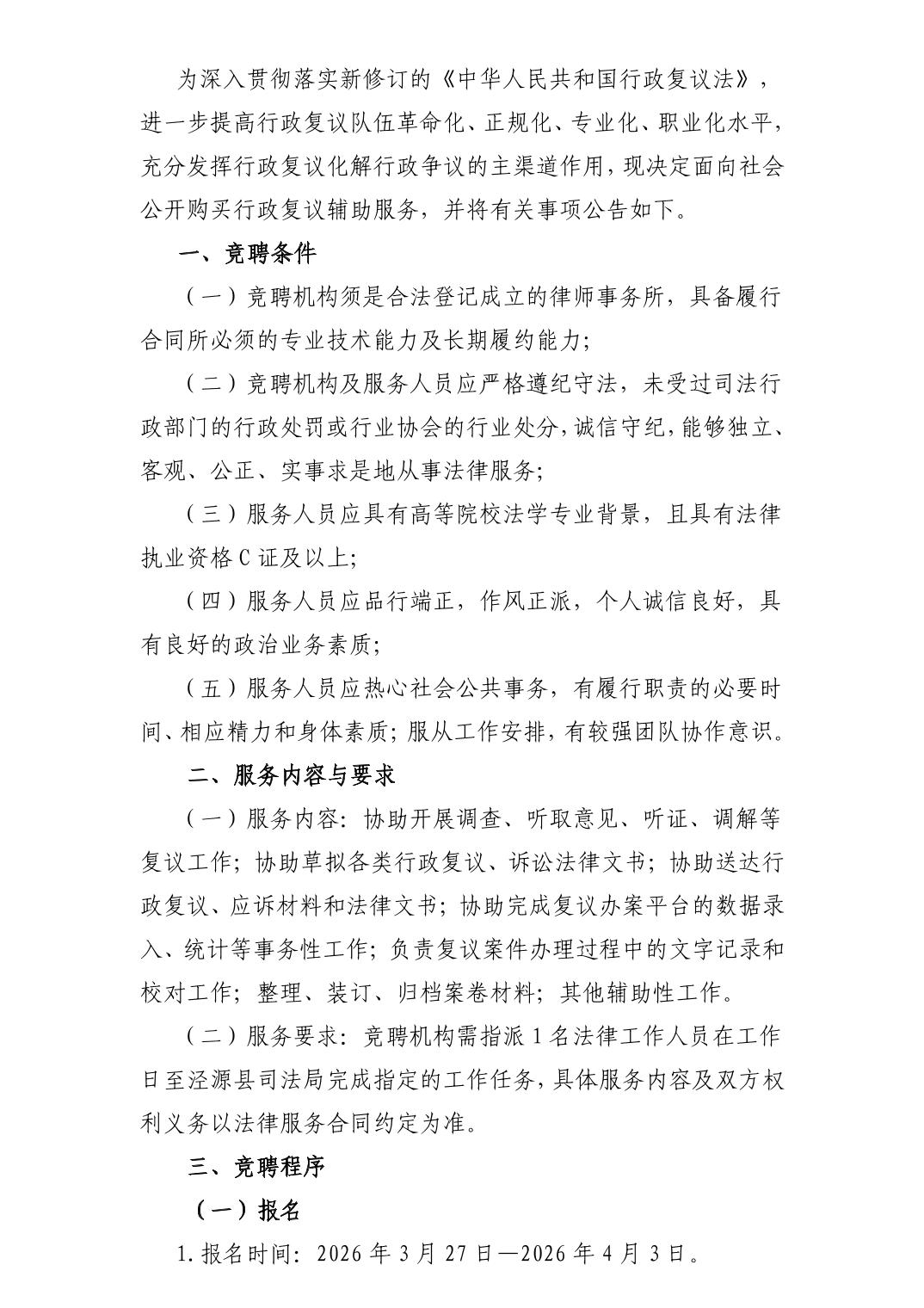 泾源县司法局关于公开购买行政复议辅助服务的公告