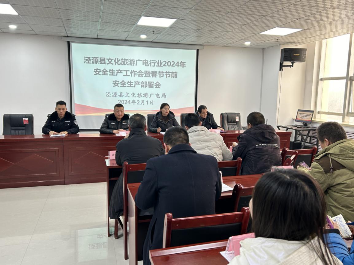在春节来临之际,为贯彻落实全国、区、市、县有关会议精神,保障节日期间文旅广电市场安全平稳有序运行,2024年2月1日上午,泾源县文化旅游广电局联合泾源县香水派出所组织召开2024年安全生产工作会暨春节节前安全生产部署会,县文化旅游广电局副局长吴桂花主持会议,全县各景区、星级宾馆、文化娱乐场所、校外培训机构、旅行社、电影院、网吧等企业负责人参加了会议。