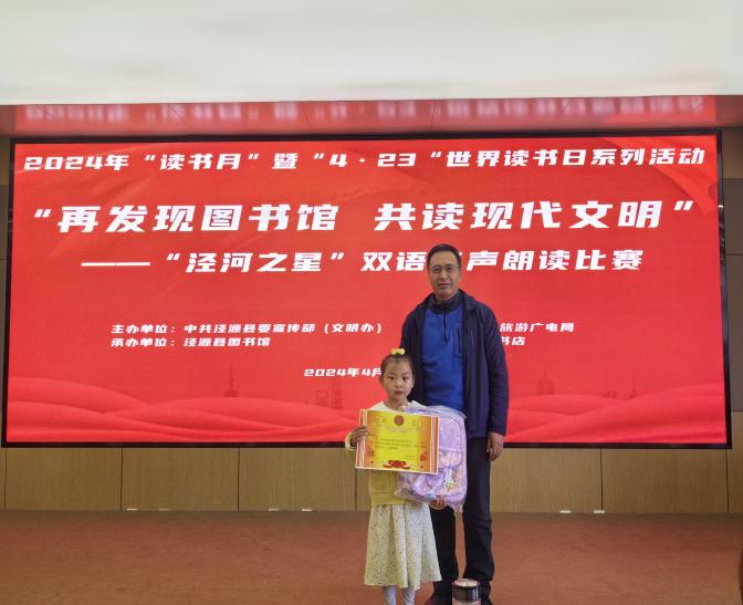 活动中,一群身着南宋代战袍、精神抖擞的武将表演的《精忠报国》情景剧,大声朗读岳飞的《满江红.怒发冲冠》拉开了“泾河之星”双语有声朗读比赛的帷幕。孩子们以配乐形式演绎诗歌之美,朗读了英语《Parent-Child Reading》亲子共读、《中国人·不跪的人》、《七律长征》、《少年中国说》等内容,孩子们撷取经典,汇通中西,自信满满,语音优美,抑扬顿挫,声情并茂的朗诵,展现了我县青少年朝气蓬勃的精神风貌,孩子们深情的朗诵赢得了现场阵阵掌声,充分展现了名篇之盛、朗诵之美,传承了中华优秀传统文化,彰显了中华民族自信。