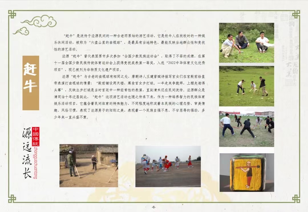 泾源县在铸牢中华民族共同体意识主线中把握“四对关系”,注重中华优秀传统文化传承发展、红色基因传承,积极开展文化浸润行动,组织县内文化工作者深耕县域“古色文化、特色文化、红色文化、绿色文化”四类“四色”文化,深挖县域厚重历史,厚植县域文化底蕴,近期,以凸显“泾源旅游小故事”主题内容的《泾源文化之古色文化》《泾源文化之特色文化》《泾源文化之红色文化》《绿色文化之牛文化》出炉。