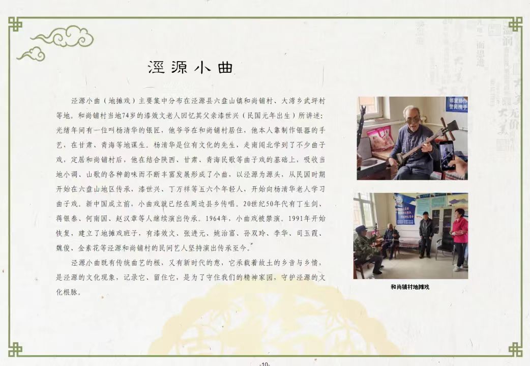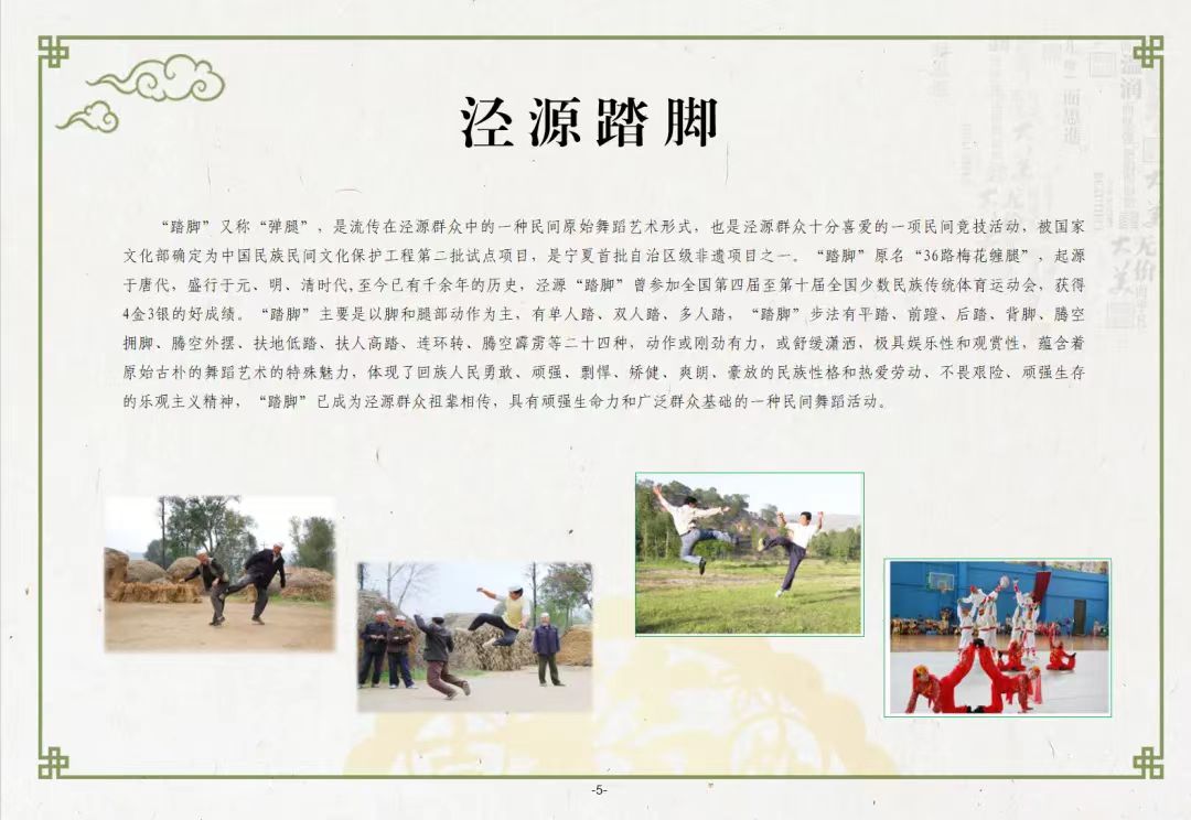 《特色文化》中编选了五朵梅、柳毅传书、踏脚、赶牛、剪纸文化、曲艺文化、福文化等九部分内容。其中,“福”文化以习近平总书记关于民族团结的经典论述为切入,展现“福”文化的泾源印记,传递“福”文化的泾源声音。
