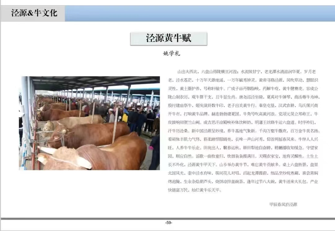 《绿色文化》中编选了牛的寻根、溯源、种类、图腾、地位、农耕、民俗、文化、传说以及泾源牛文化等14篇若干章节内容,以历史资料和图片综述牛所走过的漫漫长路和灿烂历程,解析牛对人类作出的巨大贡献,体现泾源凝聚力量,积极践行习近平总书记号召发扬孺子牛、拓荒牛、老黄牛精神的工作姿态和精神状态,也体现泾源作为养牛大县“牛文化”的精神情趣和泾源风骨,彰显泾源气质。