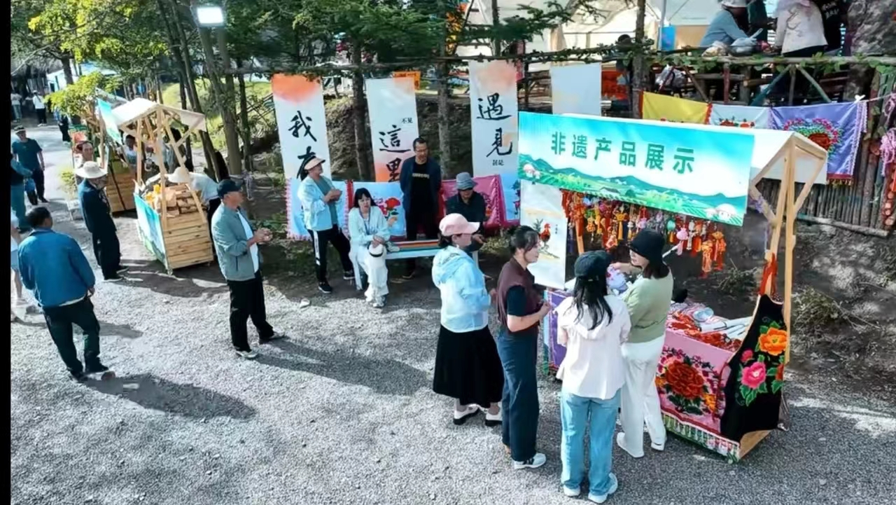 在米岗村农文旅融合基地,全镇18个村和相关企业设立了农特产品、文创产品、非遗等多个展区,开展了特色美食品尝,文化体验、黄牛肉烧烤等活动,吸引不少群众驻足体验。