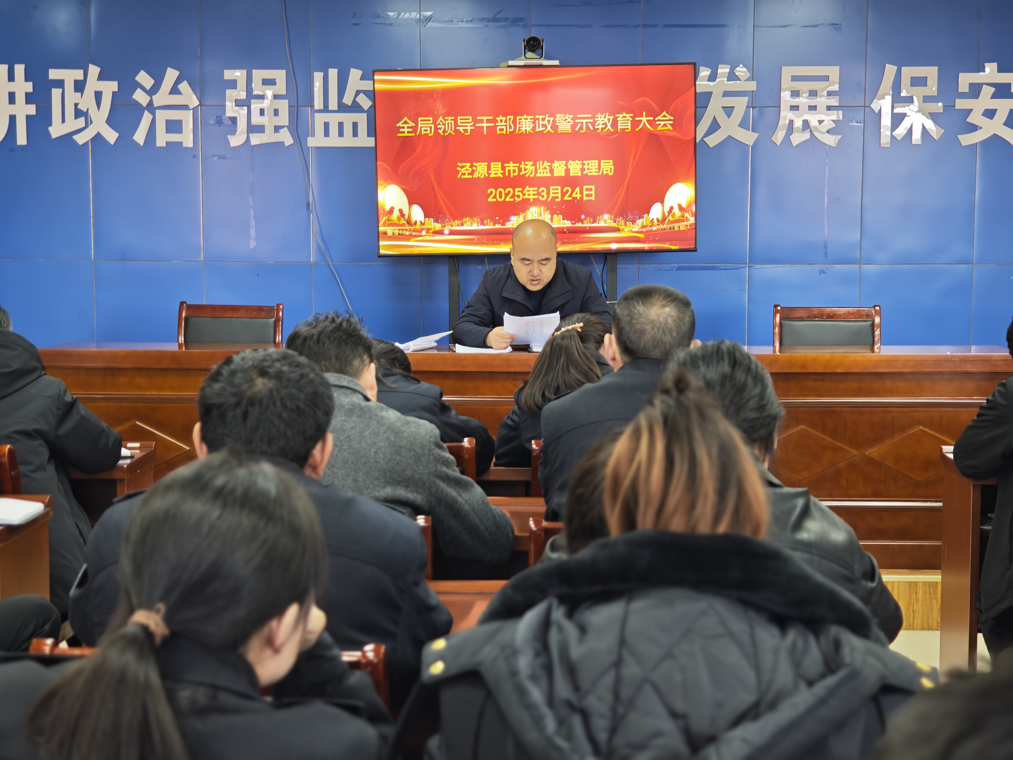为深化党风廉政教育,筑牢市场监管队伍廉洁防线,3月24日,泾源县市场监督管理局召开全局领导干部廉政警示教育大会,局党组班子成员,全体干部职工参加了会议。会议由局党组书记、局长者晓勇同志主持。
