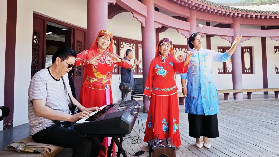 26日,采风团沿冶家村、老龙潭、六盘山森林公园、轻工产业园区、王洛宾文化园、杨岭村史馆,萧关遗址等路线深入探访。清晨的六盘山云雾缭绕,艺术家们赏六盘云海、听丛林松涛;老龙潭边,龙文化传说引发创作联想;王洛宾文化园,村民哼唱的“山花儿”小调被即兴记录;萧关遗址的古驿道上,历史烽烟化作旋律构思。途中,泾源蒸鸡的古朴醇香、黄牛肉火锅的热辣滚烫,也让大家在烟火气中感受当地美好韵律。国家非遗“山花儿”传承人张娜手持摄录设备,连称“这里的山水鸟鸣、历史人文,到处都藏着天然乐谱”。
