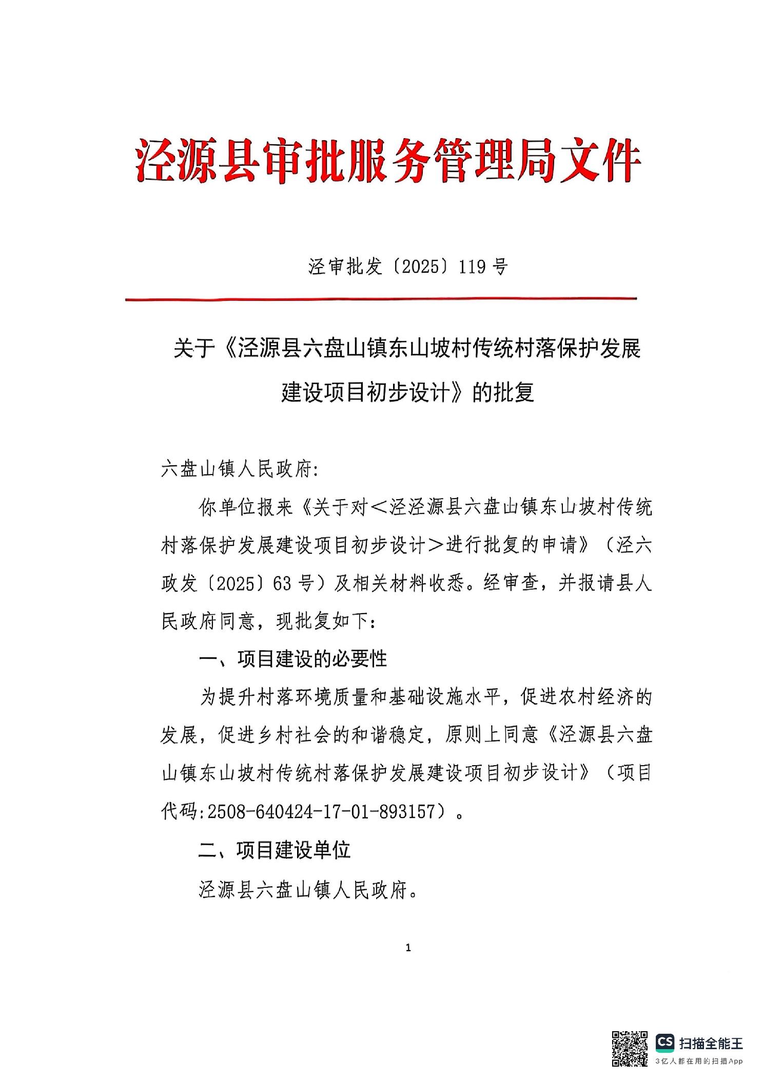 泾源县六盘山镇东山坡村传统村落保护发展建设项目初步设计》的批复