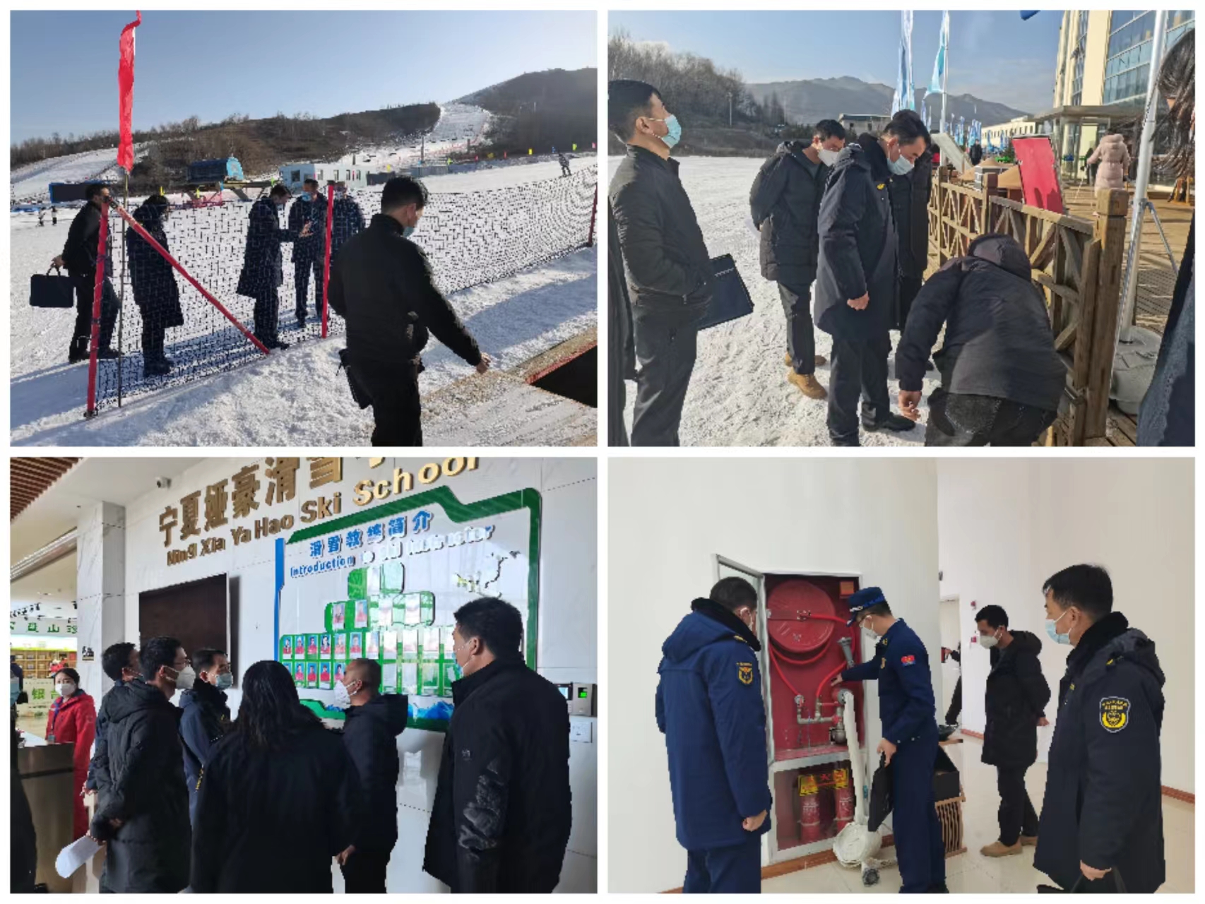 为确保泾源县兴盛滑雪场2022年冬季顺利开业,由县安委办联合县政府办公室、公安局、教育体育局、文化旅游广电局、市场监管局、交通运输局、应急管理局、消防救援大队等8个行业监管部门(单位)和兴盛乡组成评估组,于2022年12月15日下午,对兴盛滑雪场开业前的道路交通、场地维护、设施设备检维修、运输车辆维护、电梯检修、教练资质审核、治安管理、游客服务、消防安全和应急处置等安全工作进行了现场检查评估。
