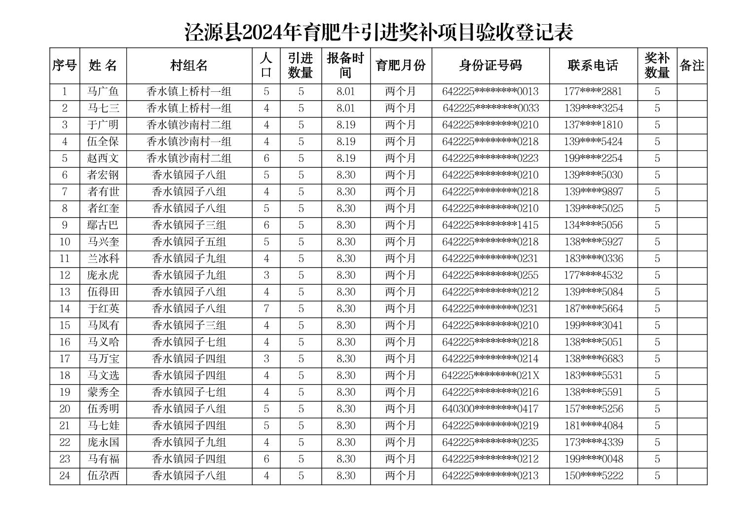 附:泾源县2024年育肥牛引进奖补项目(第三批)验收登记表