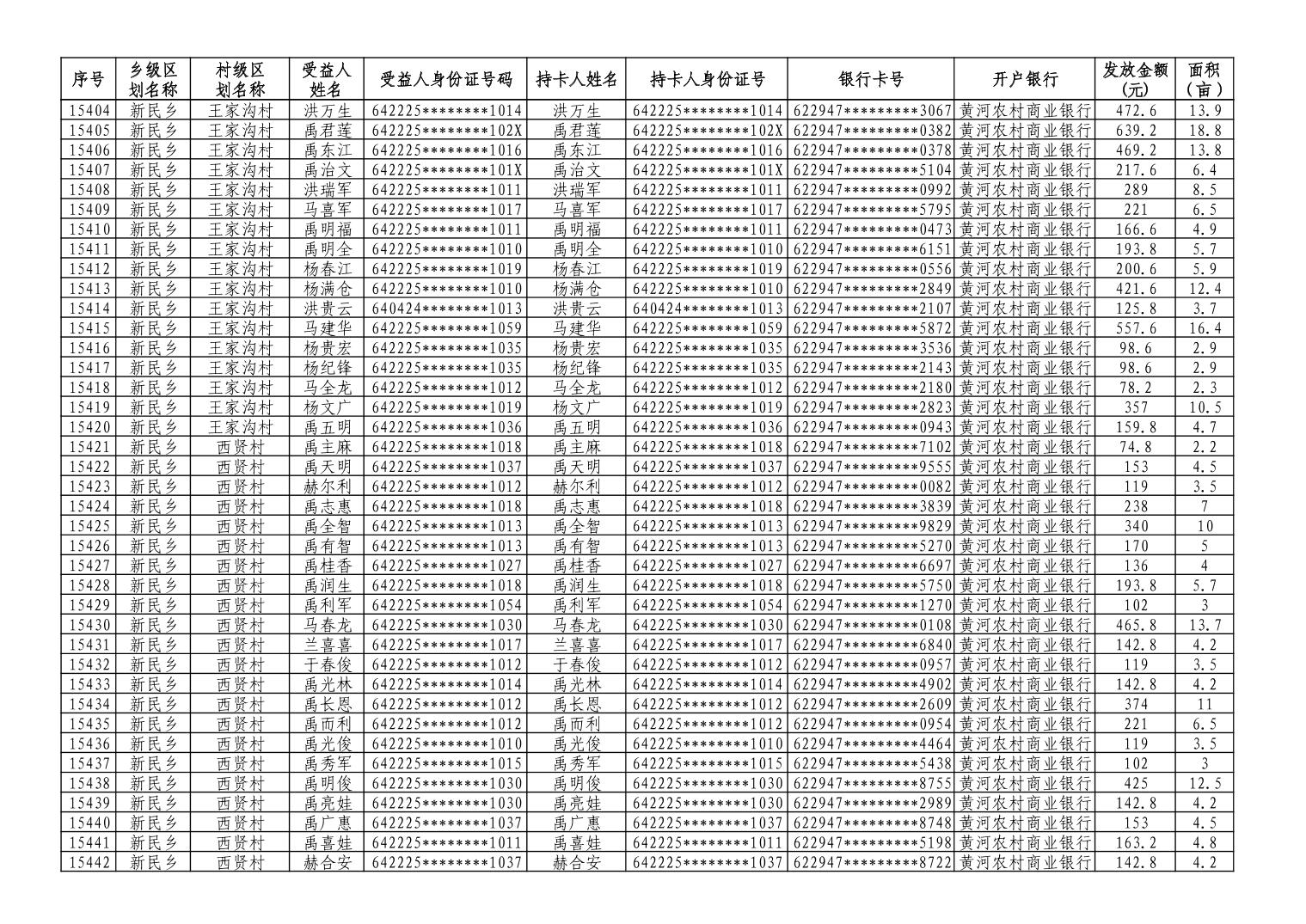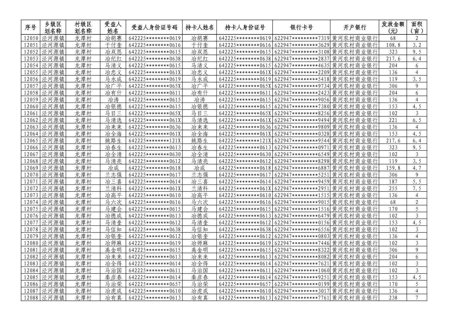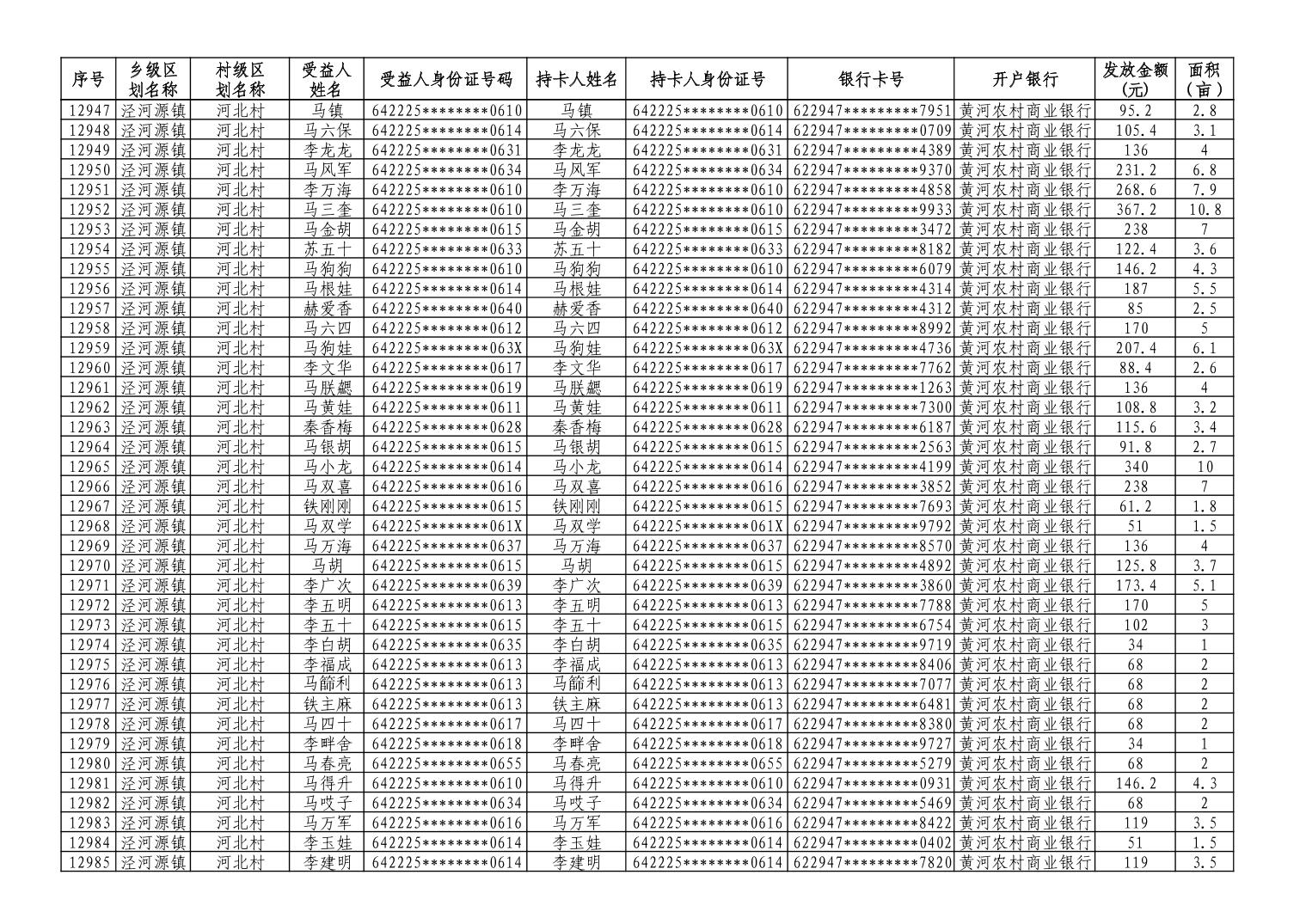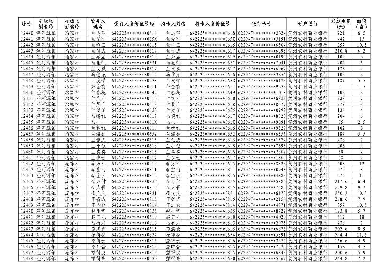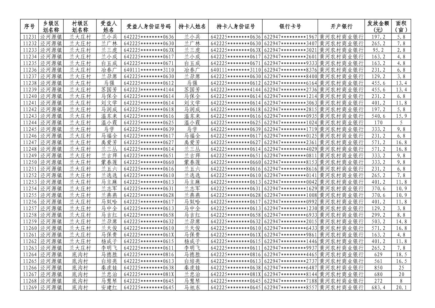 附件:2024年泾源县耕地地力保护补贴项目发放花名册