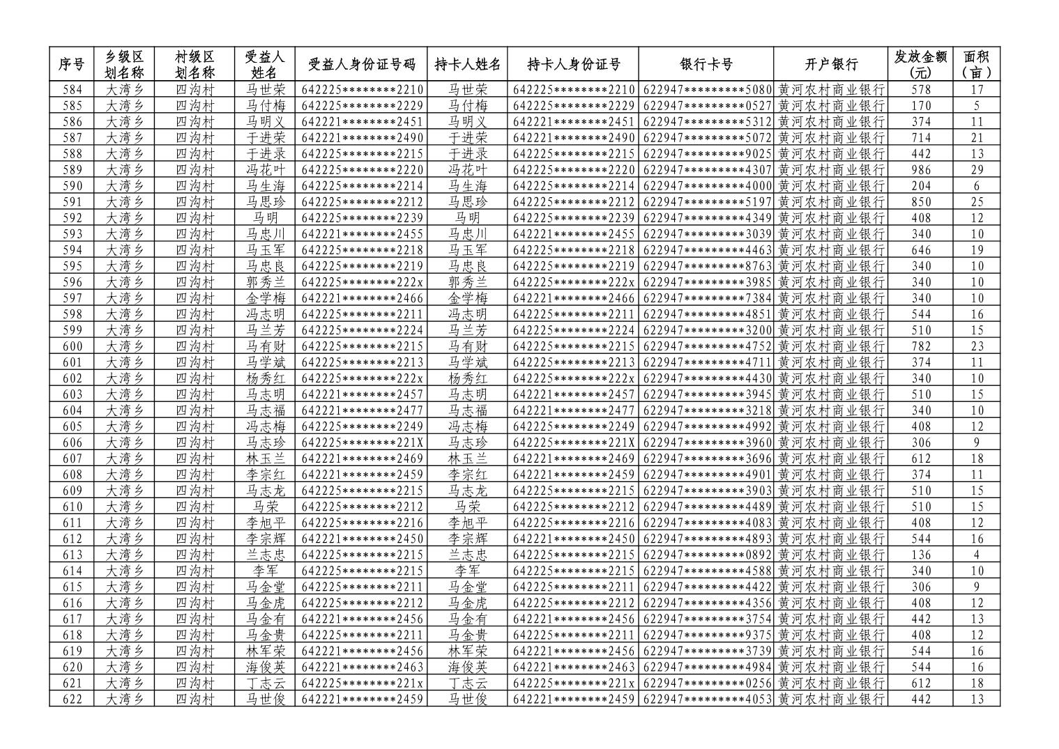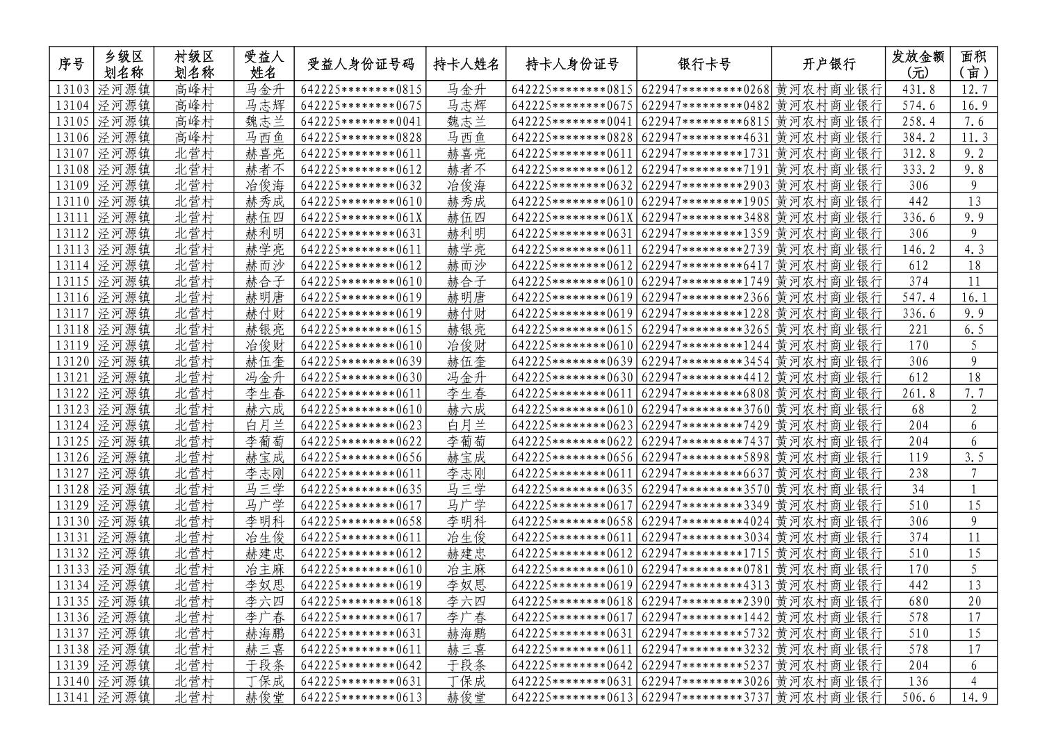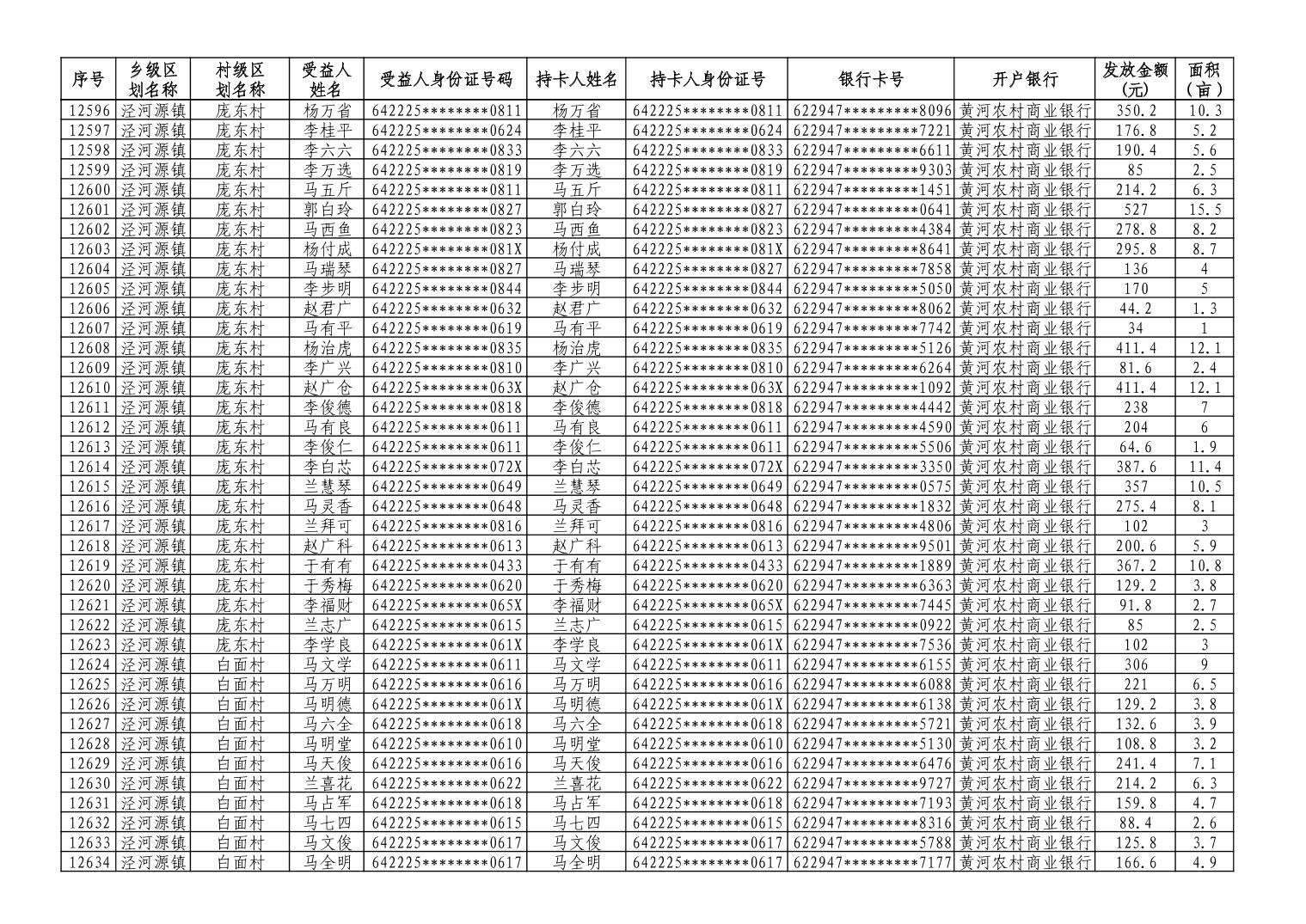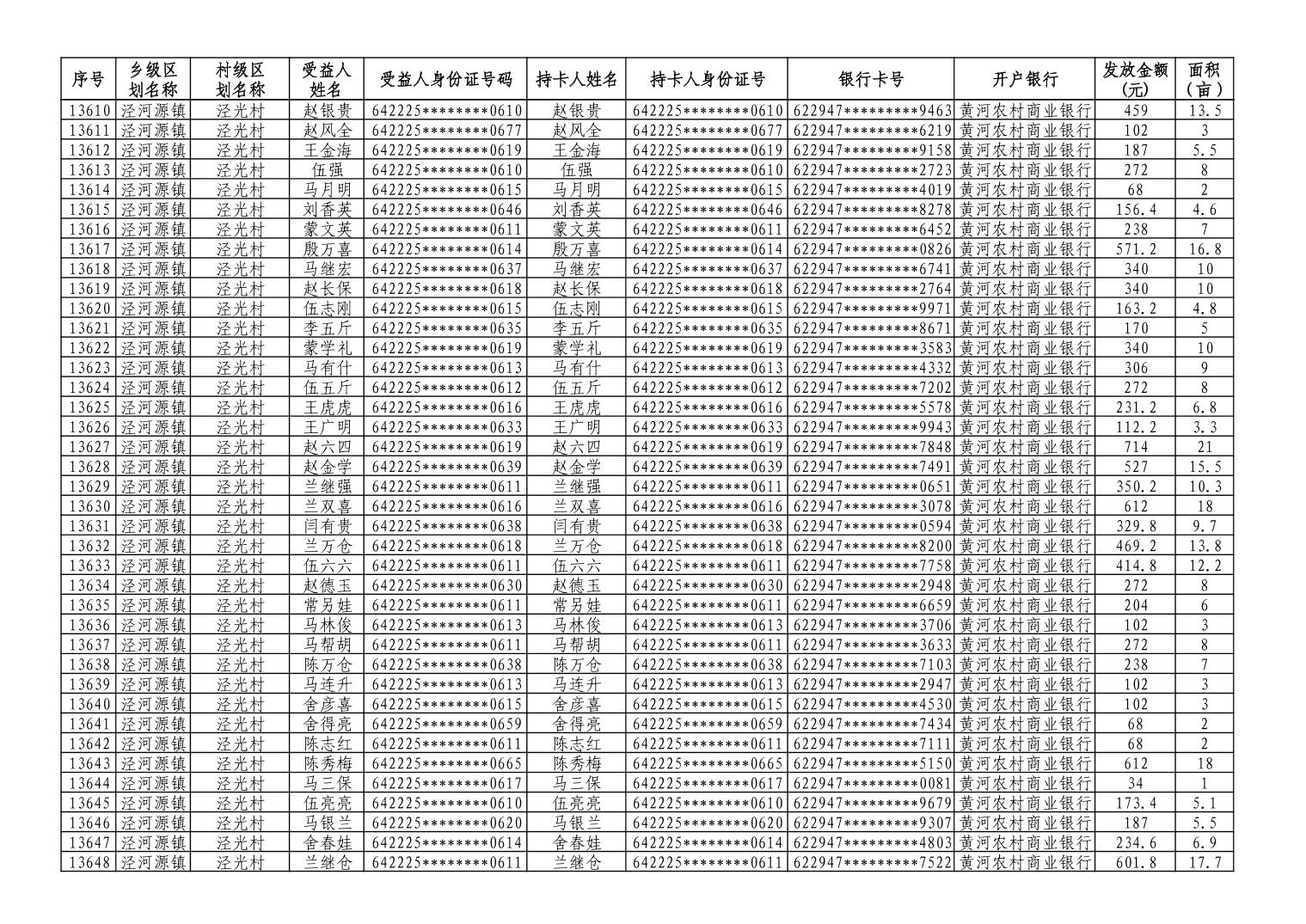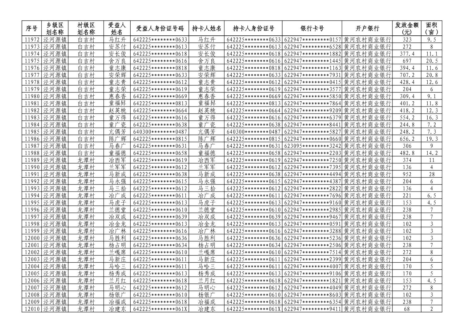 附件:2024年泾源县耕地地力保护补贴项目发放花名册