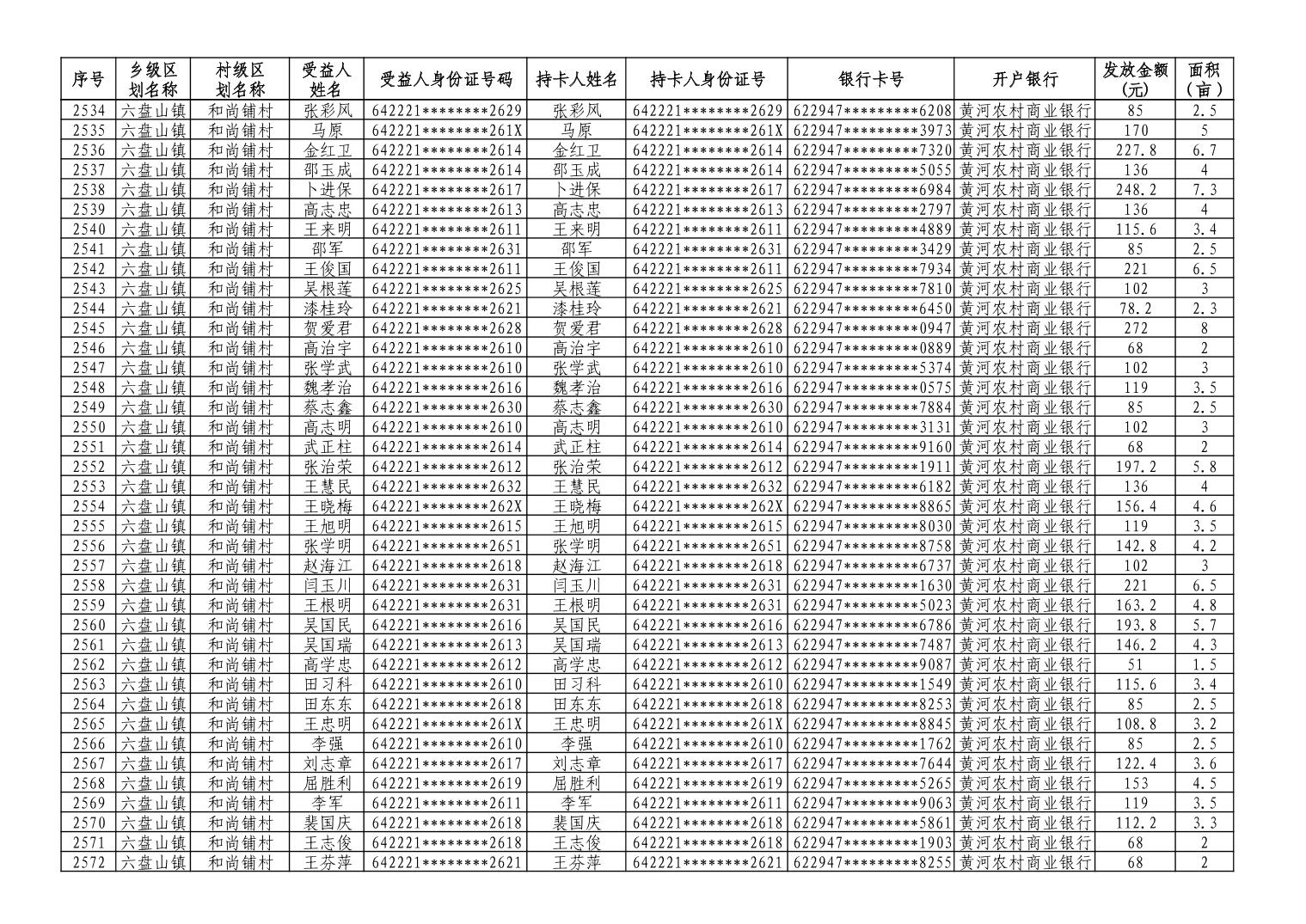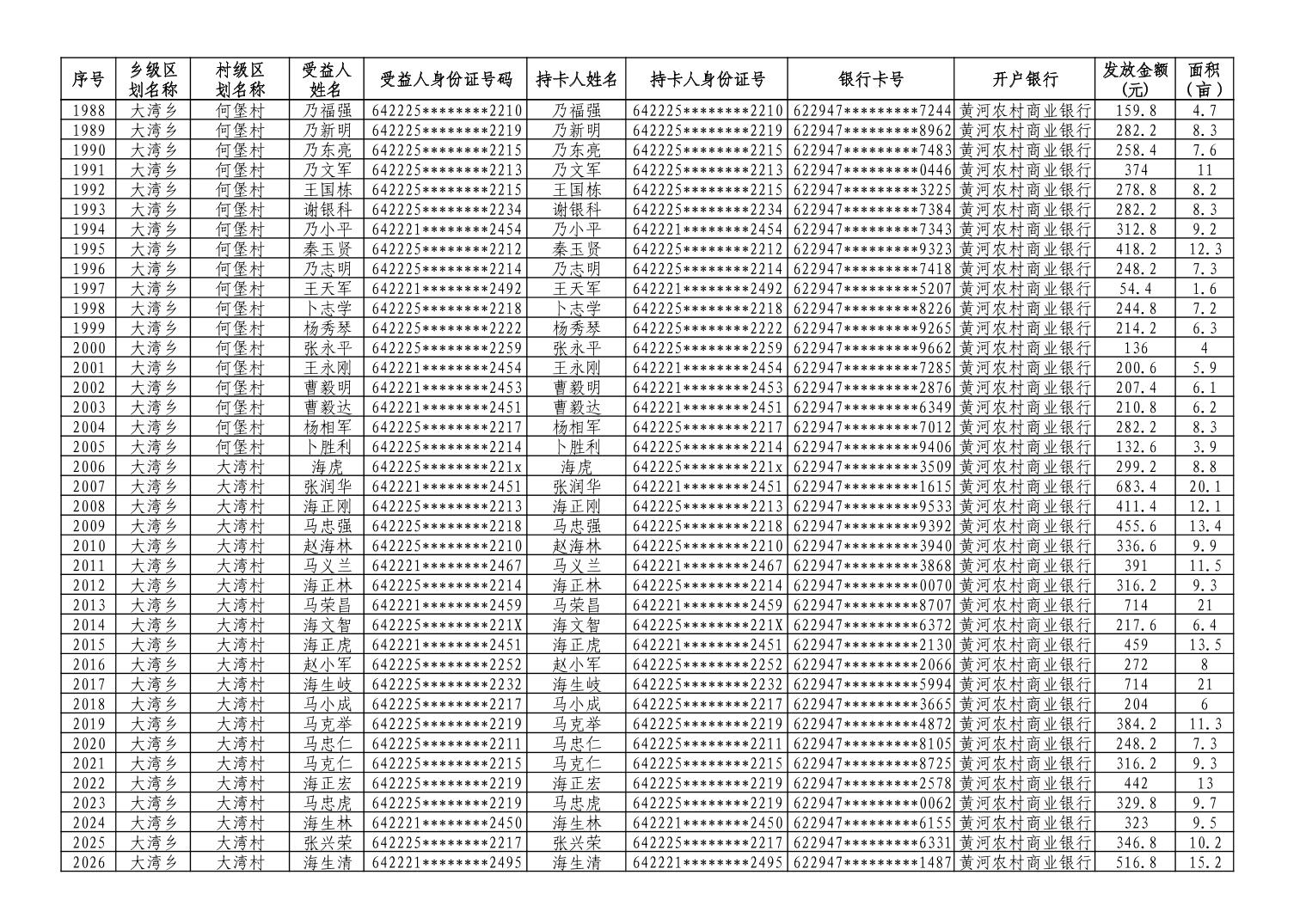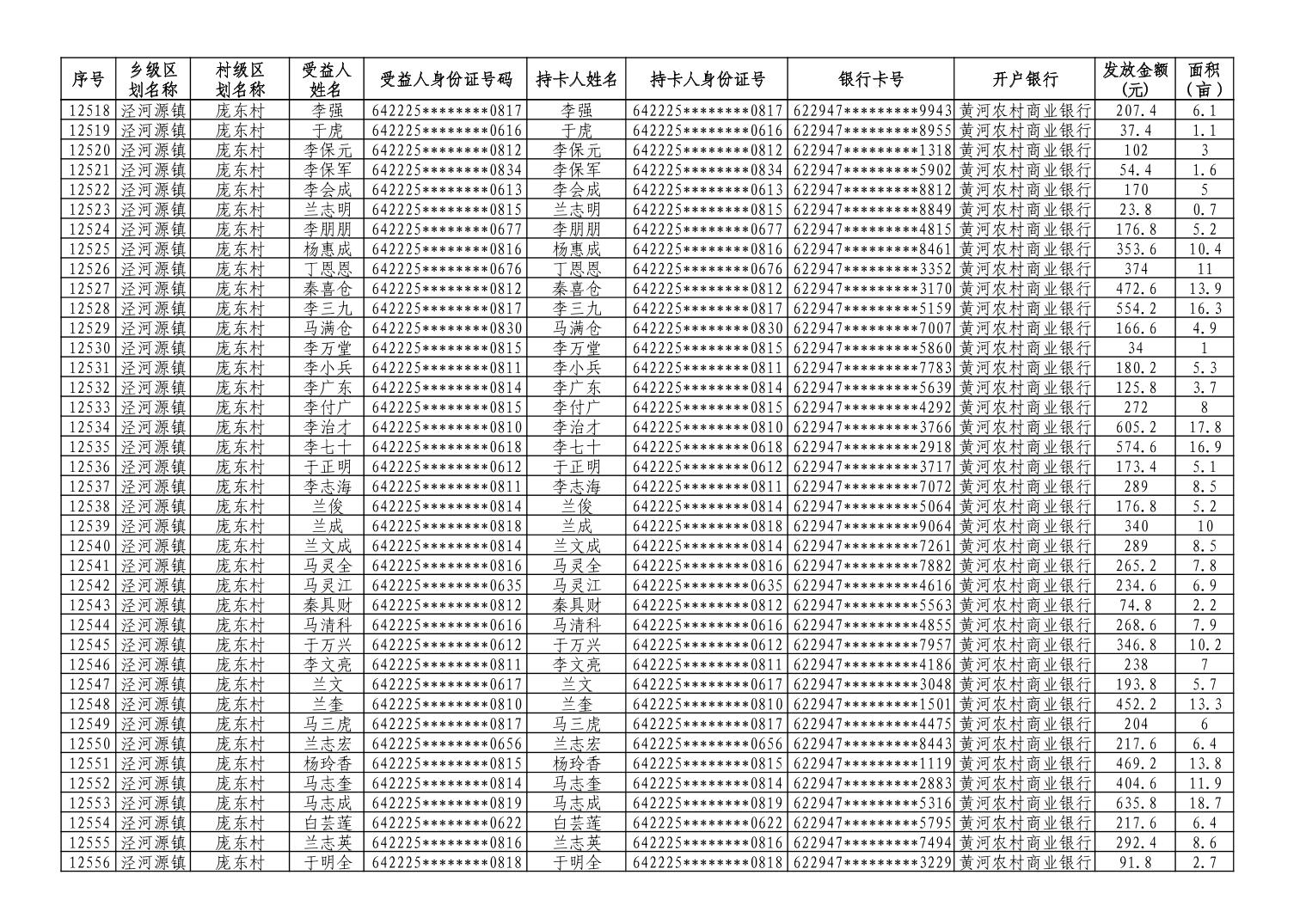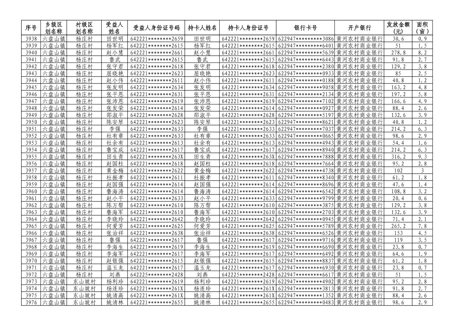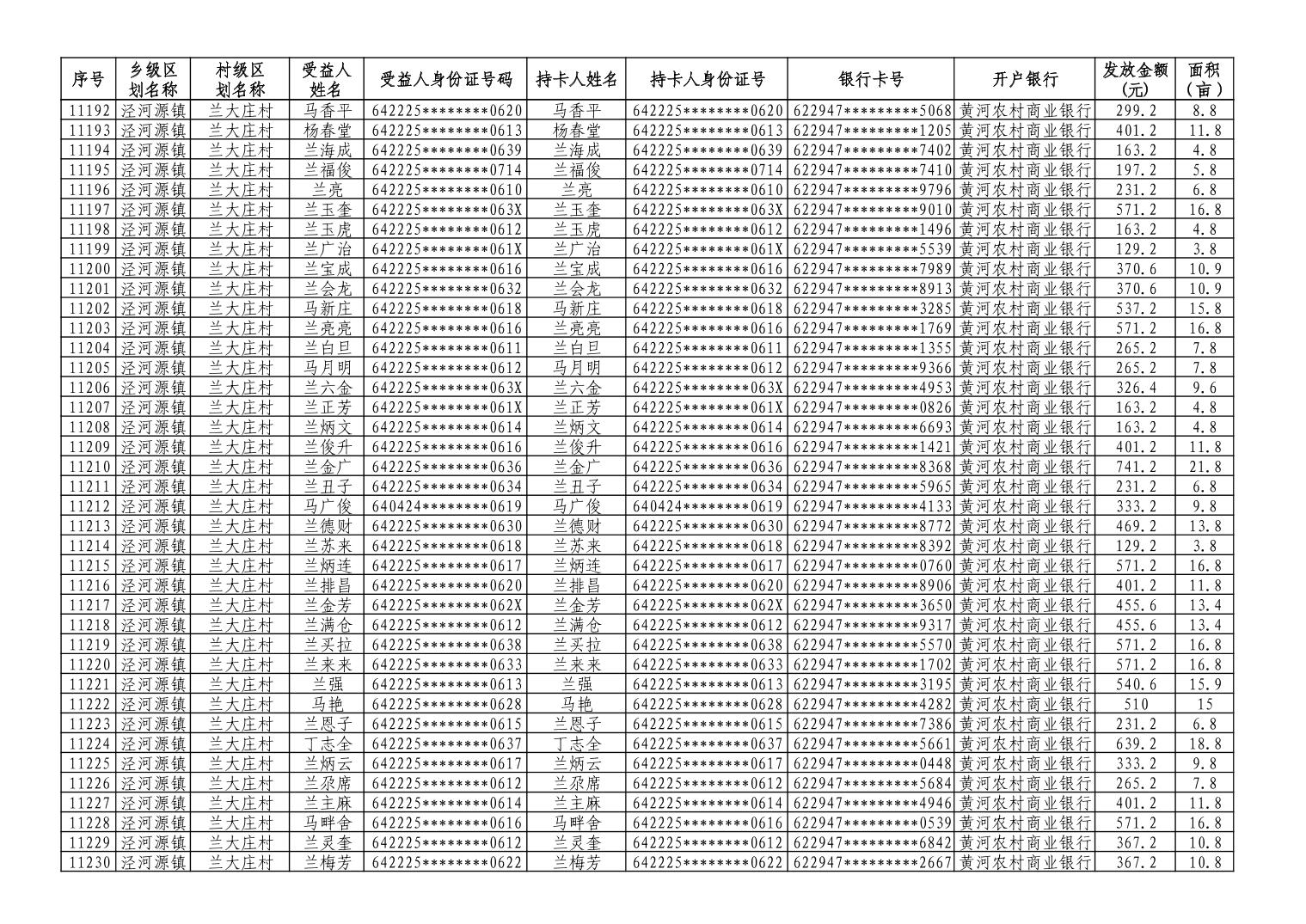 附件:2024年泾源县耕地地力保护补贴项目发放花名册