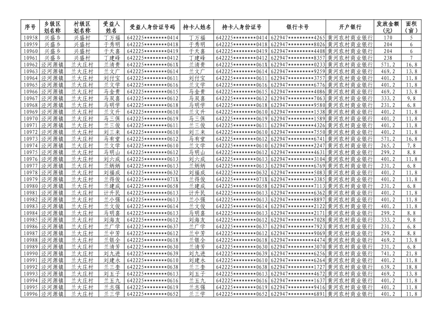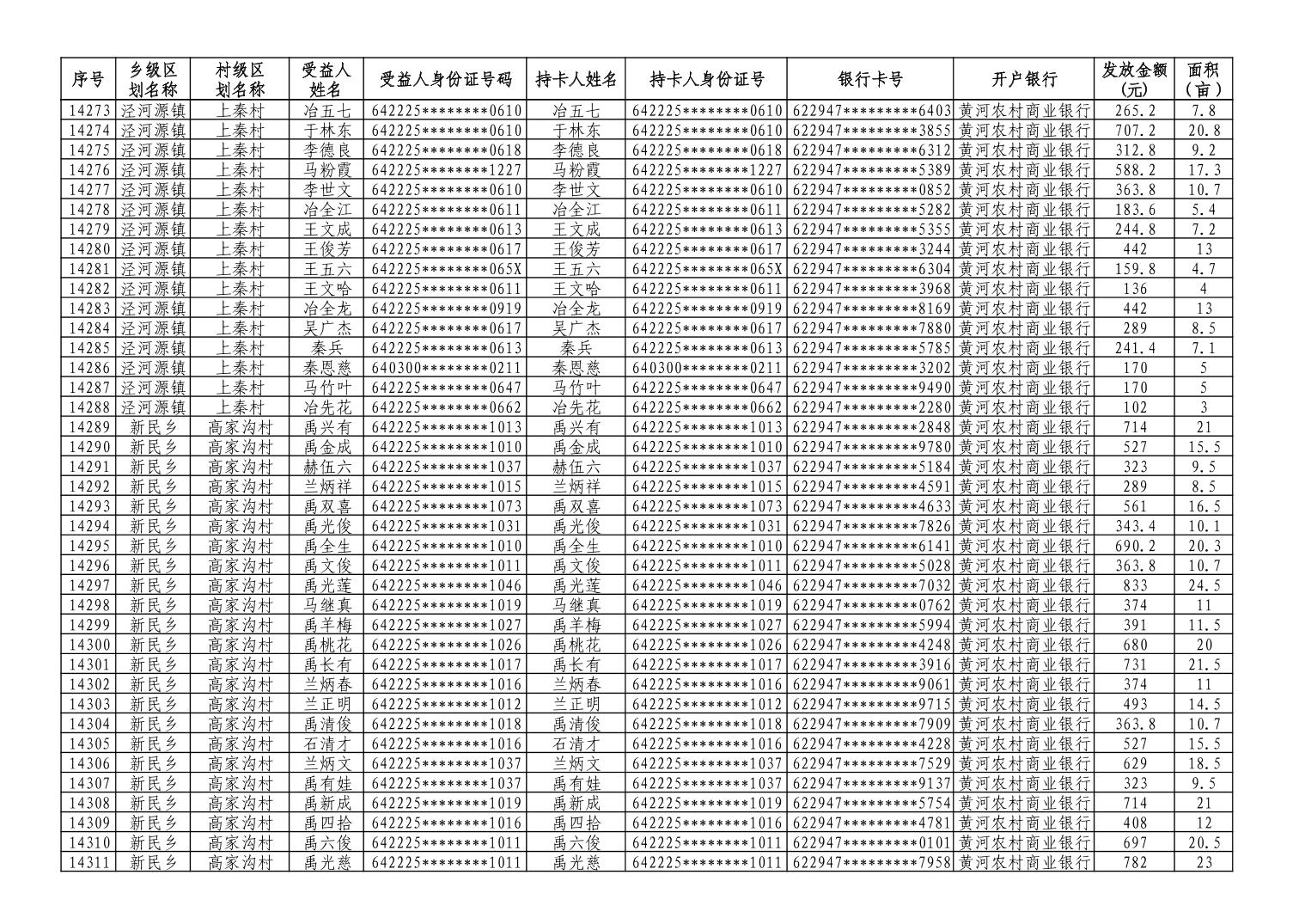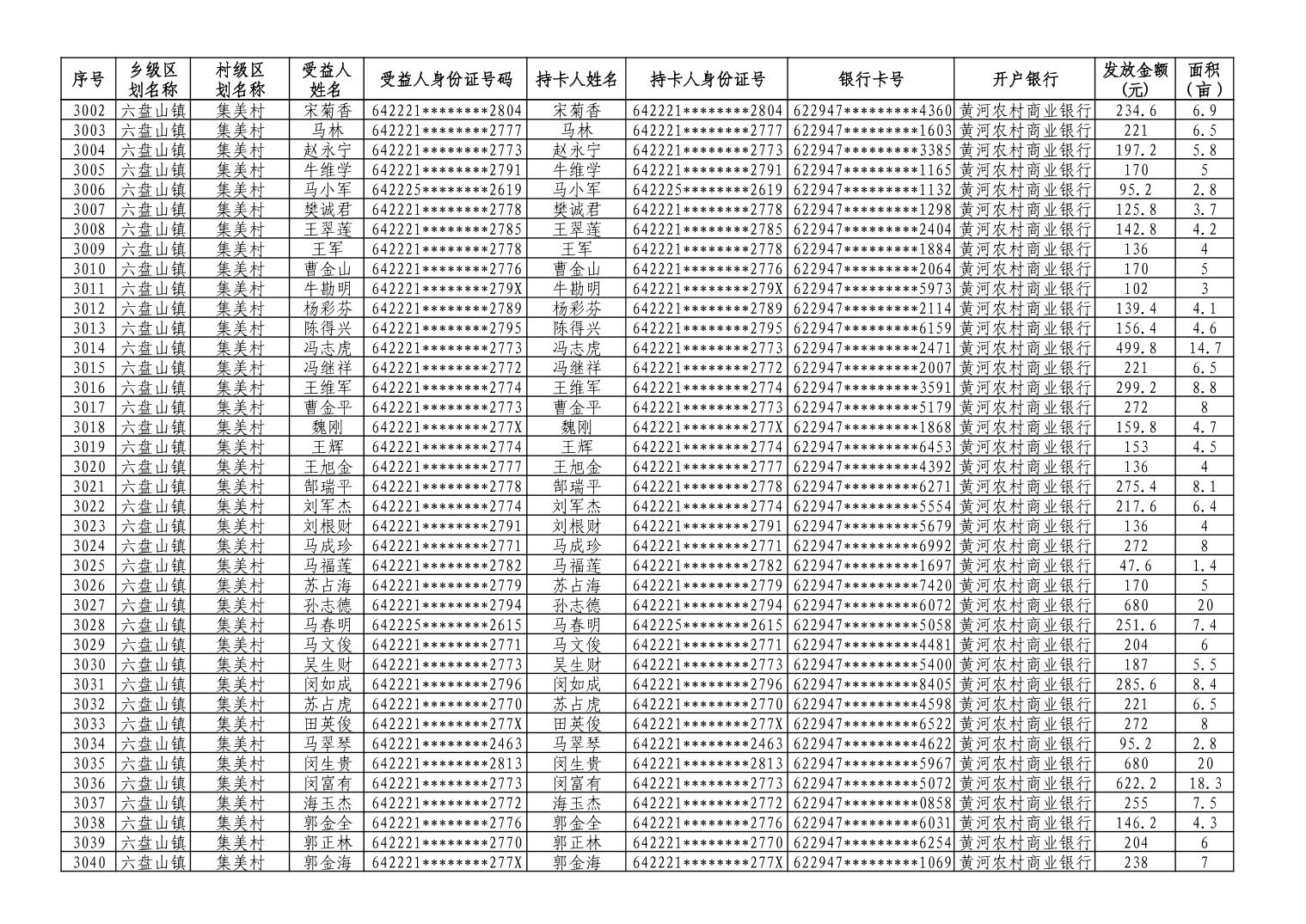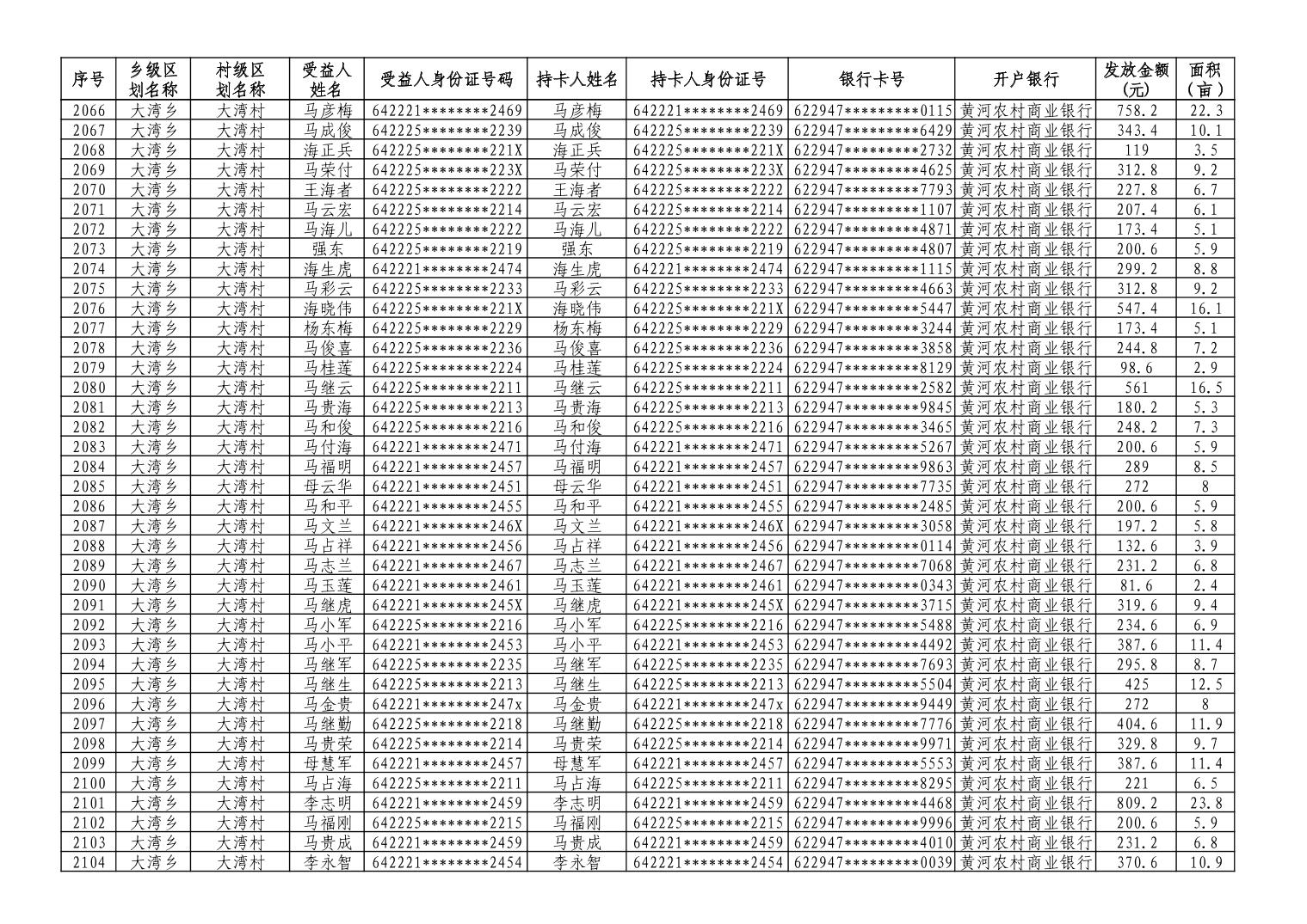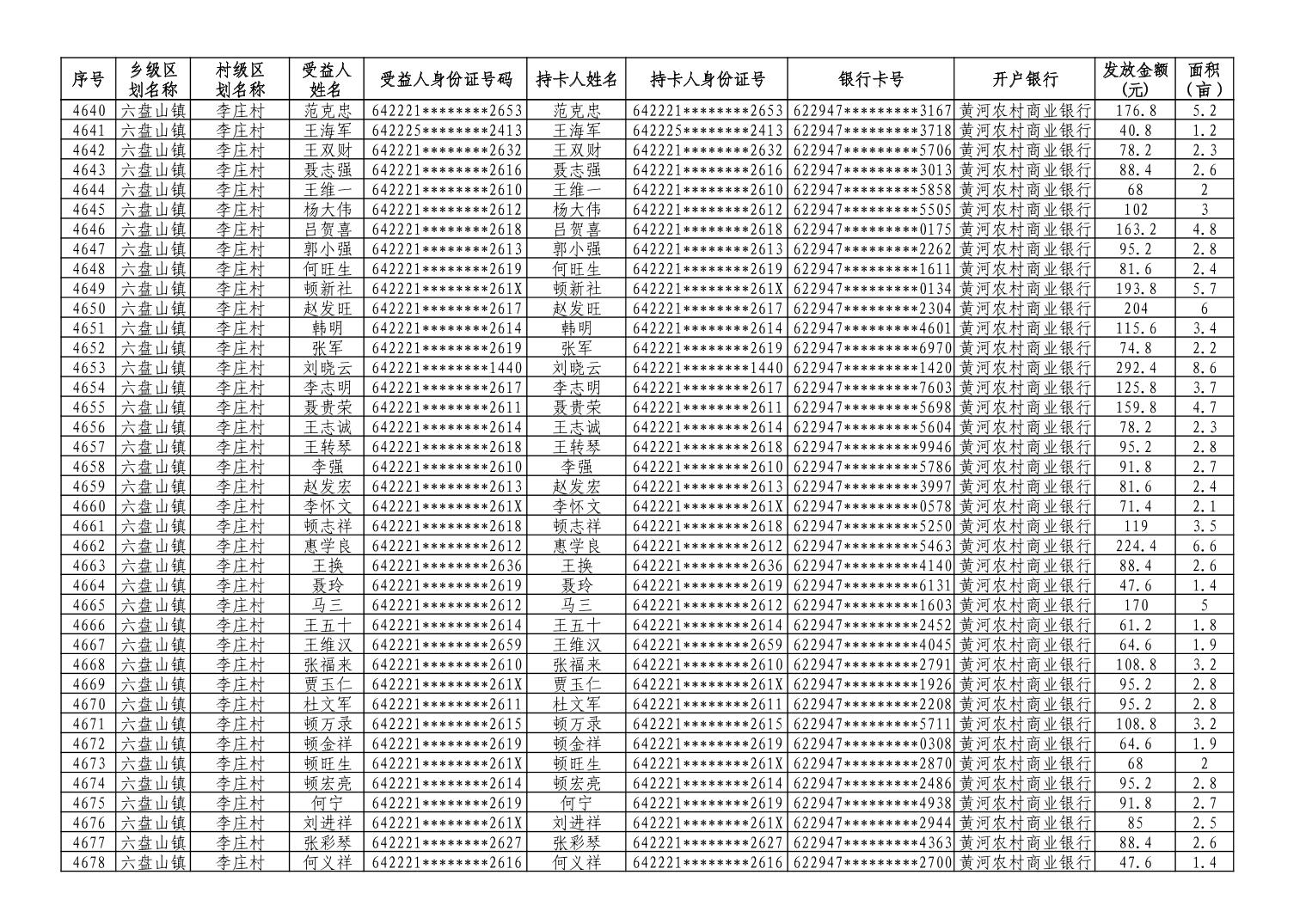 附件:2024年泾源县耕地地力保护补贴项目发放花名册