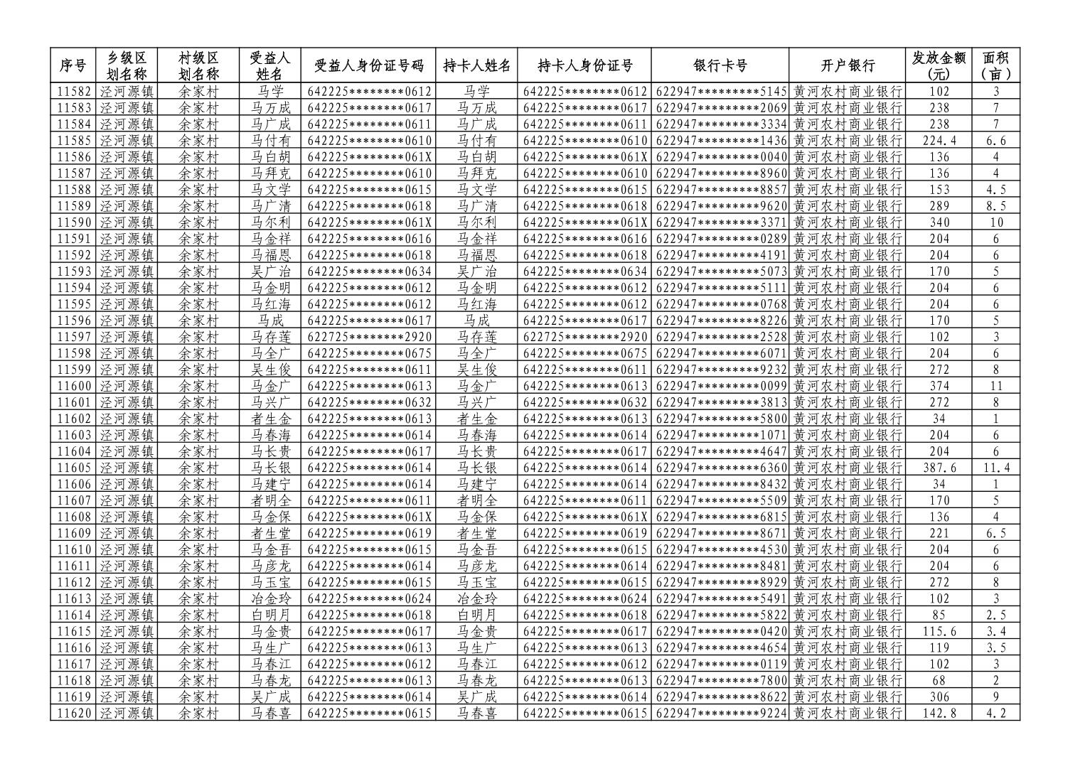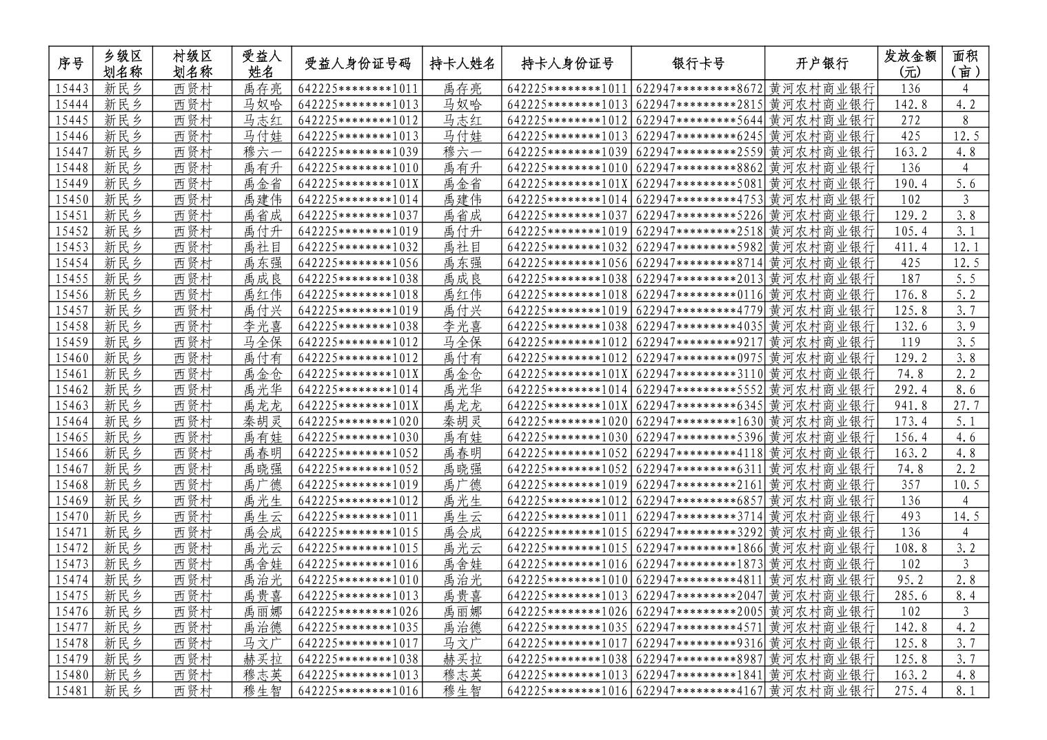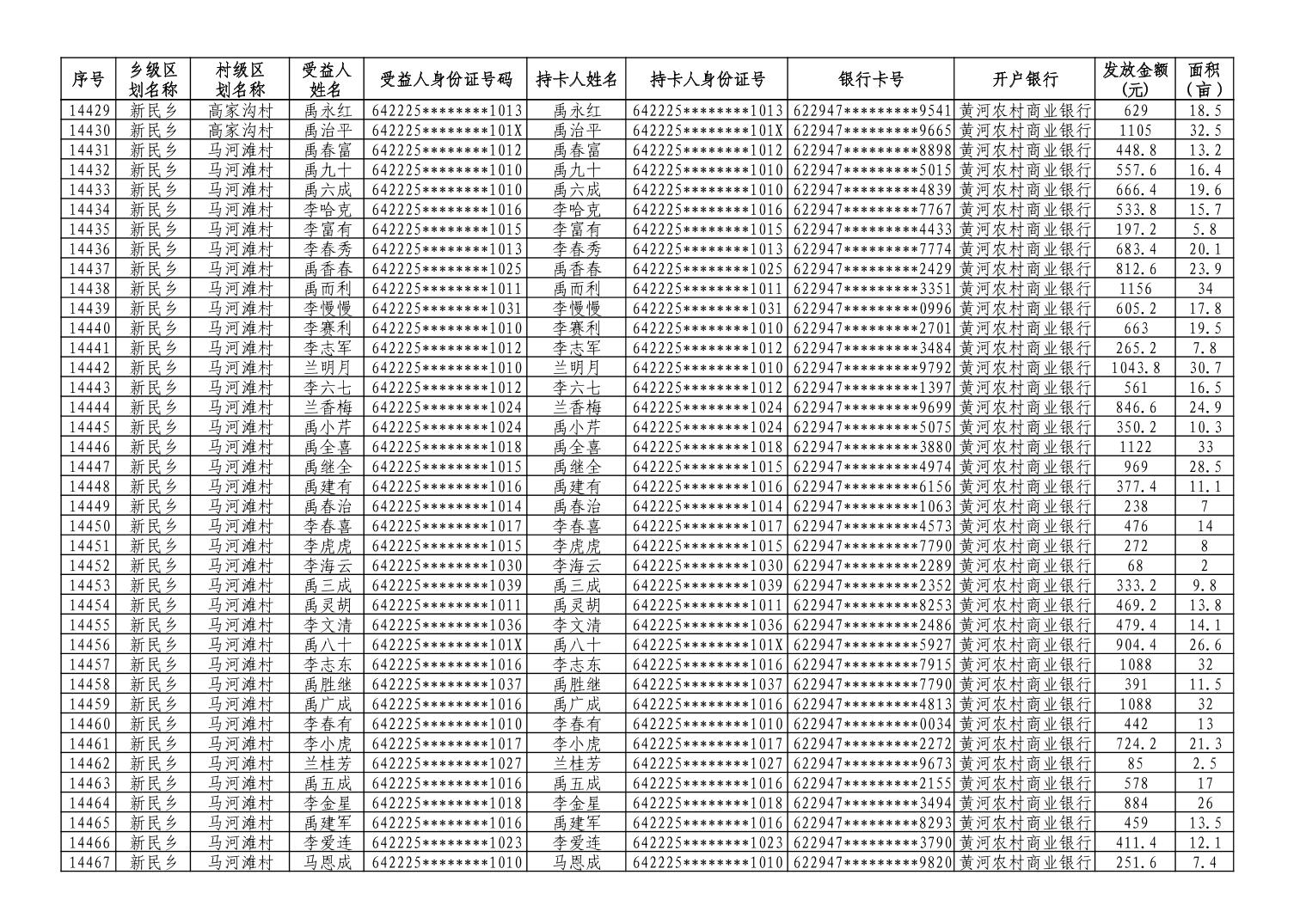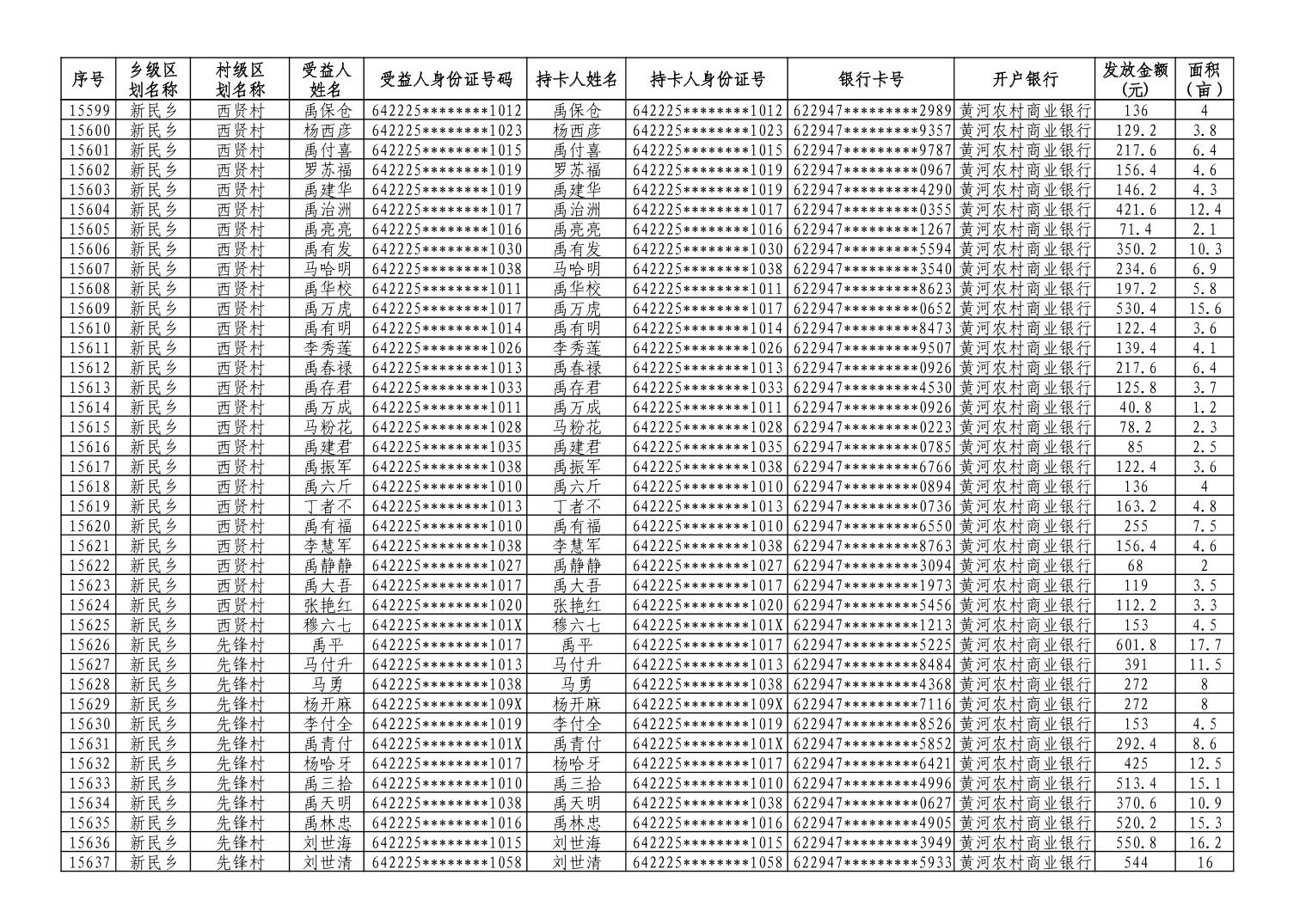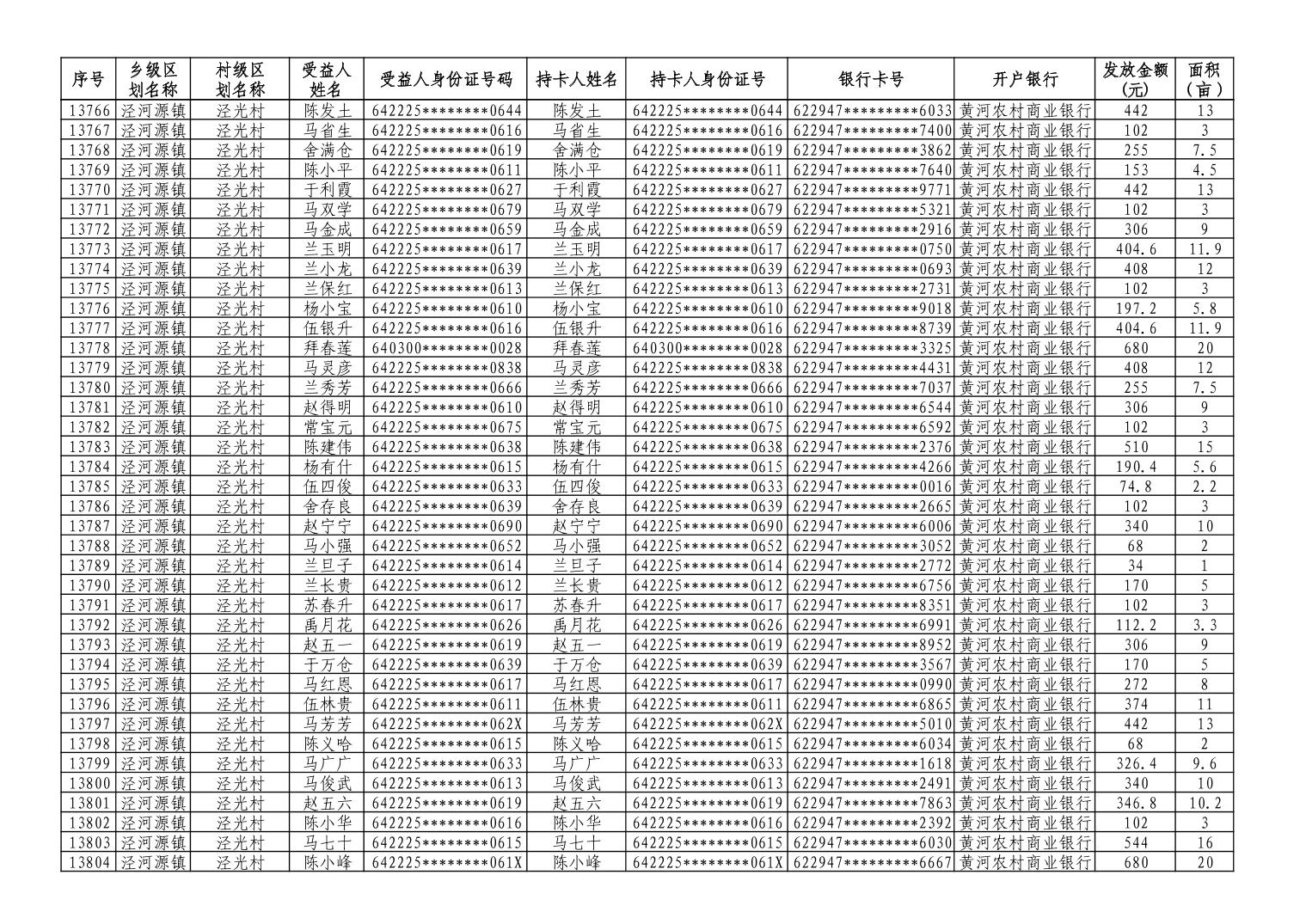 附件:2024年泾源县耕地地力保护补贴项目发放花名册