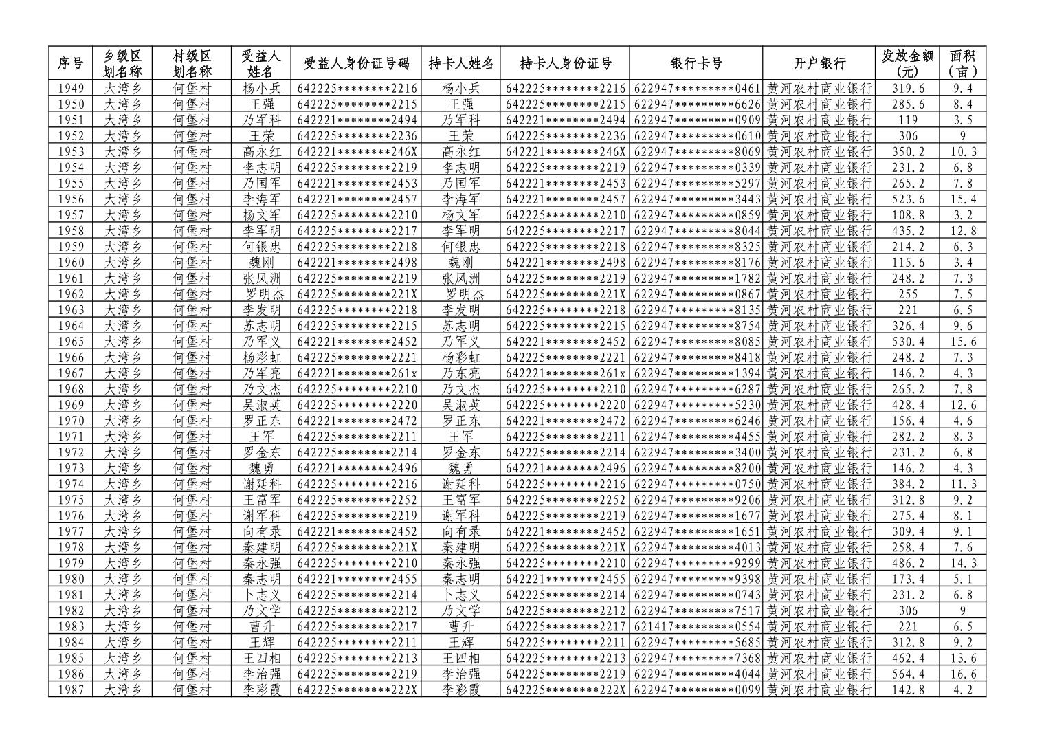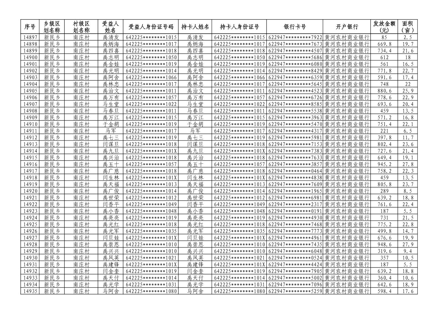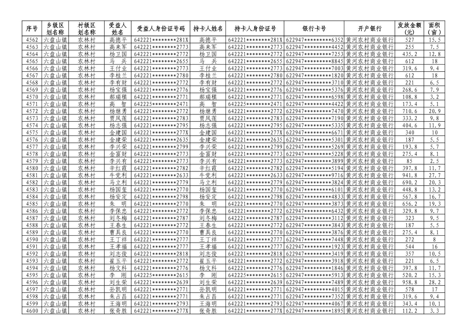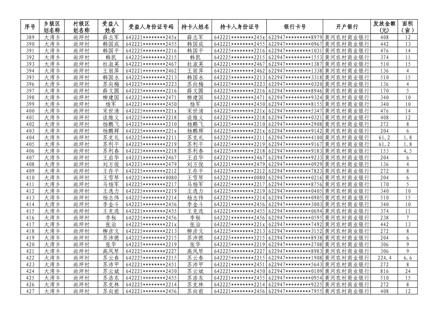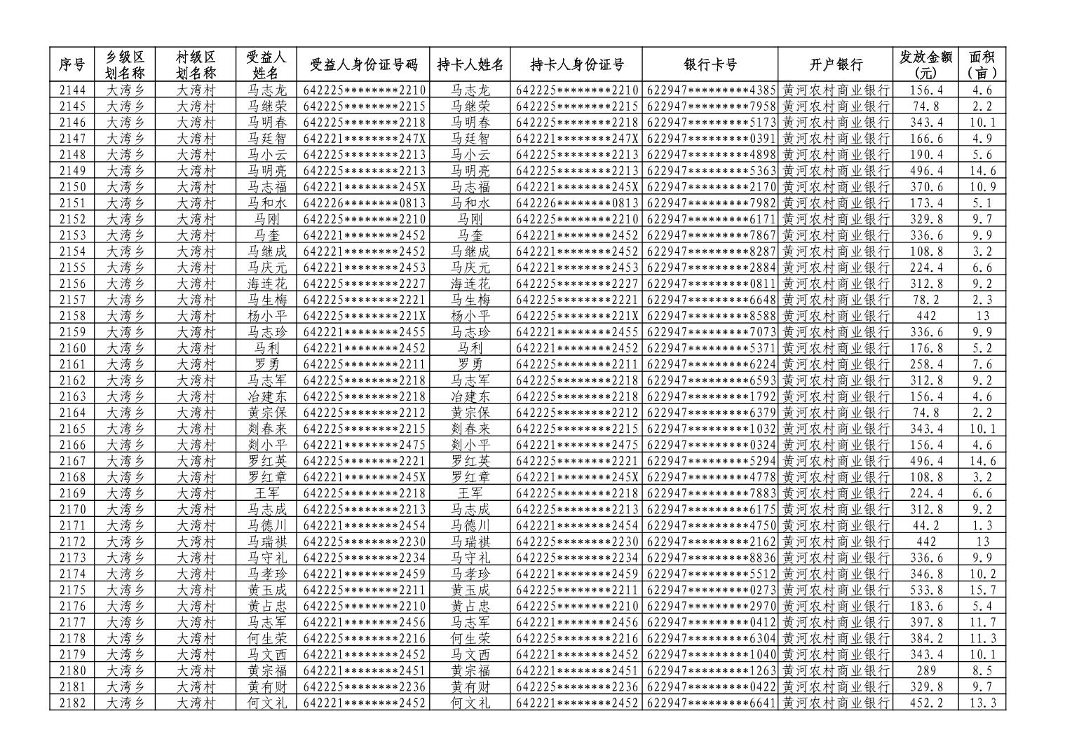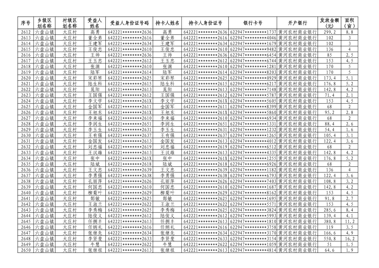 附件:2024年泾源县耕地地力保护补贴项目发放花名册