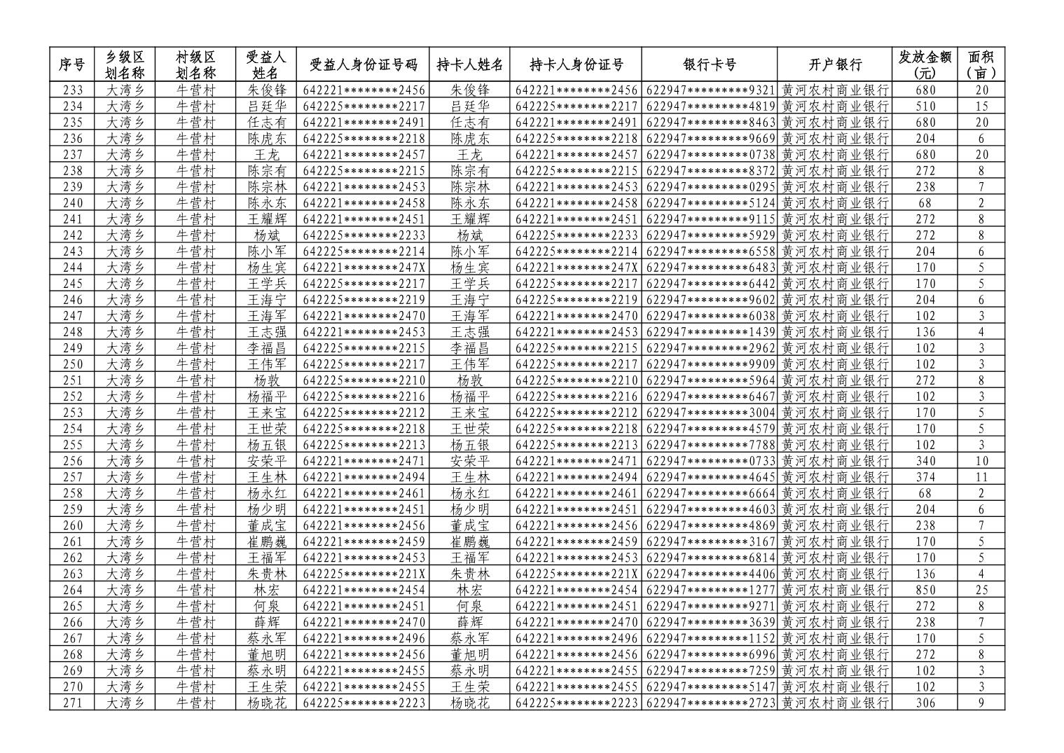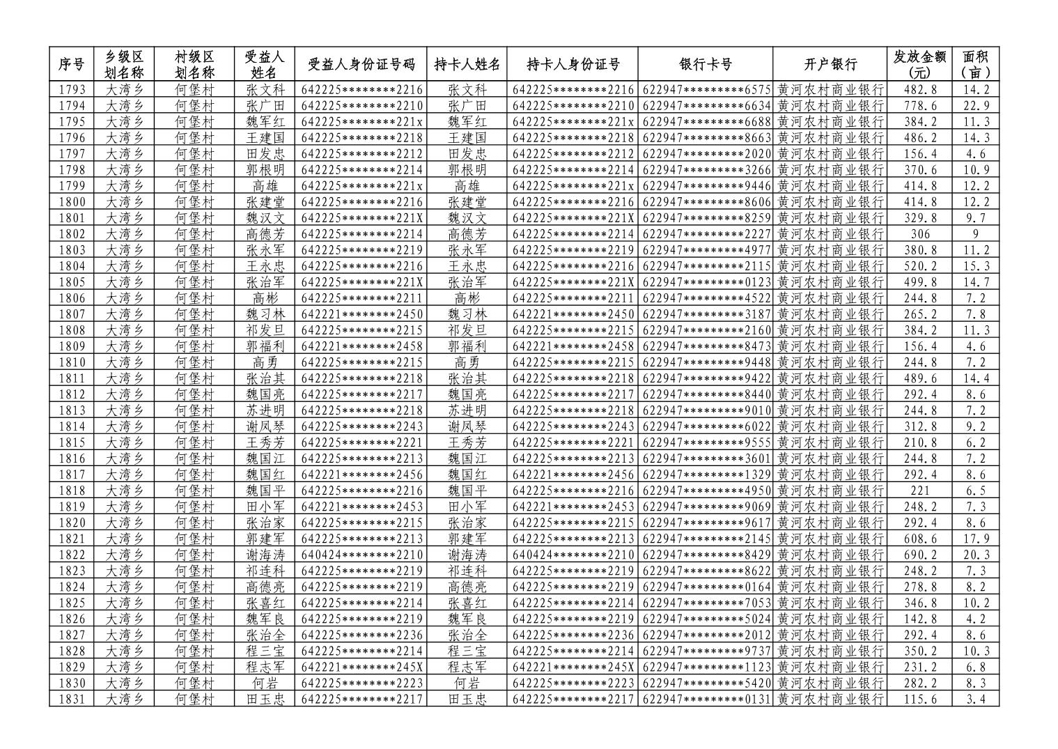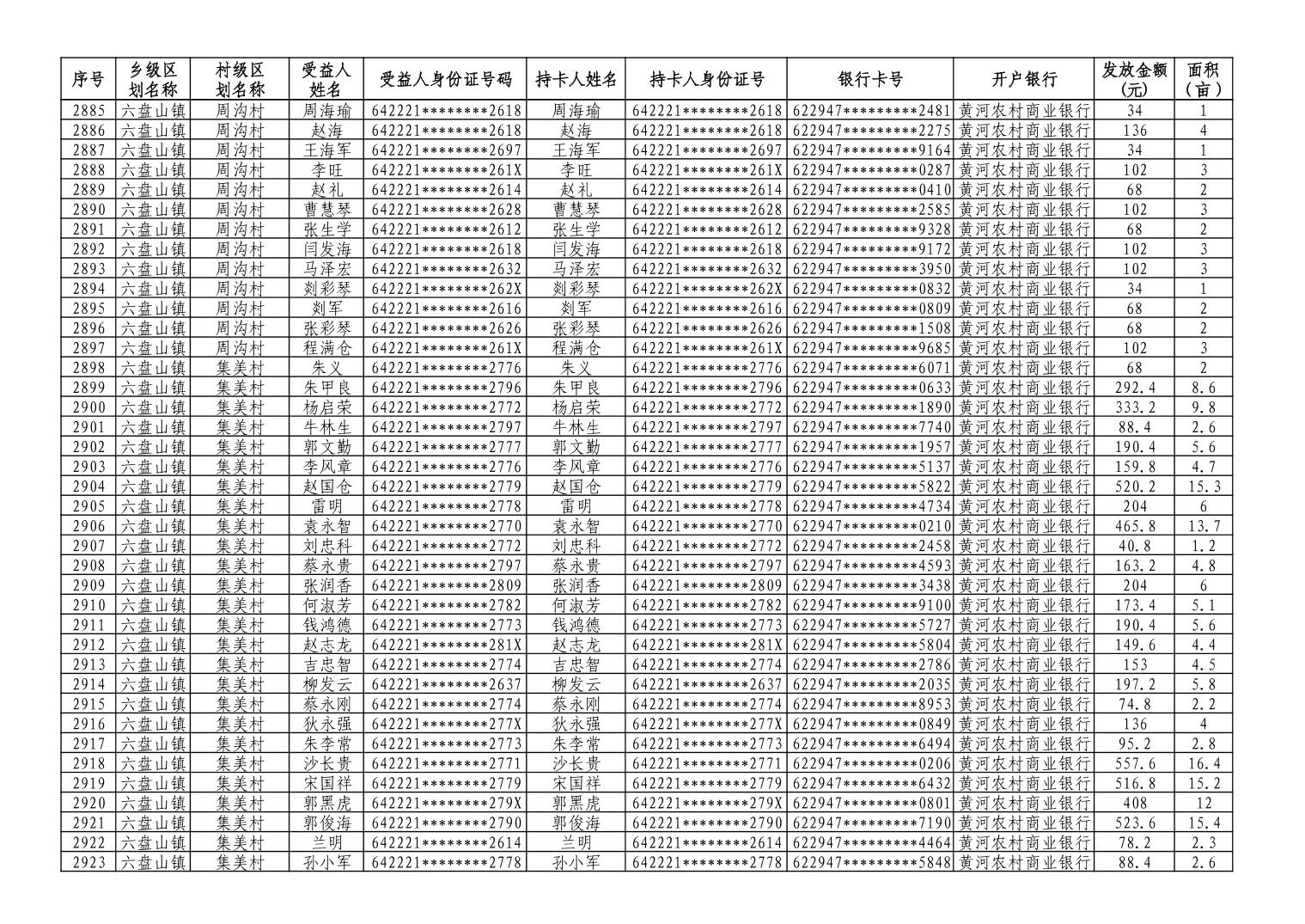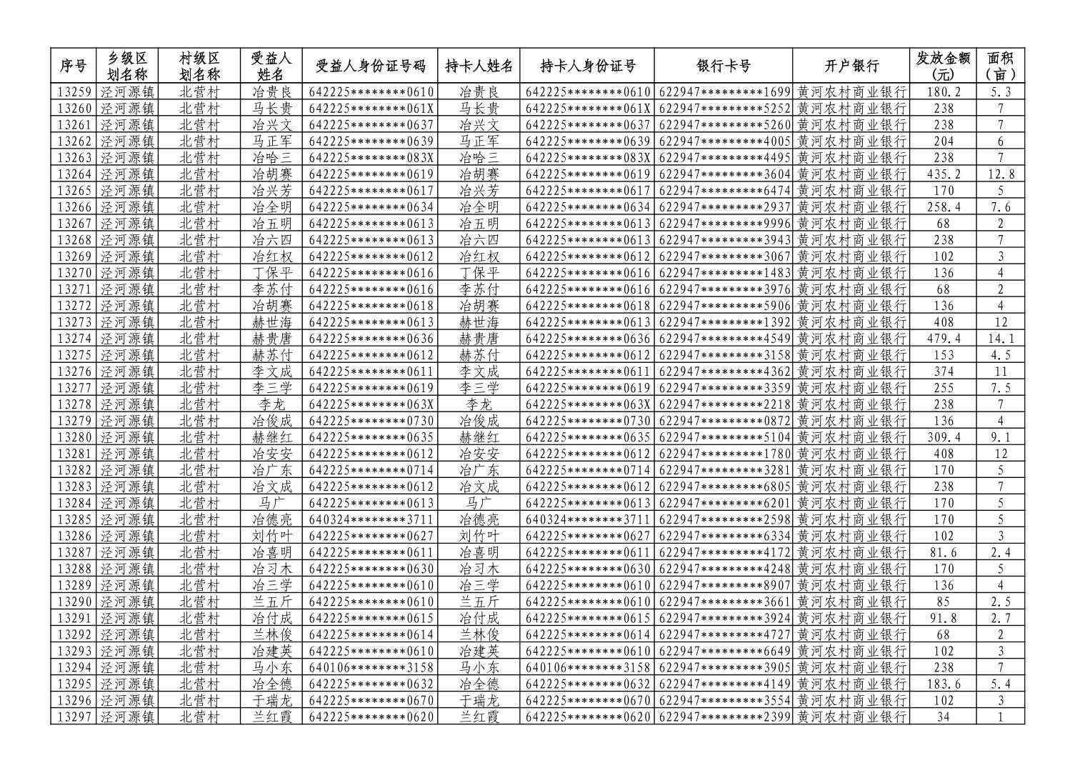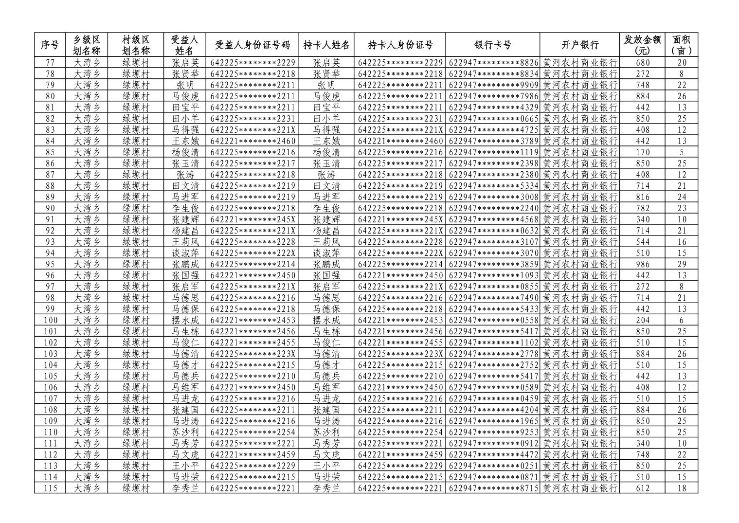 附件:2024年泾源县耕地地力保护补贴项目发放花名册