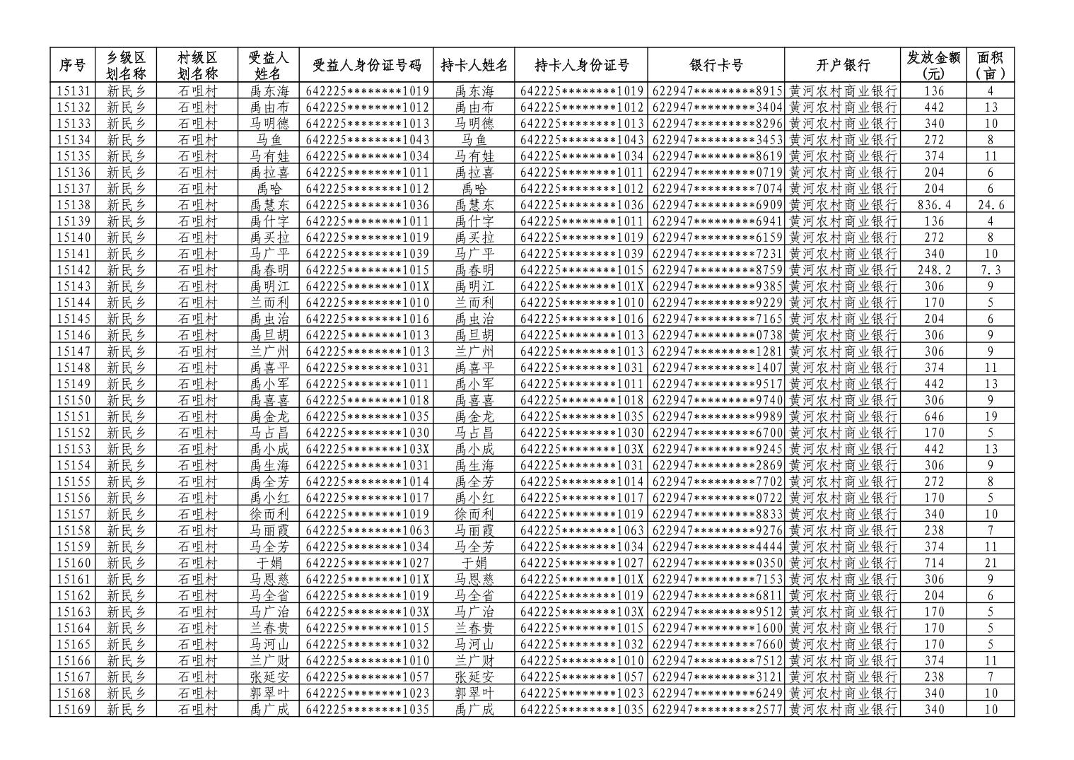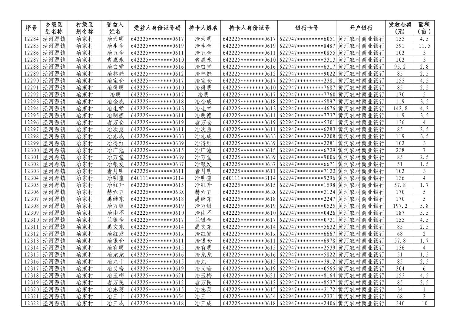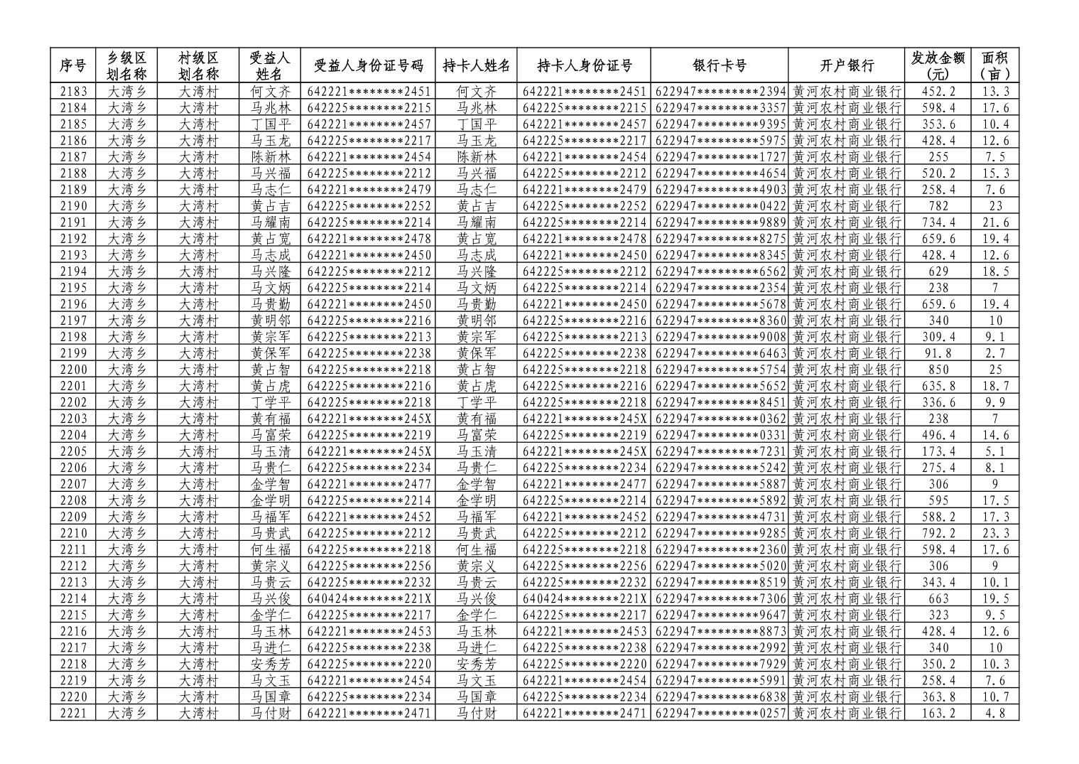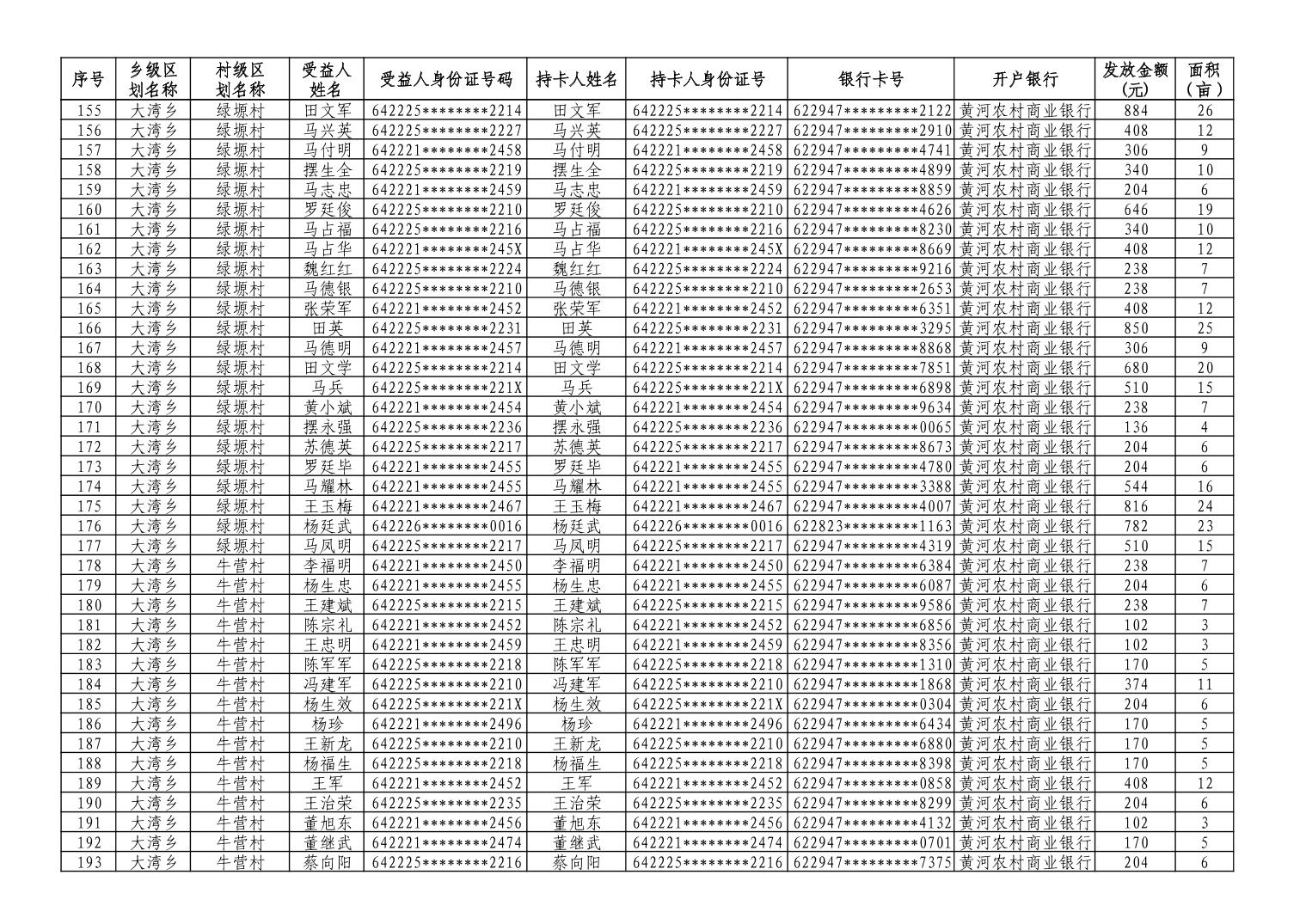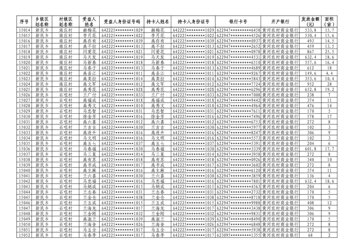 附件:2024年泾源县耕地地力保护补贴项目发放花名册