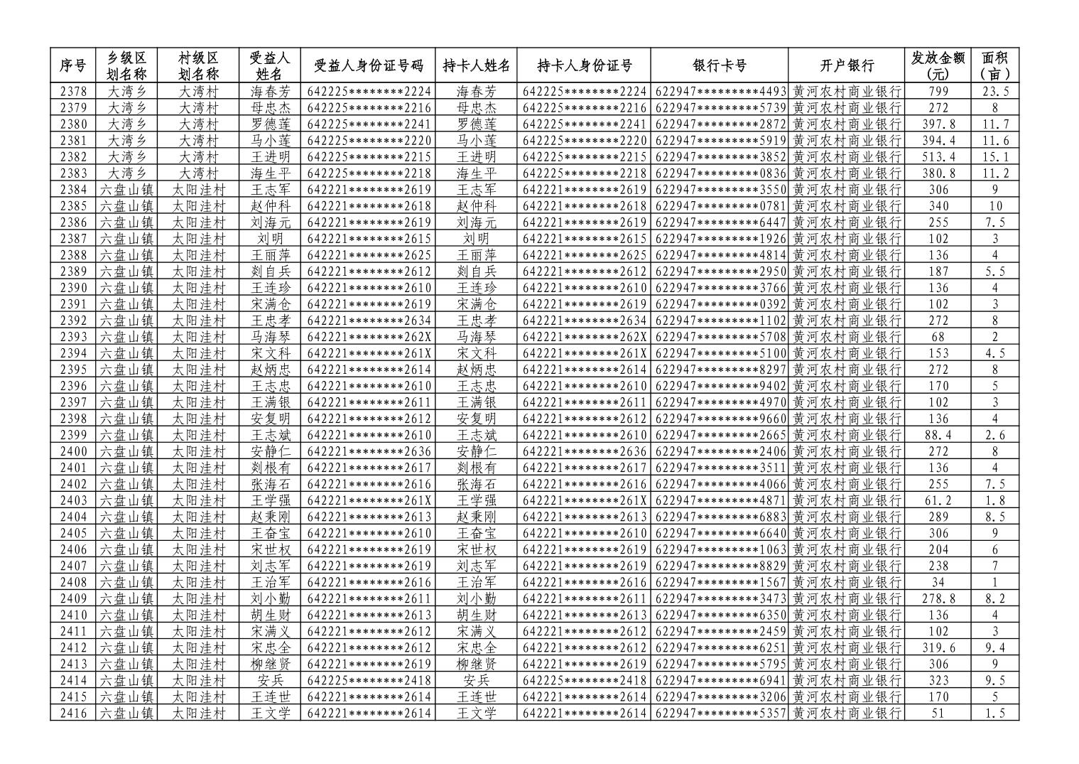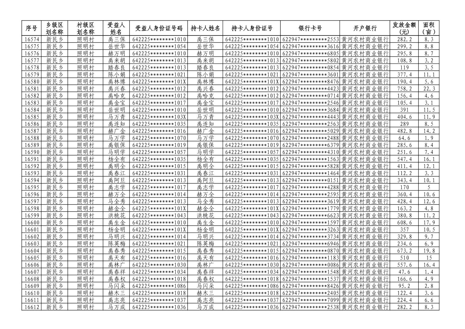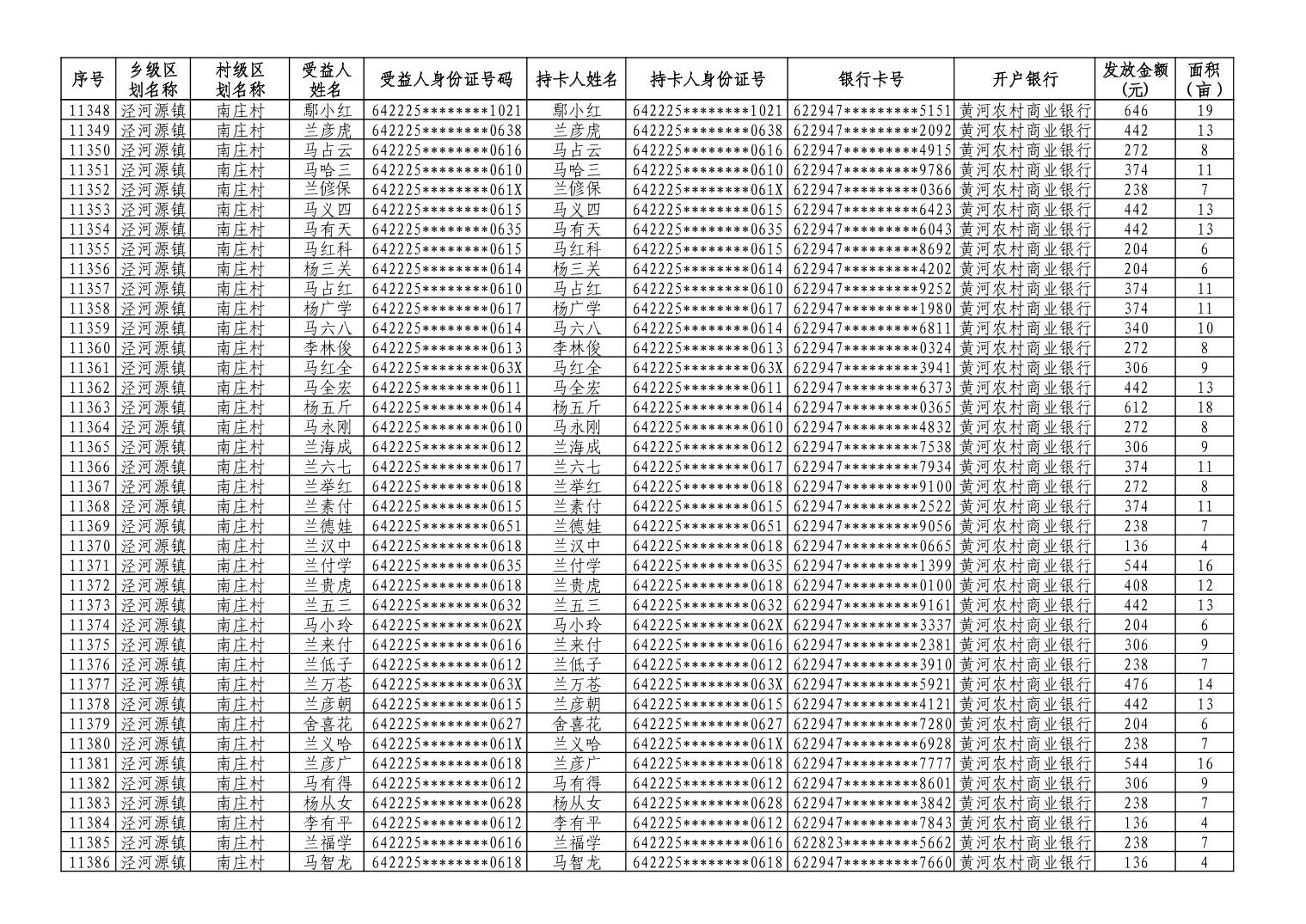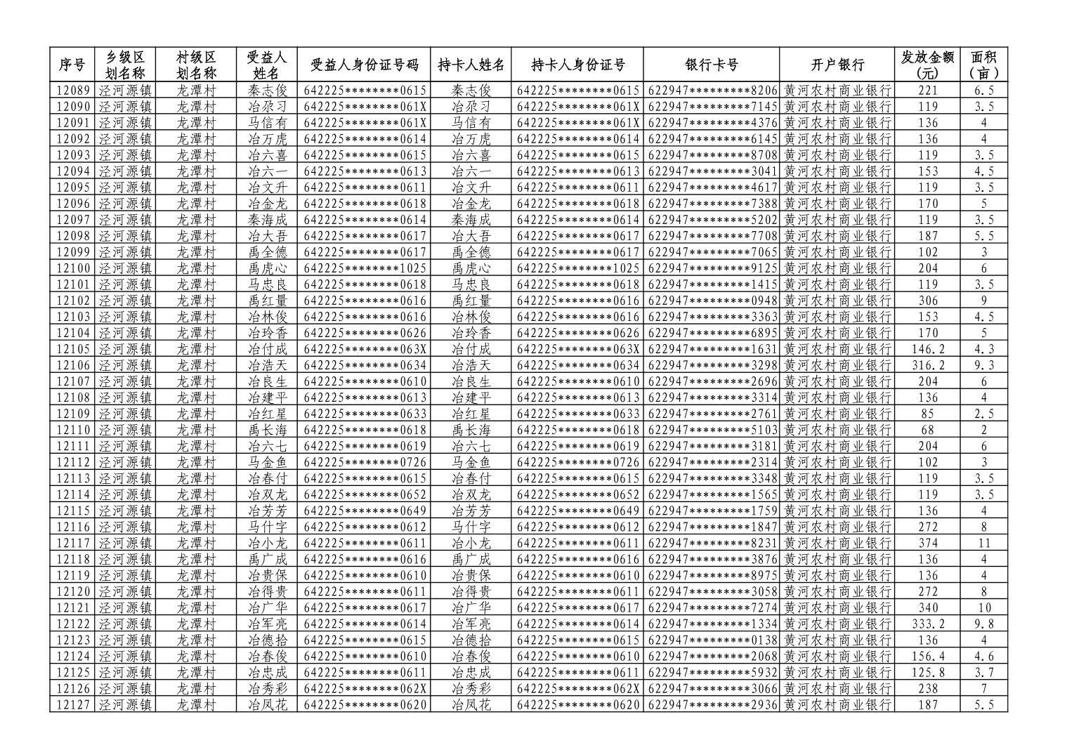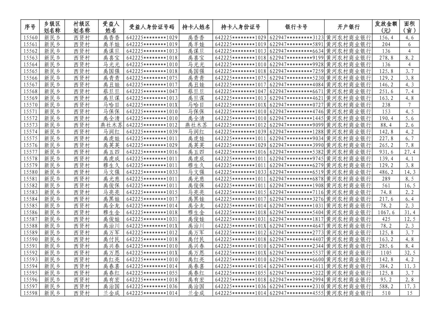 附件:2024年泾源县耕地地力保护补贴项目发放花名册