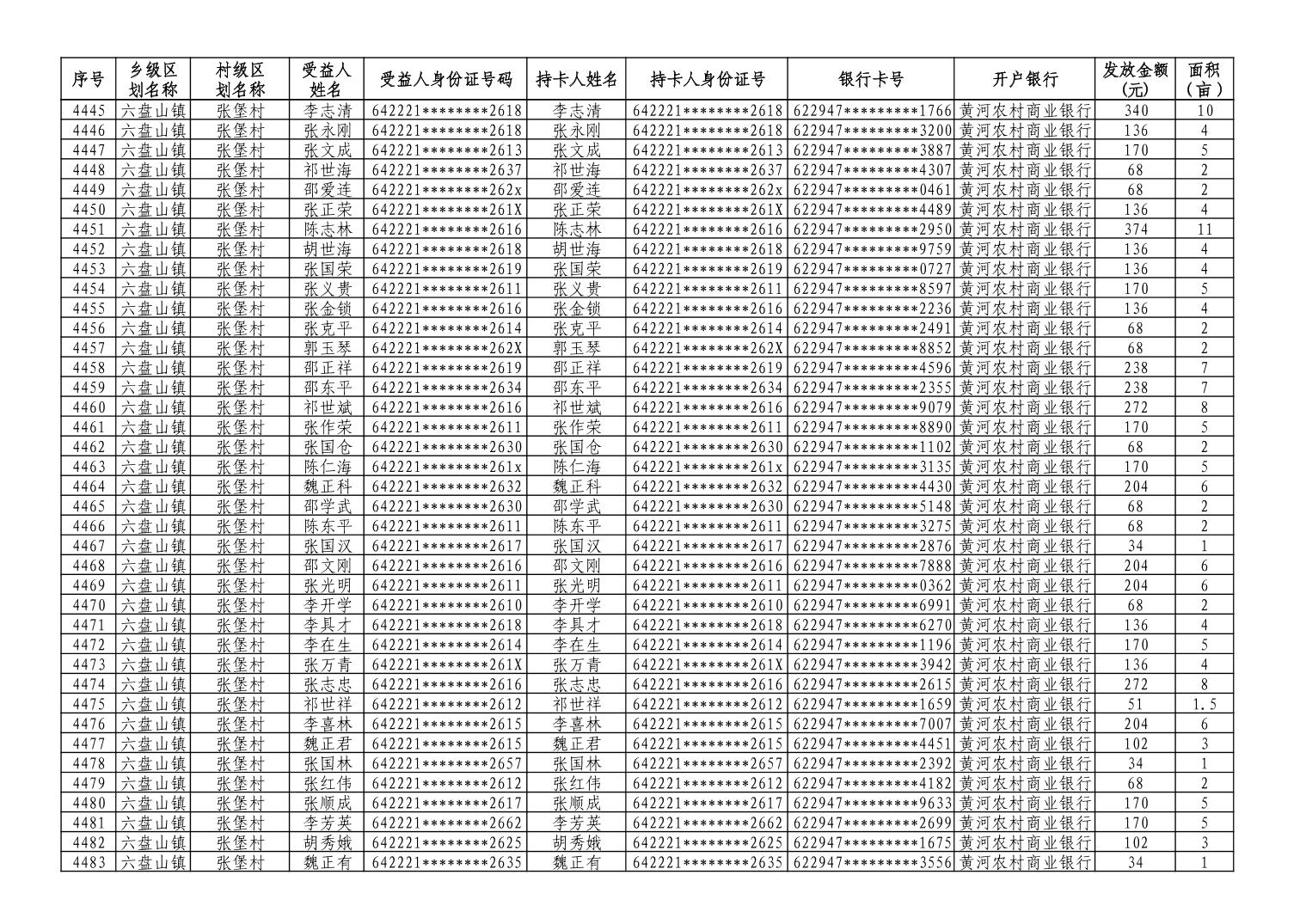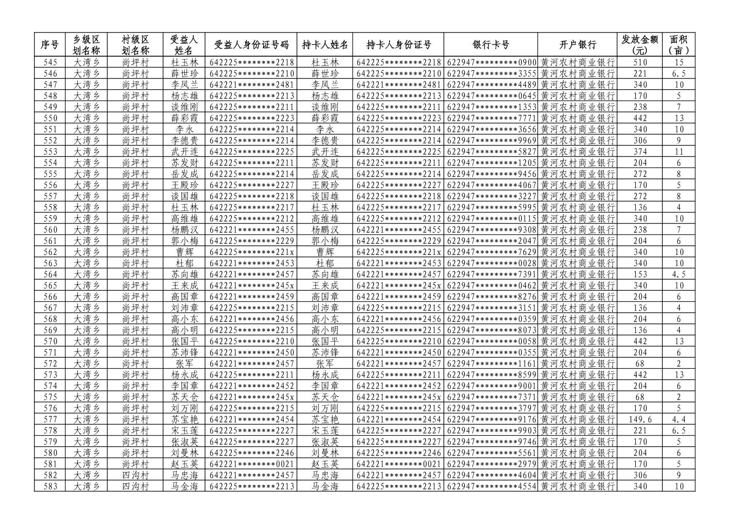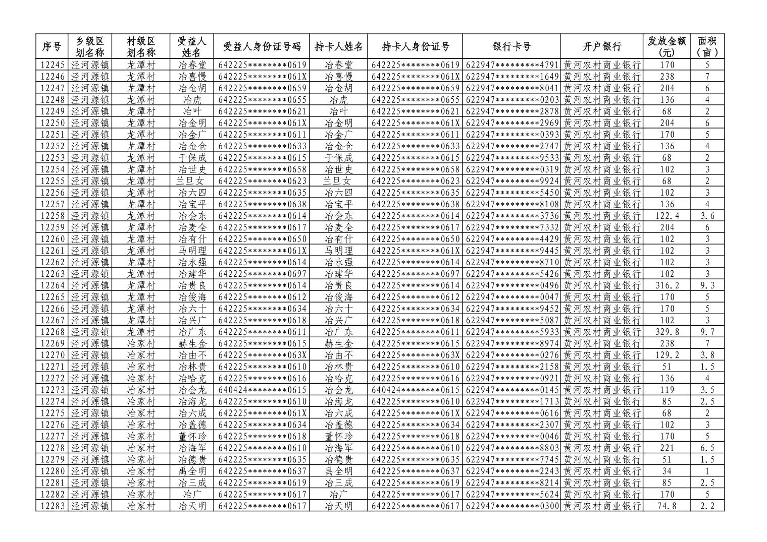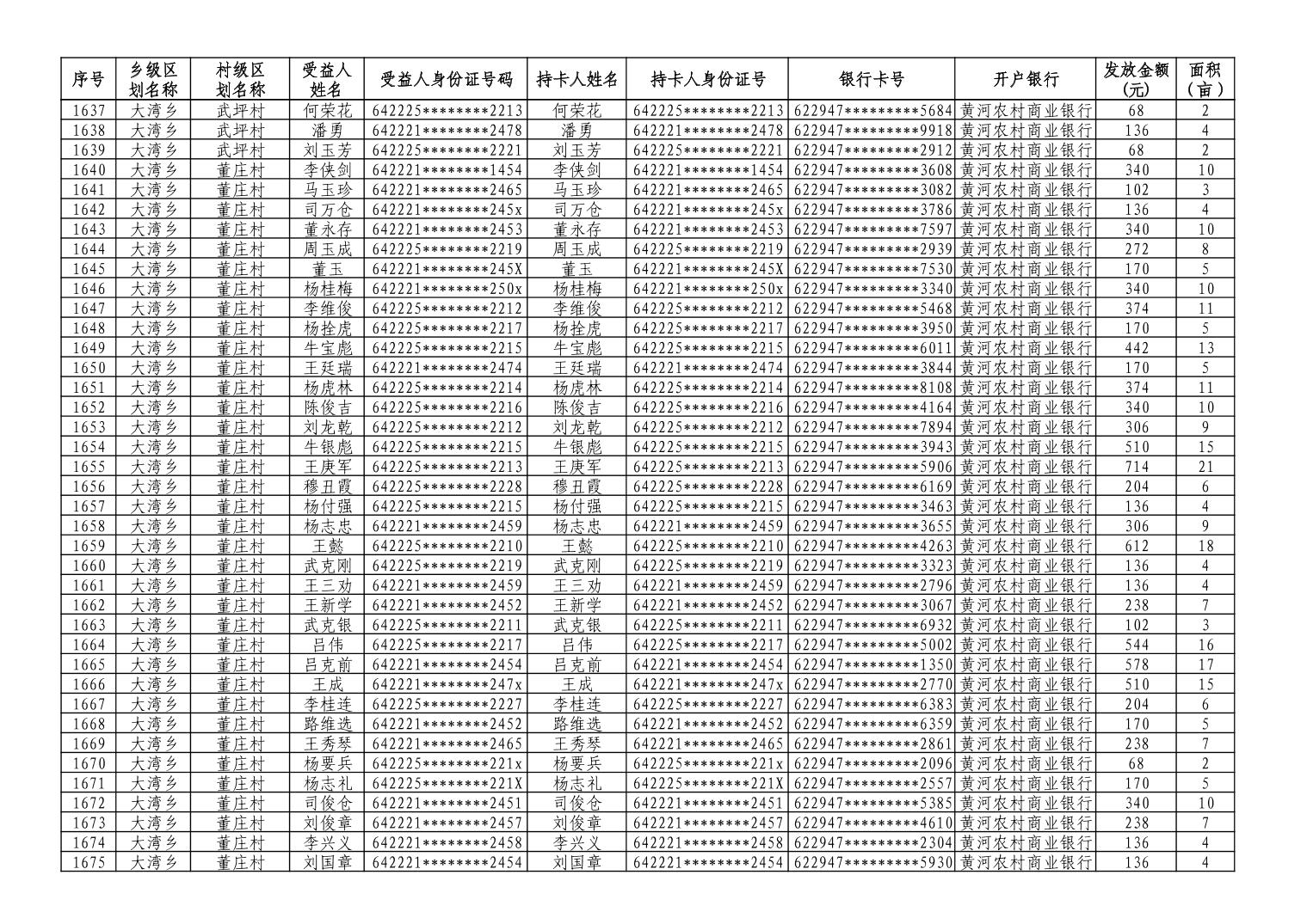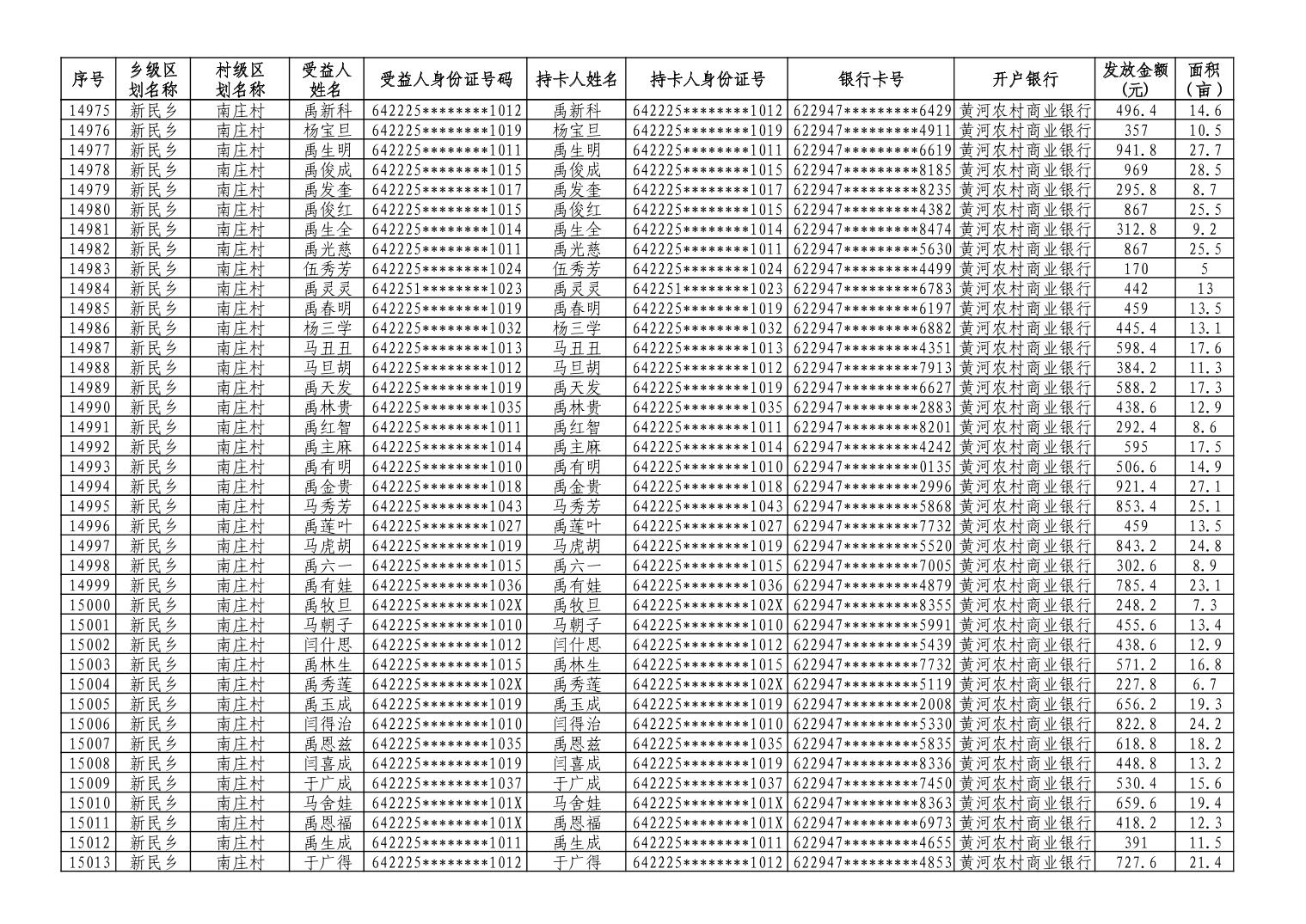 附件:2024年泾源县耕地地力保护补贴项目发放花名册