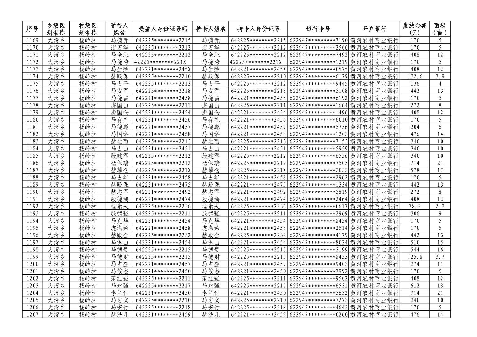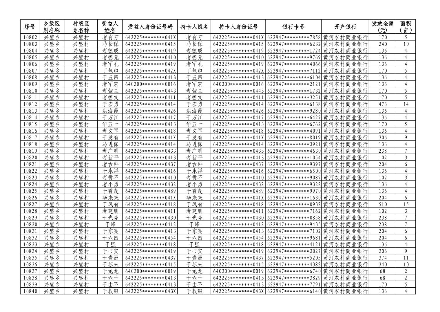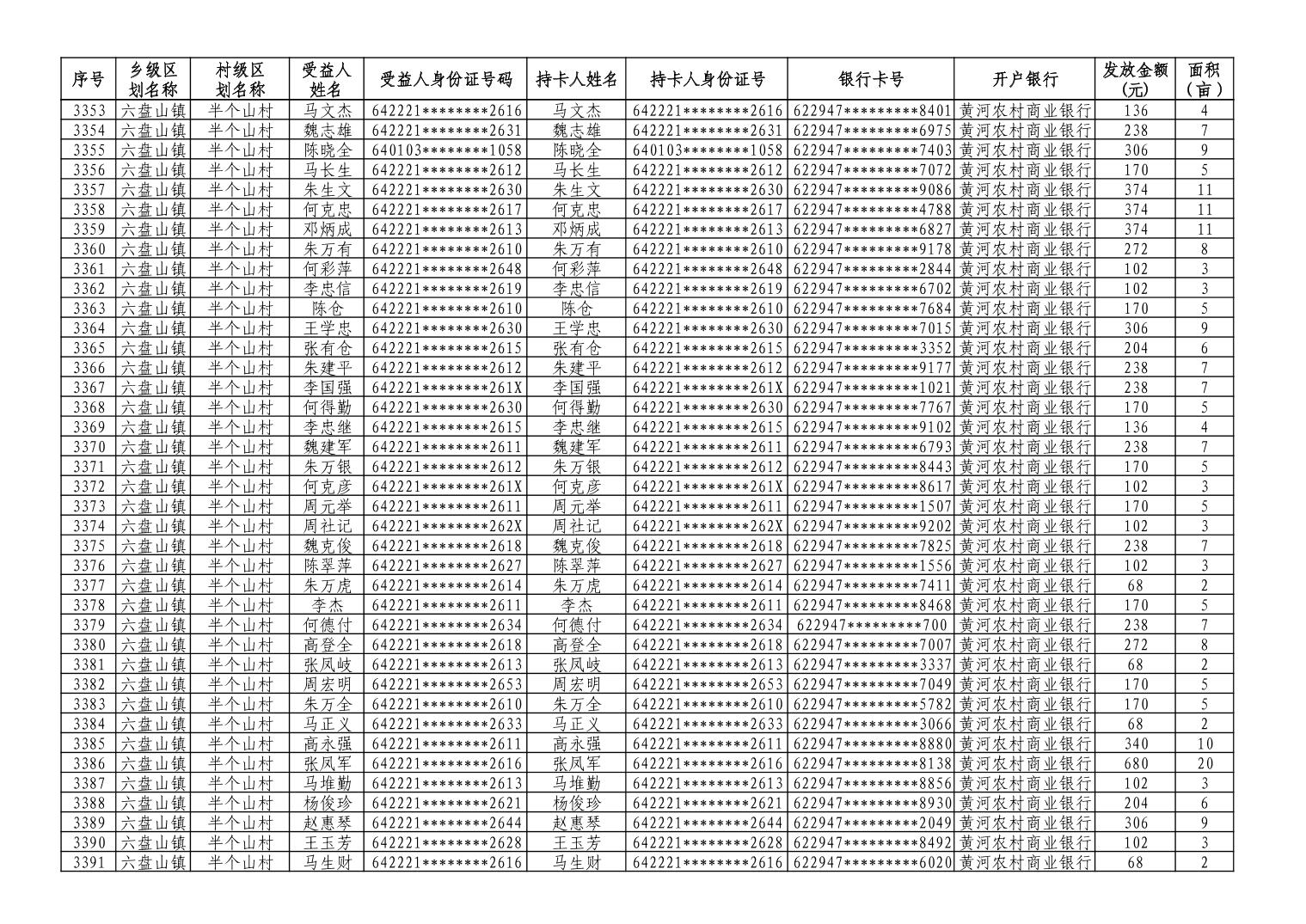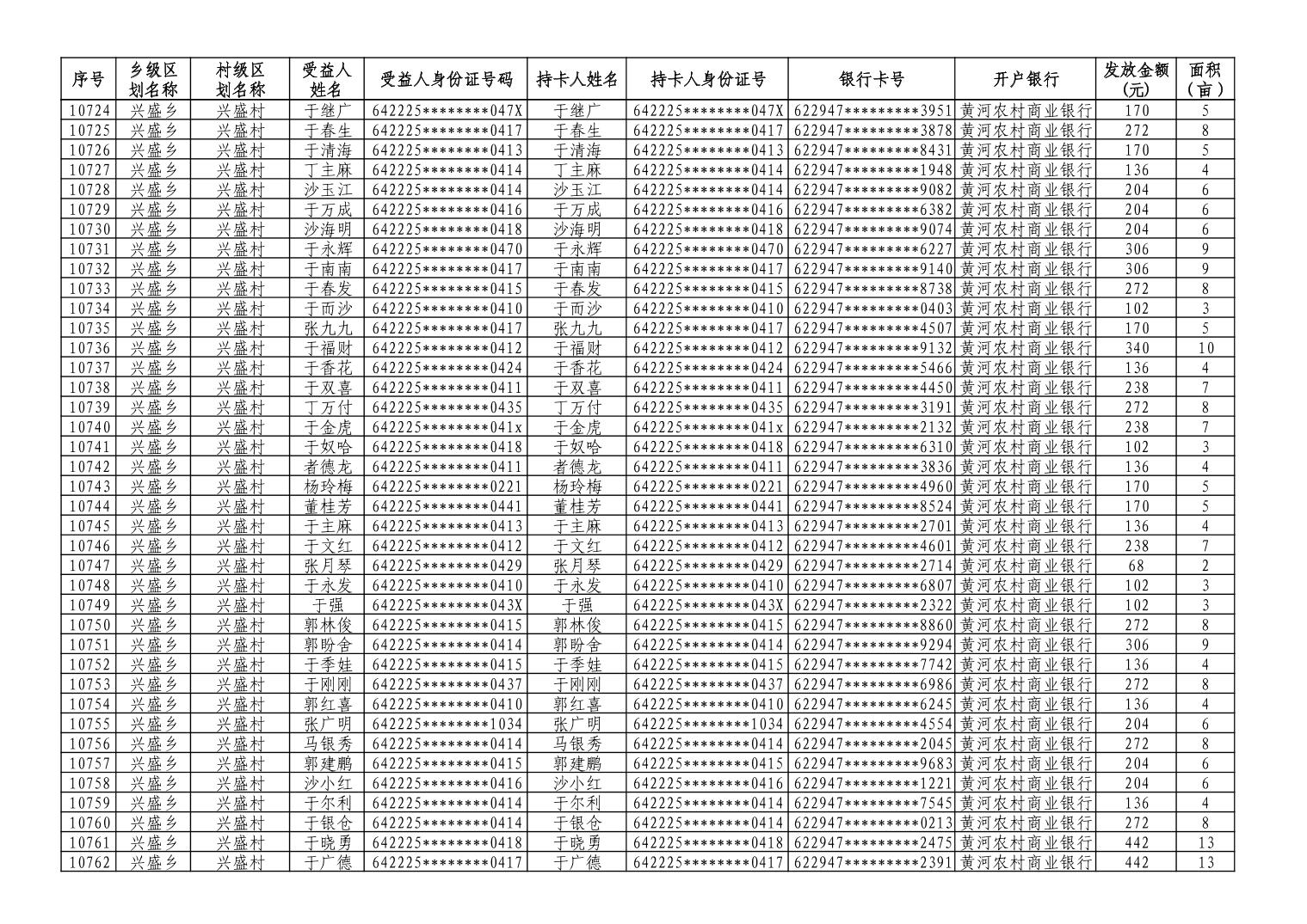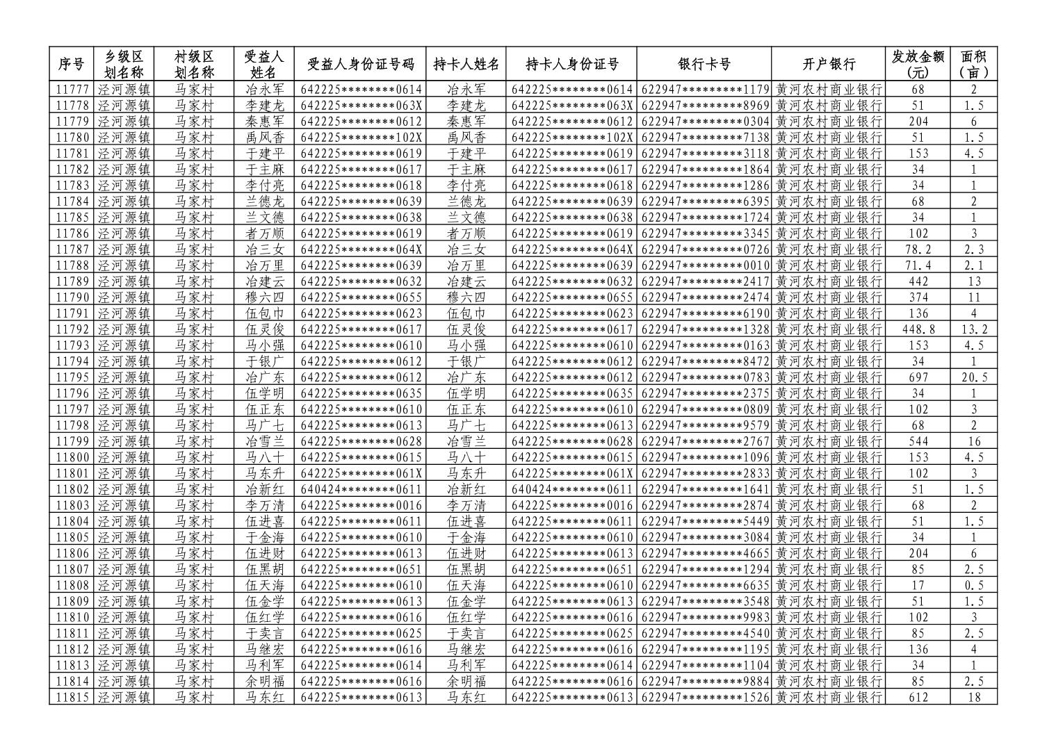附件:2024年泾源县耕地地力保护补贴项目发放花名册